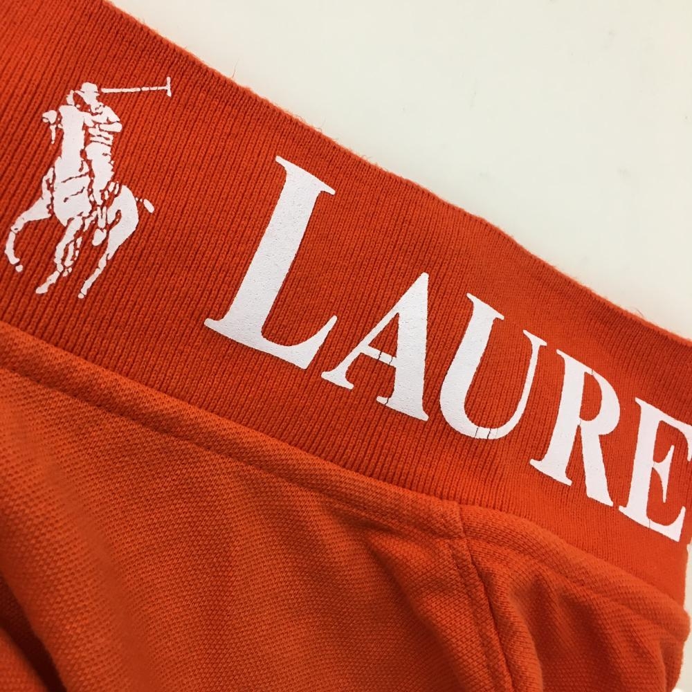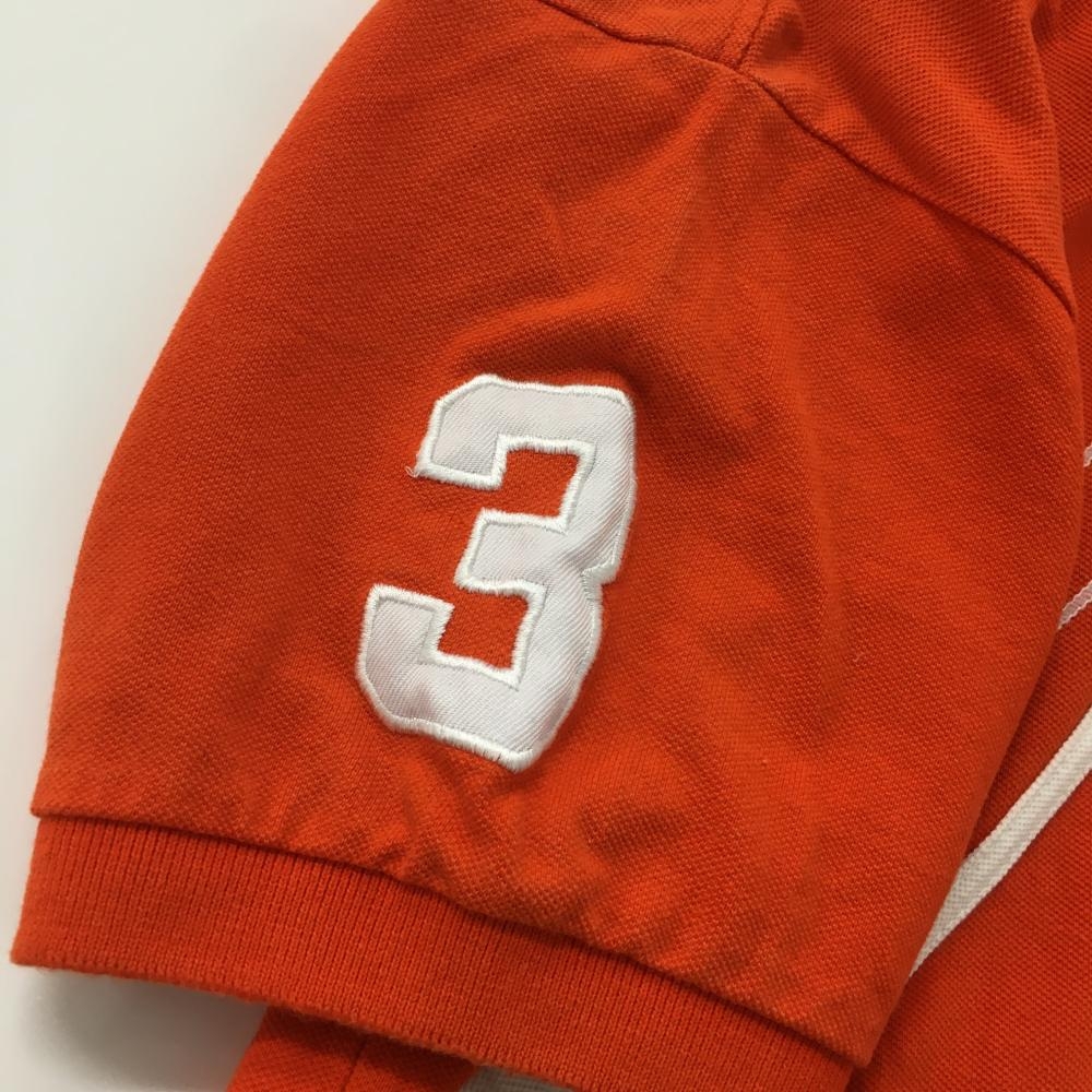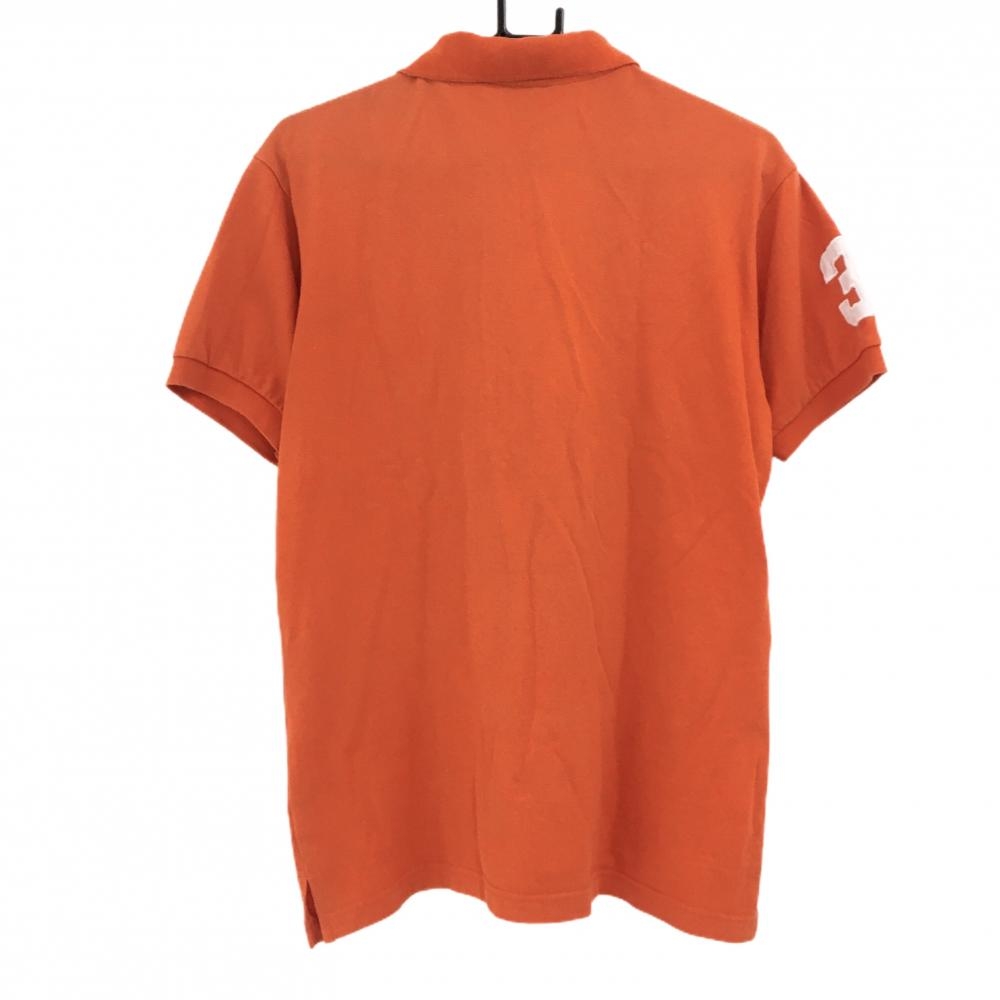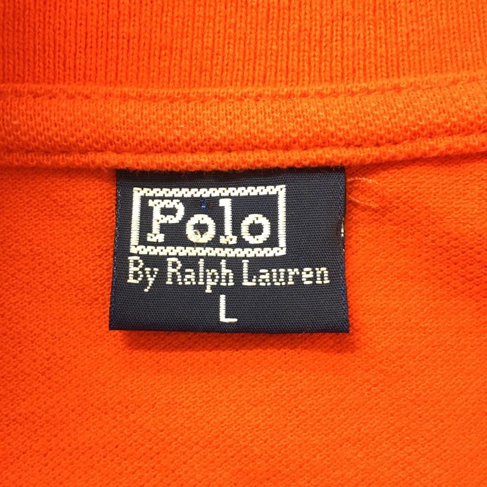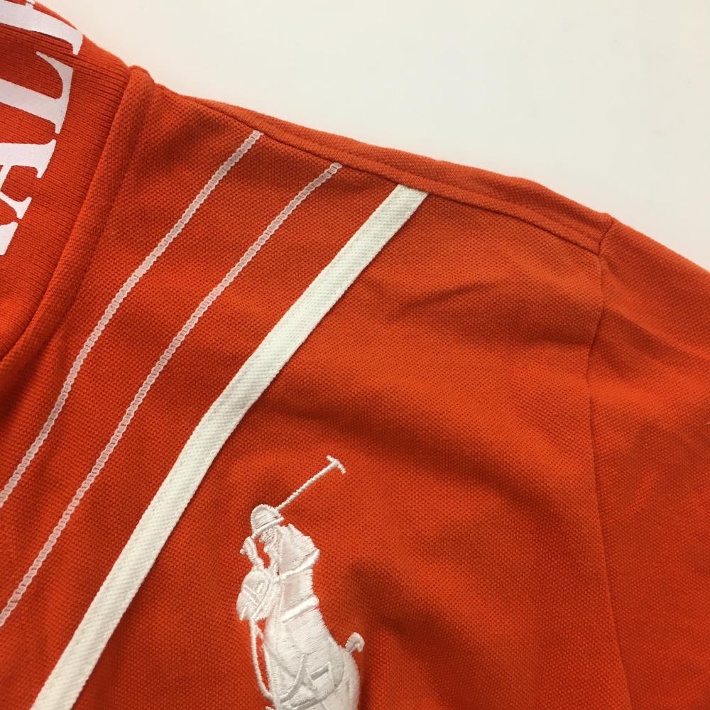 ポロラルフローレン 半袖ポロシャツ オレンジ×白 ビッグポニー 襟裏ロゴ メンズ L ゴルフウェア Ralph Lauren