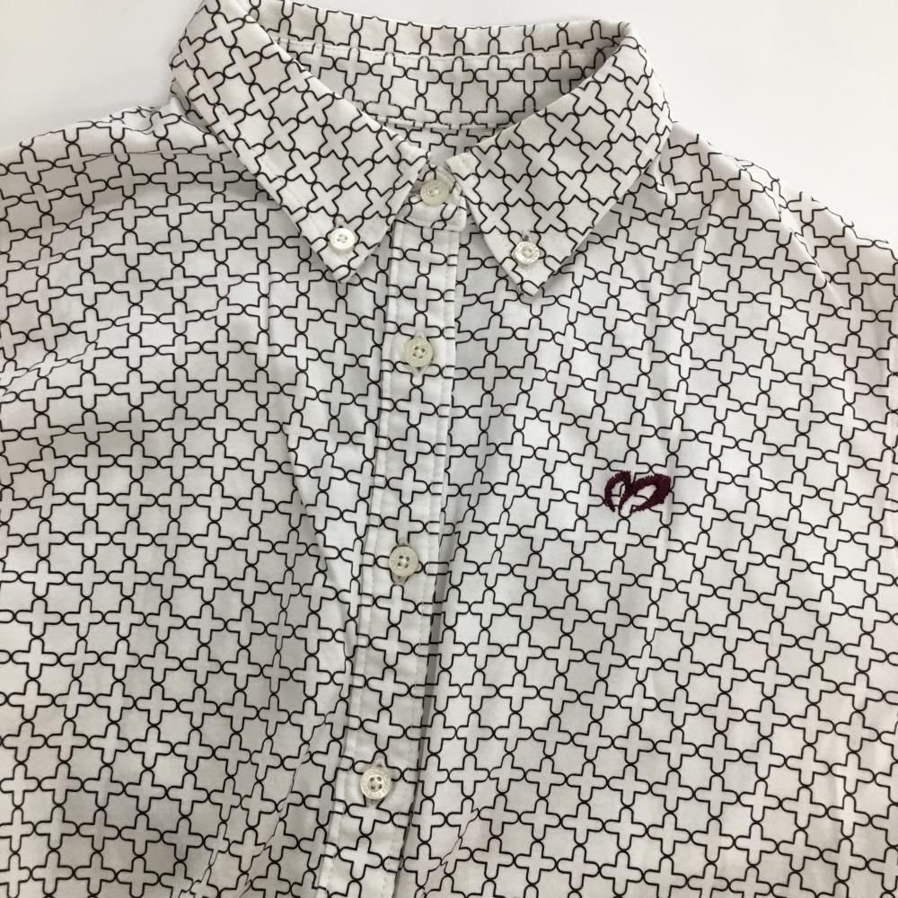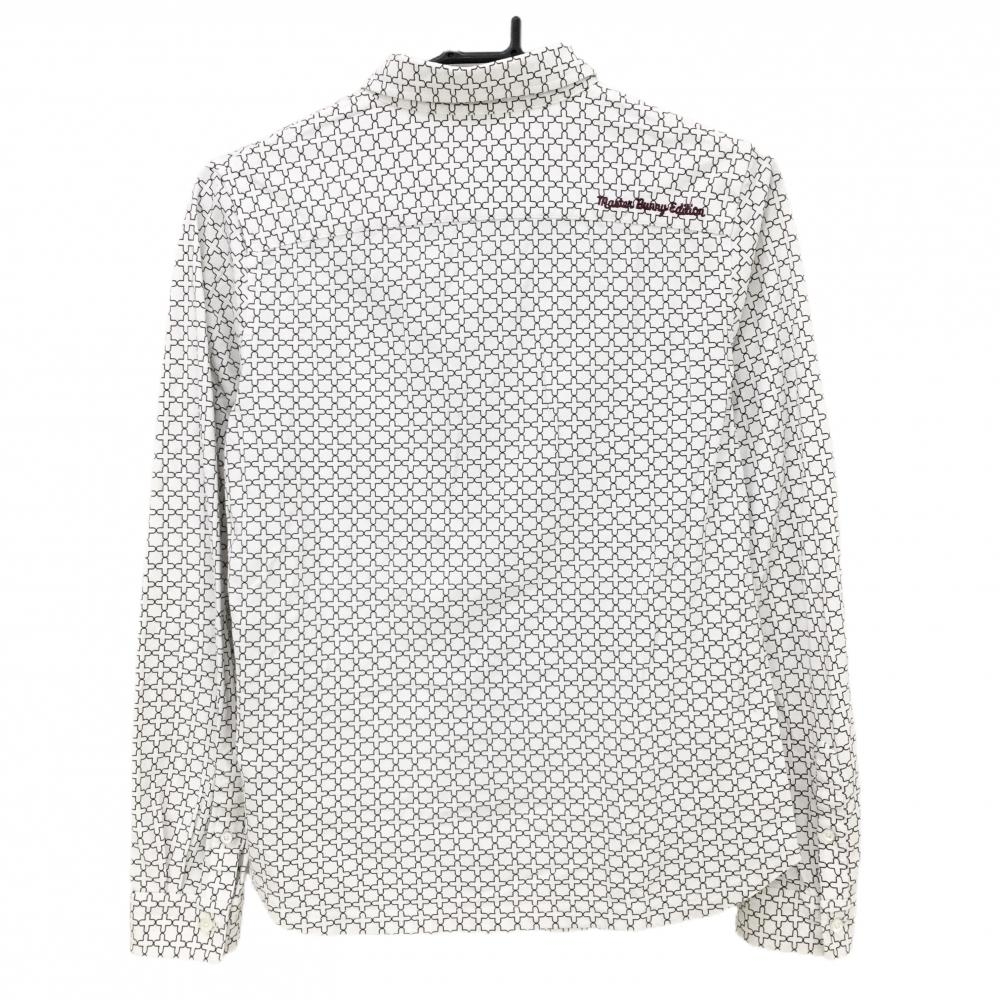 マスターバニー 長袖シャツ 白×ダークブラウン 総柄 ボタンダウン コットン100% レディース 2(L) ゴルフウェア MASTER BUNNY EDITION