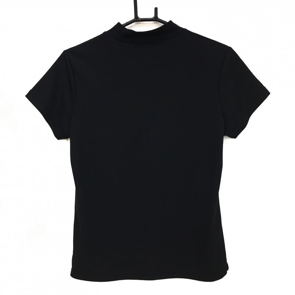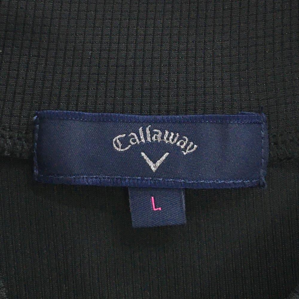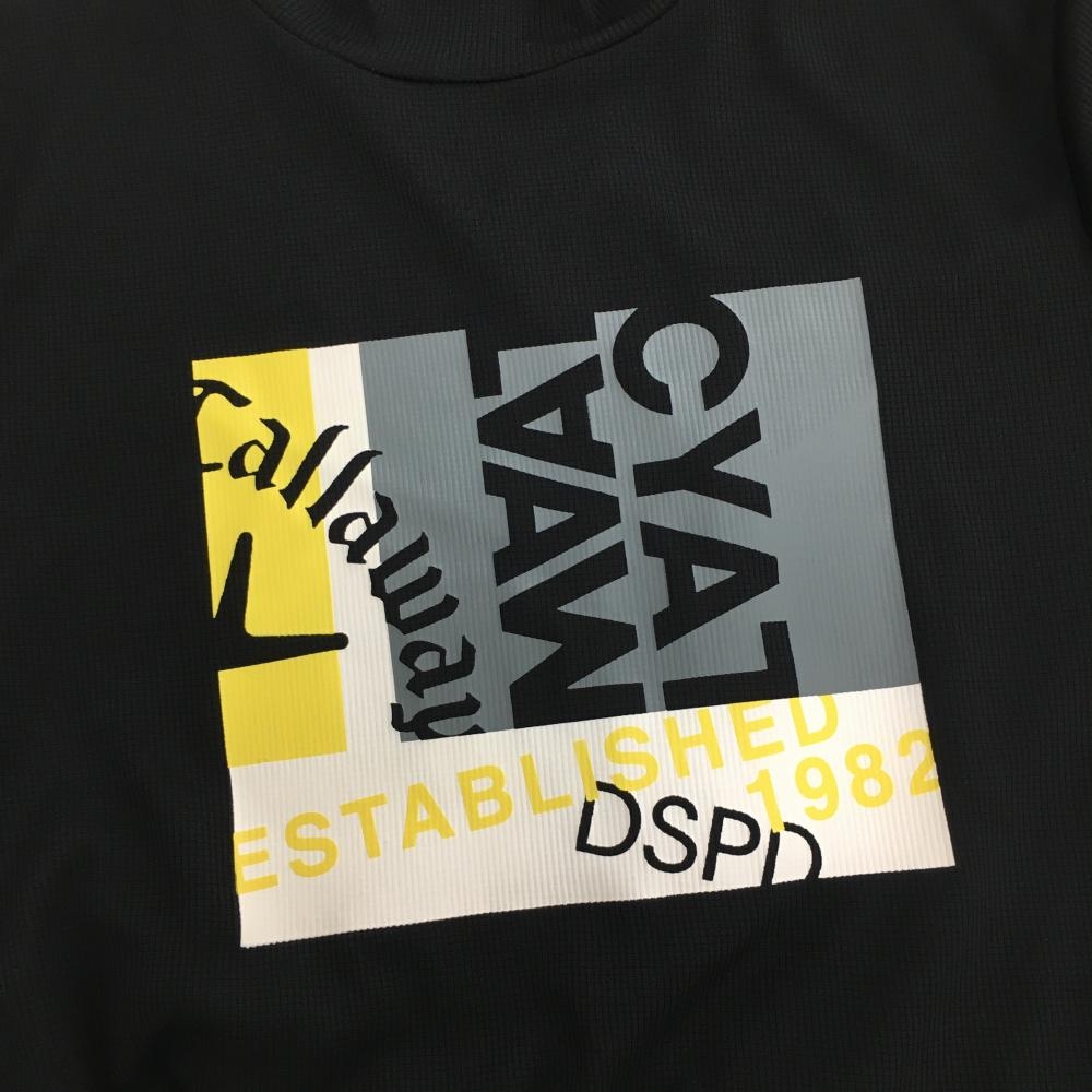 【超美品】キャロウェイ 半袖ハイネックシャツ 黒×イエロー ビッグプリント レディース L ゴルフウェア Callaway