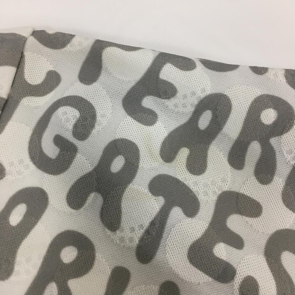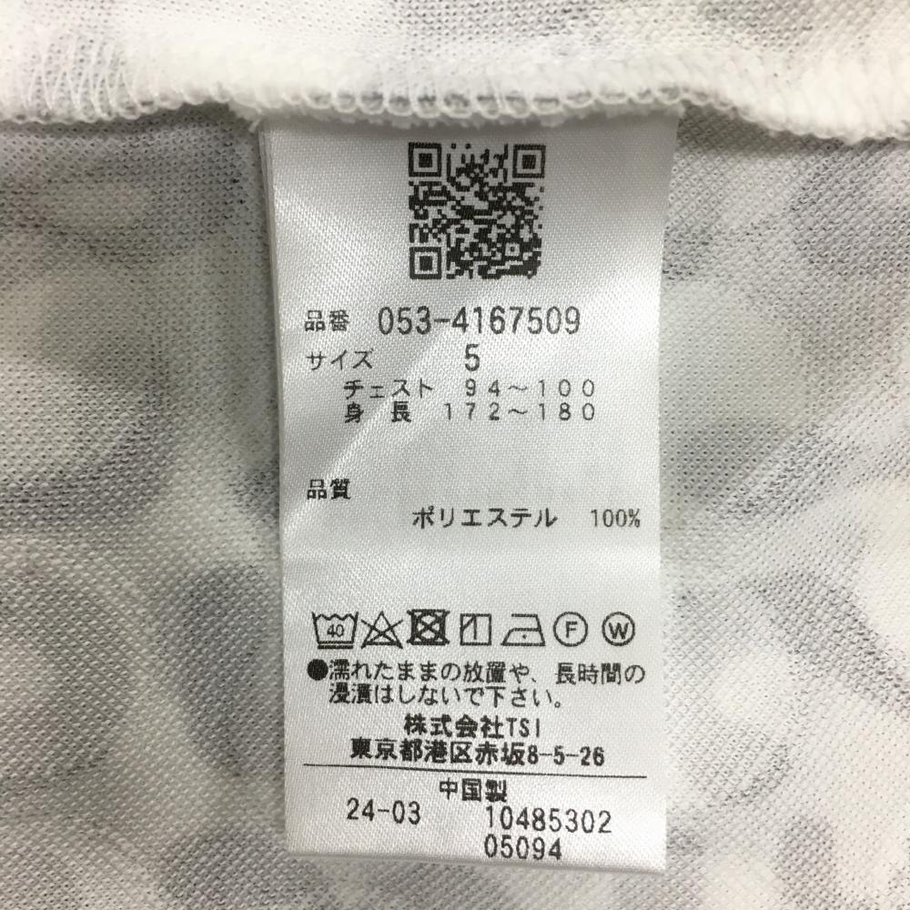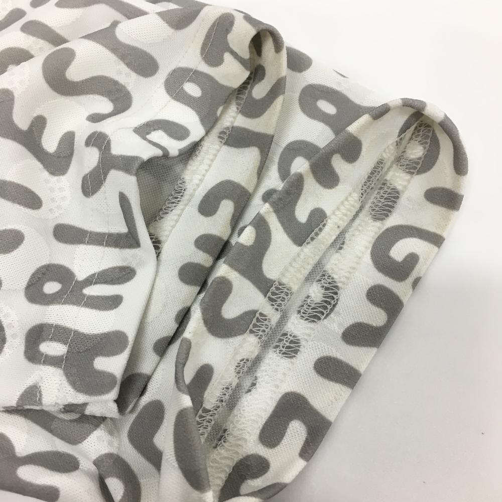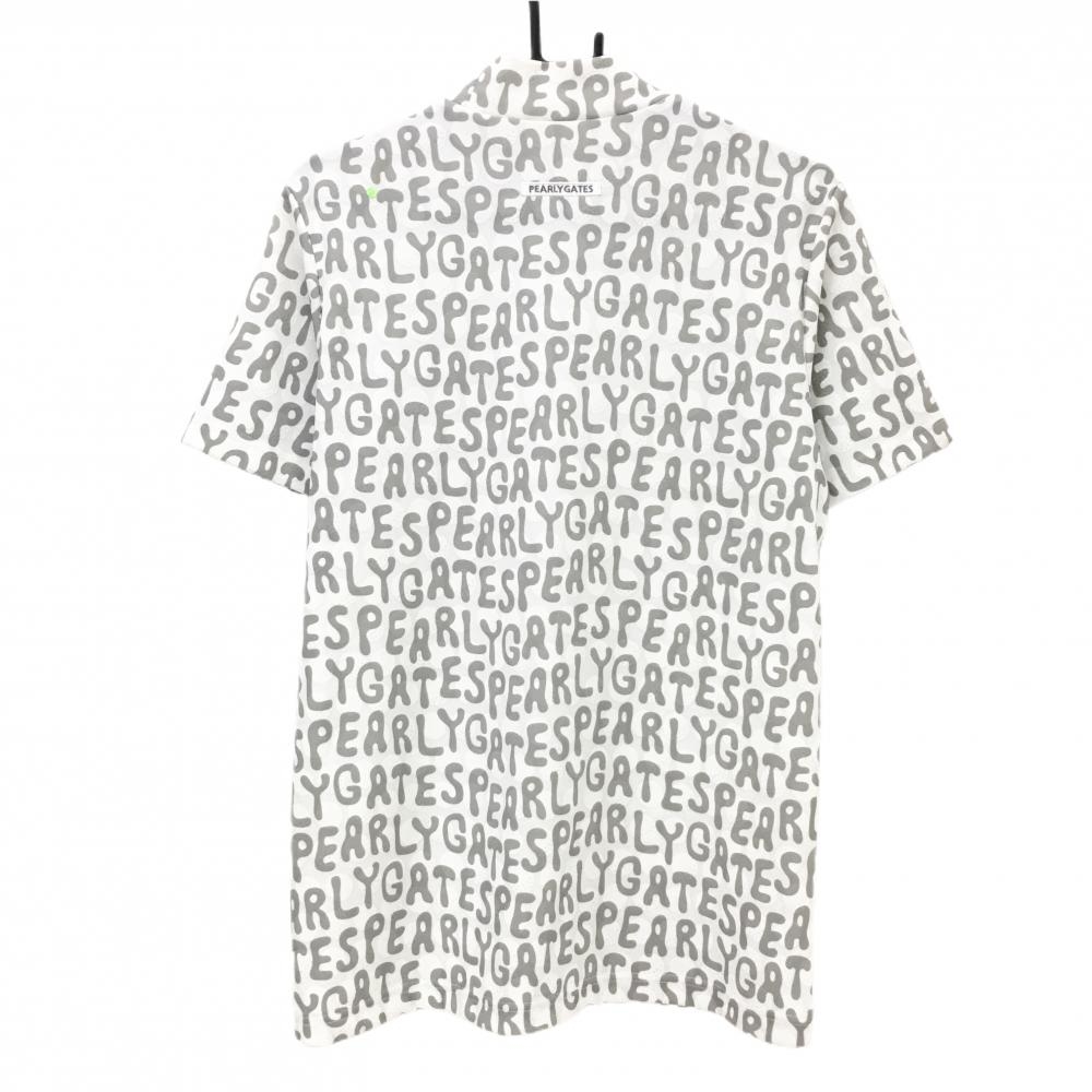 【美品】パーリーゲイツ 半袖ハイネックシャツ 白×グレー ロゴ総柄 ゴルフボール メンズ 5(L) ゴルフウェア 2024年モデル PEARLY GATES