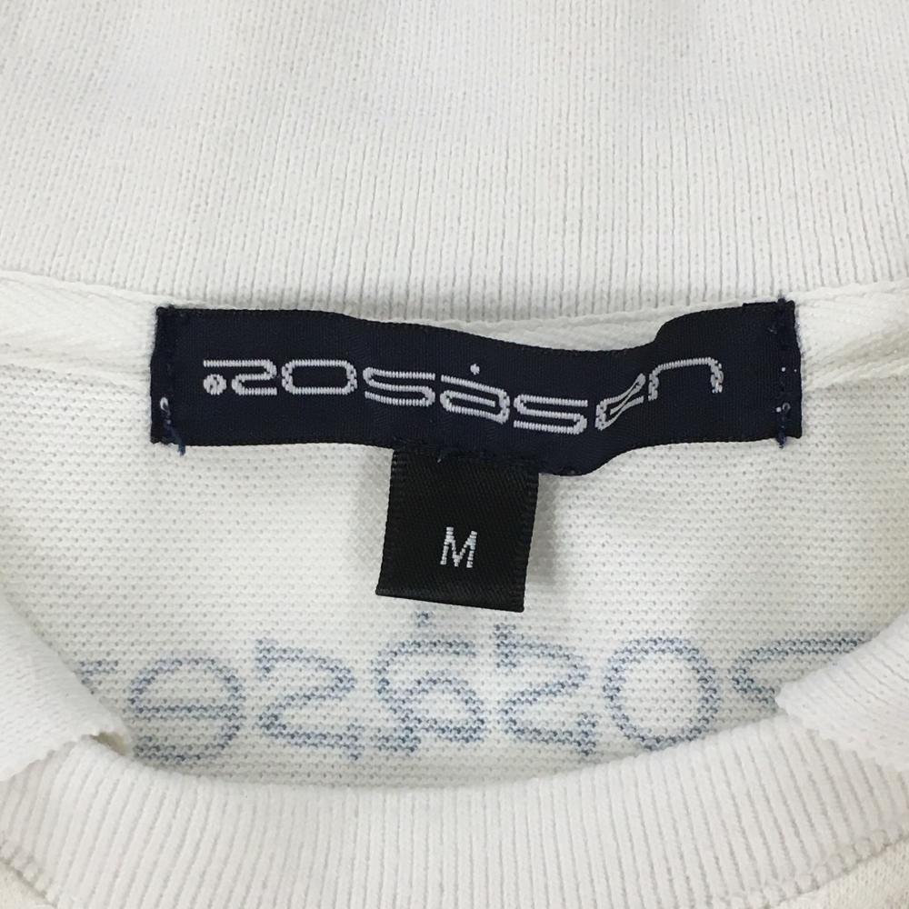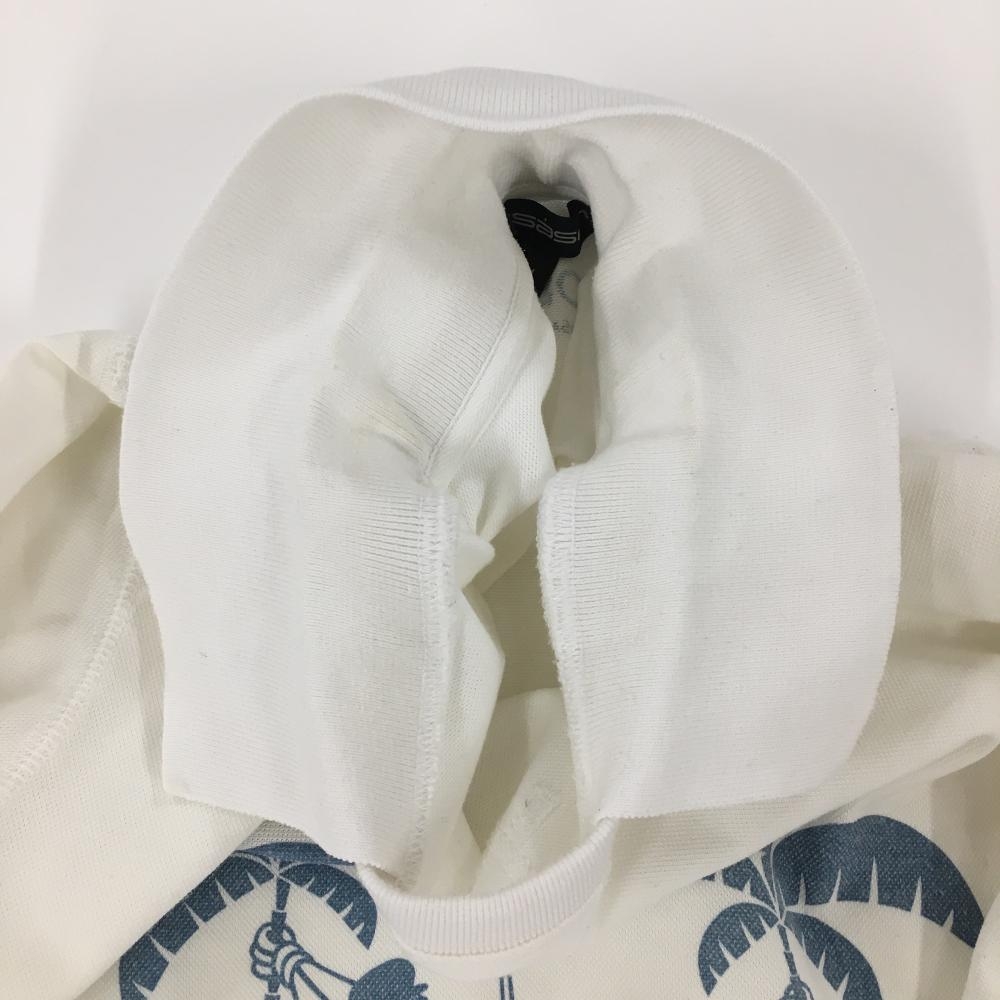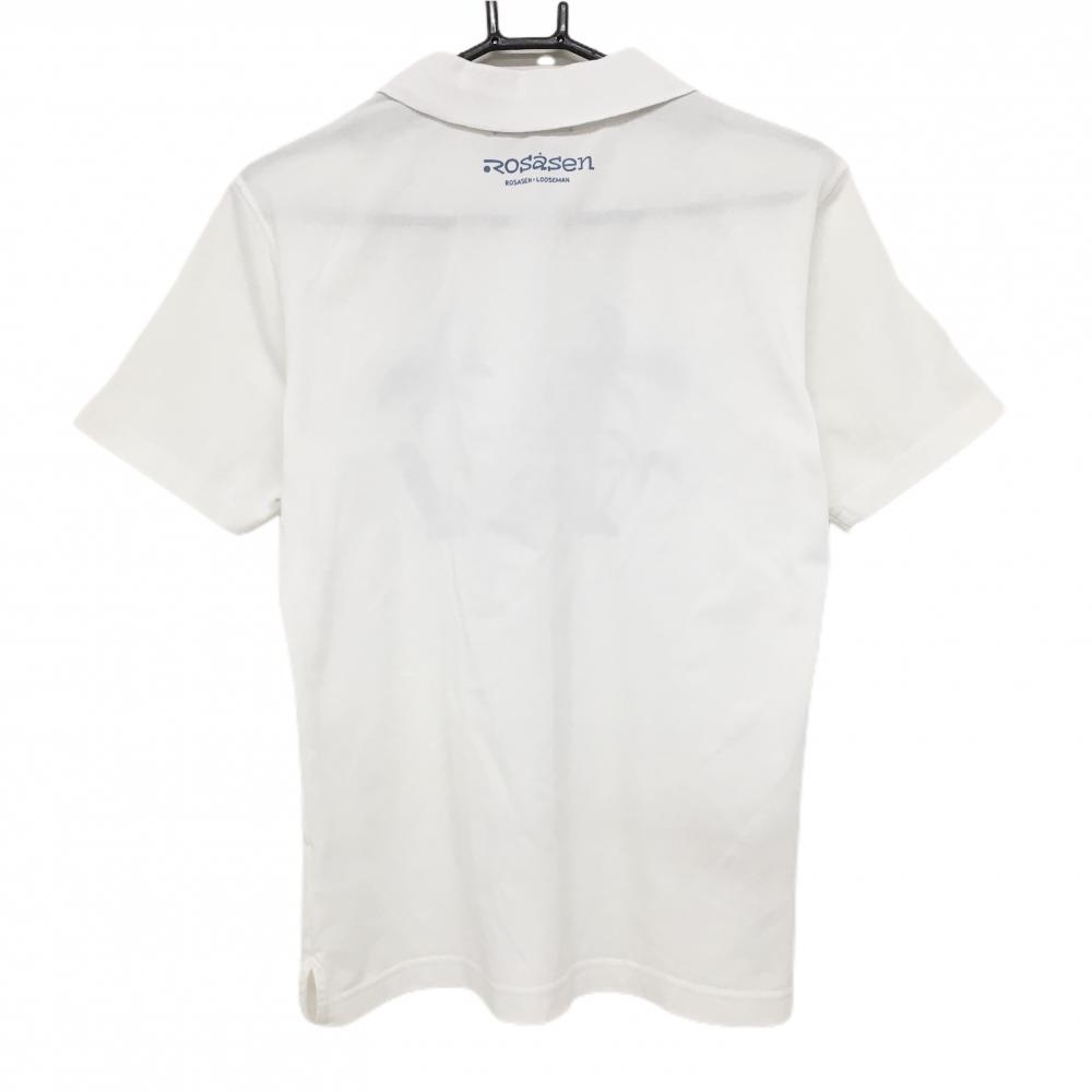 ロサーセン 襟付半袖シャツ 白×ブルー ヤシの木 メンズ M ゴルフウェア Rosasen