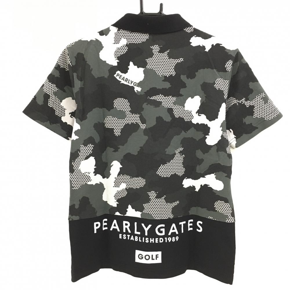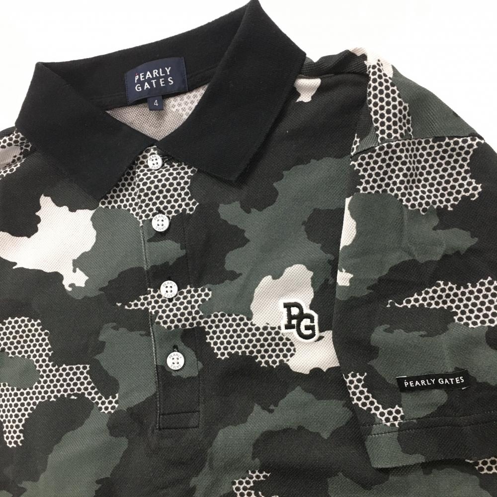 【美品】パーリーゲイツ 半袖ポロシャツ 黒×グレー カモフラ柄 迷彩 メンズ 4(M) ゴルフウェア PEARLY GATES