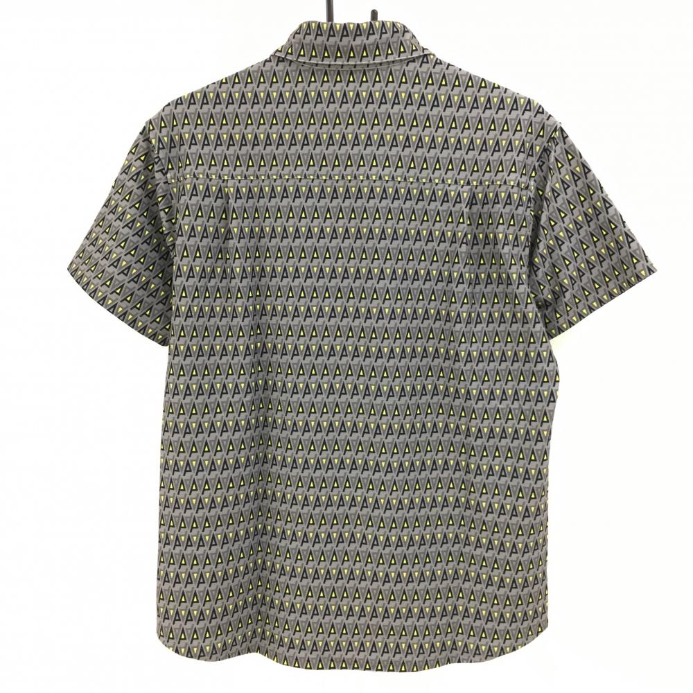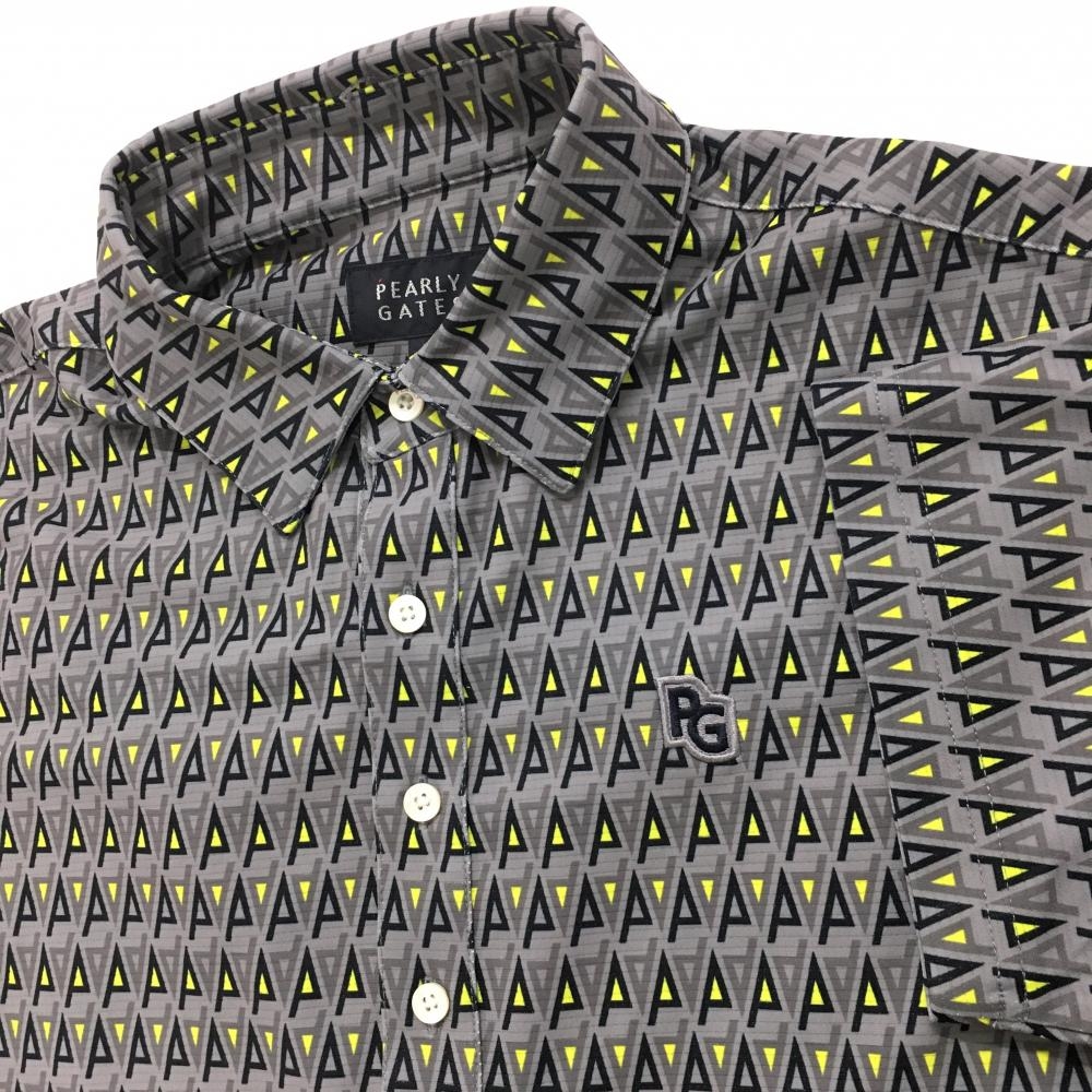 【超美品】パーリーゲイツ 半袖ポロシャツ グレー×ネイビー 総柄 ロゴワッペン メンズ 4(M) ゴルフウェア 2024年モデル PEARLY GATES