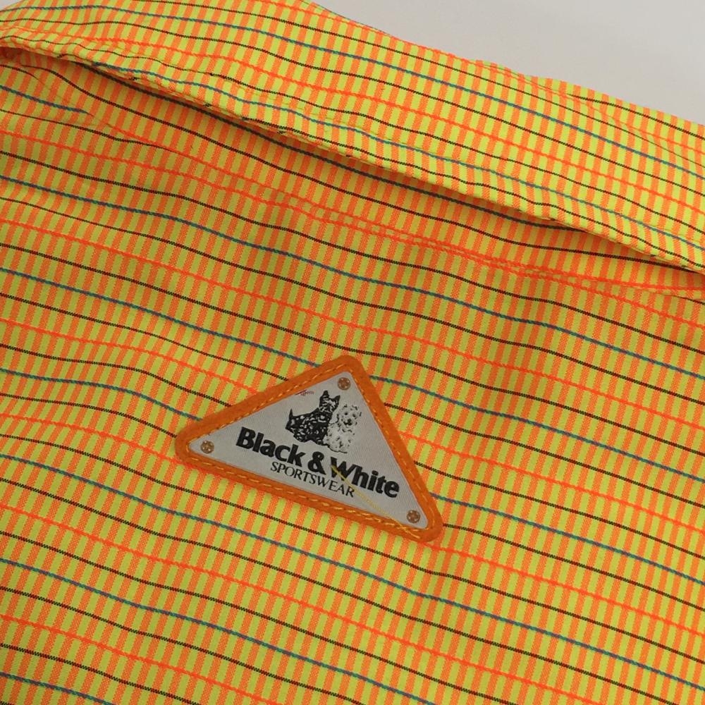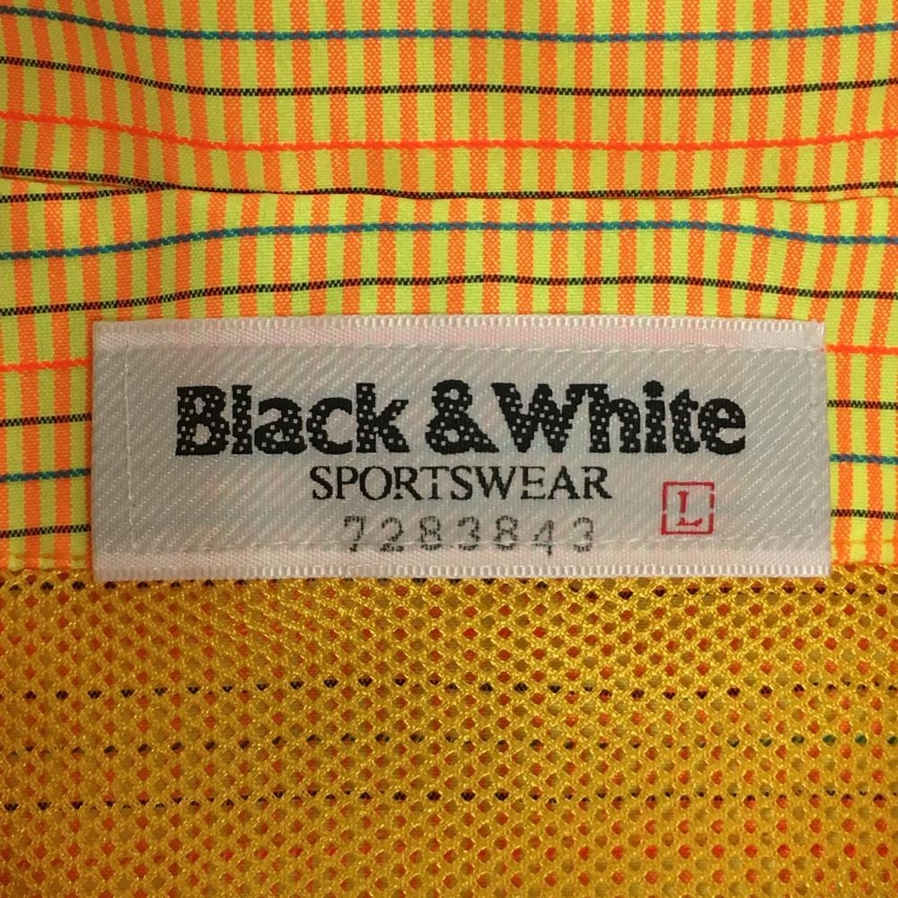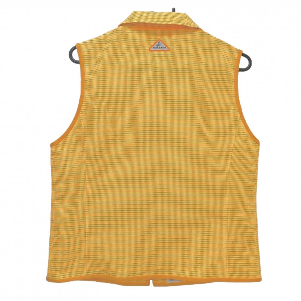 【美品】ブラックアンドホワイト アウターベスト イエロー×オレンジ 格子柄 バックロゴ レディース L ゴルフウェア Black&White