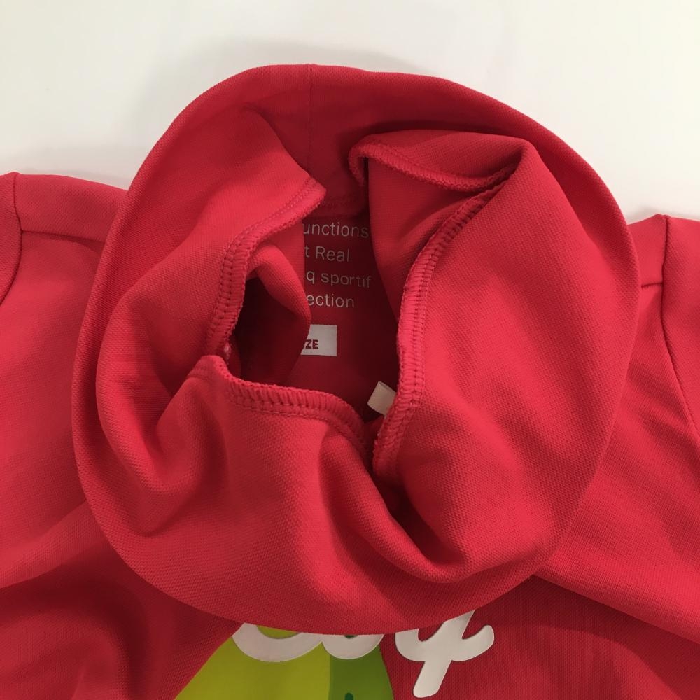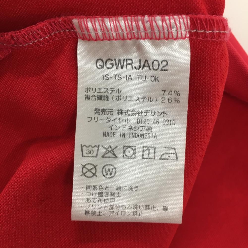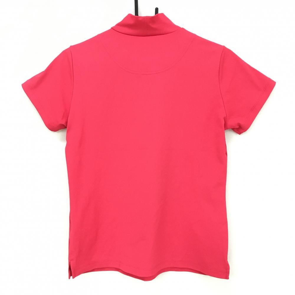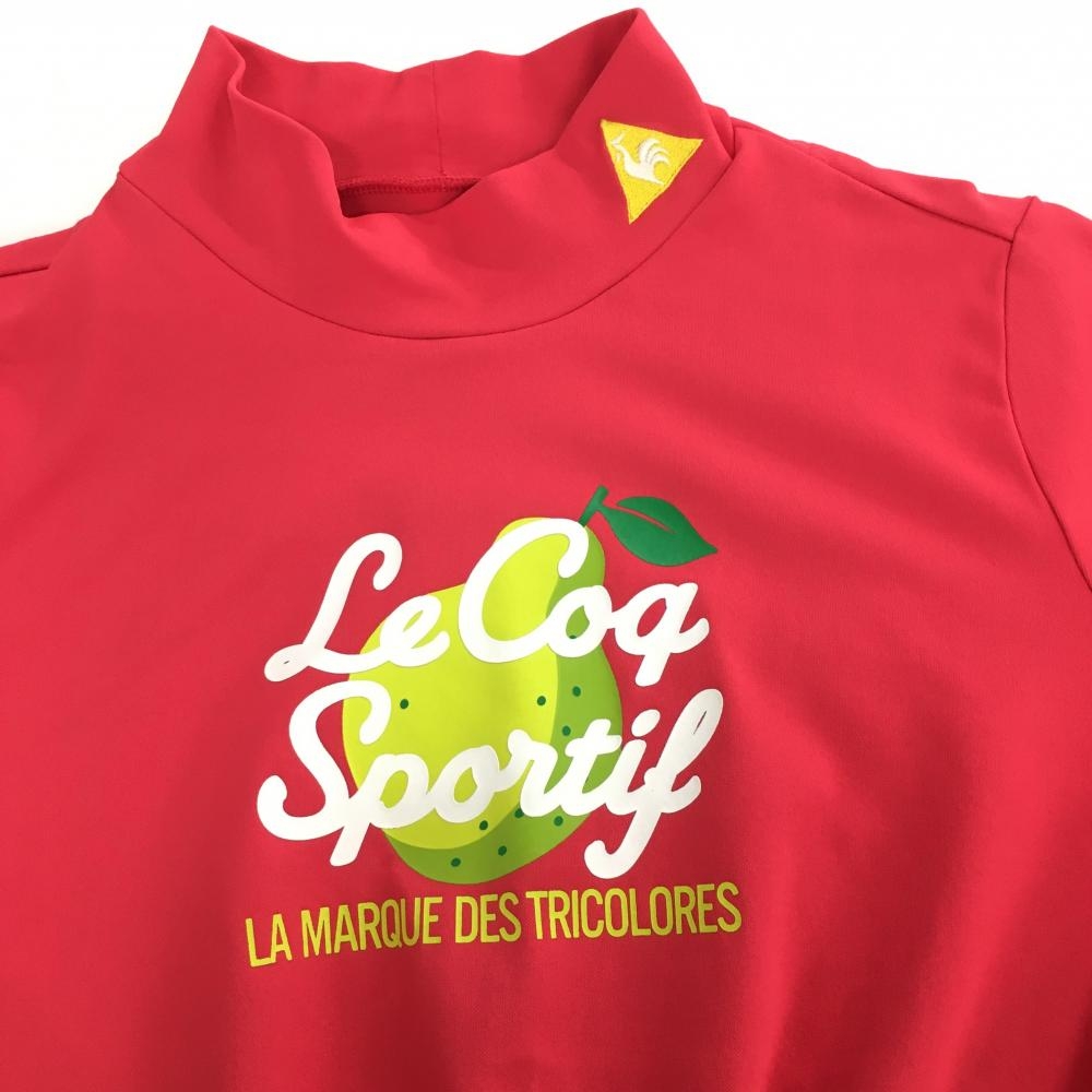 【美品】ルコックゴルフ 半袖ハイネックシャツ レッド×ライトグリーン 洋ナシプリント レディース L ゴルフウェア le coq sportif