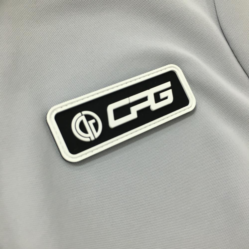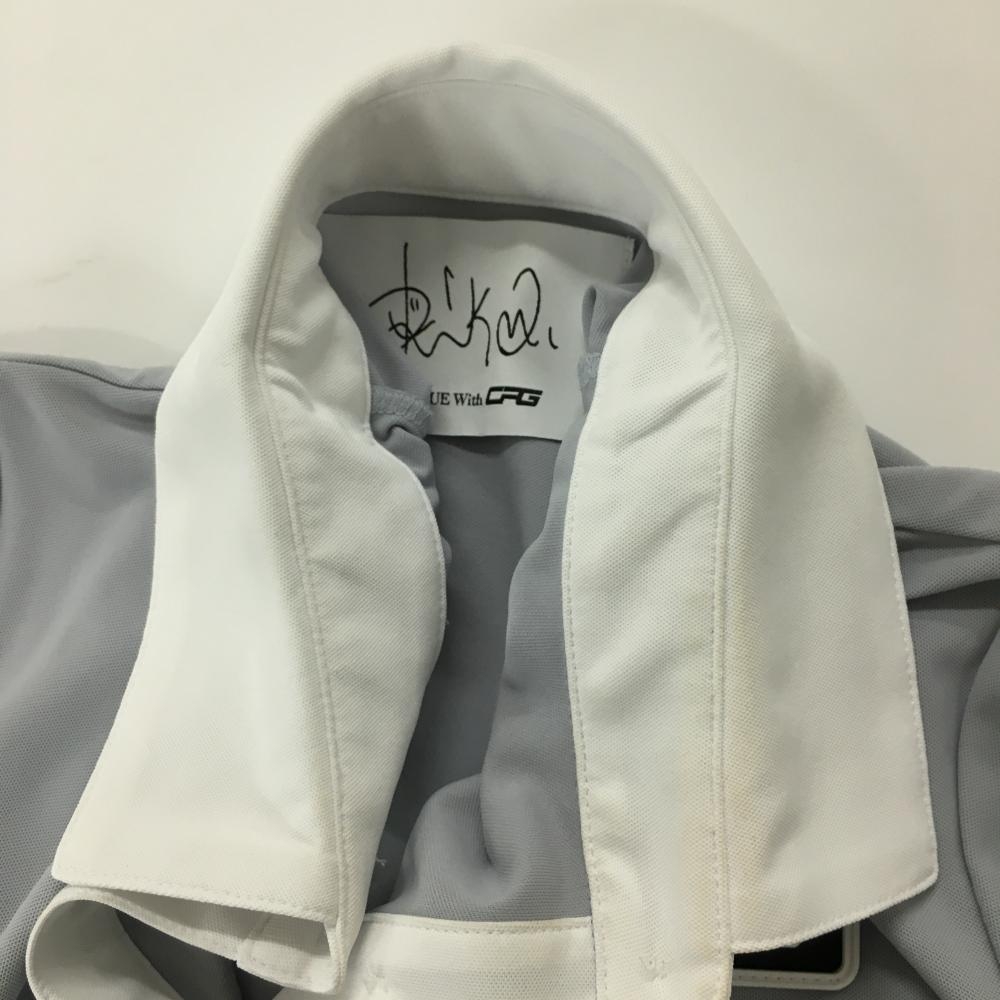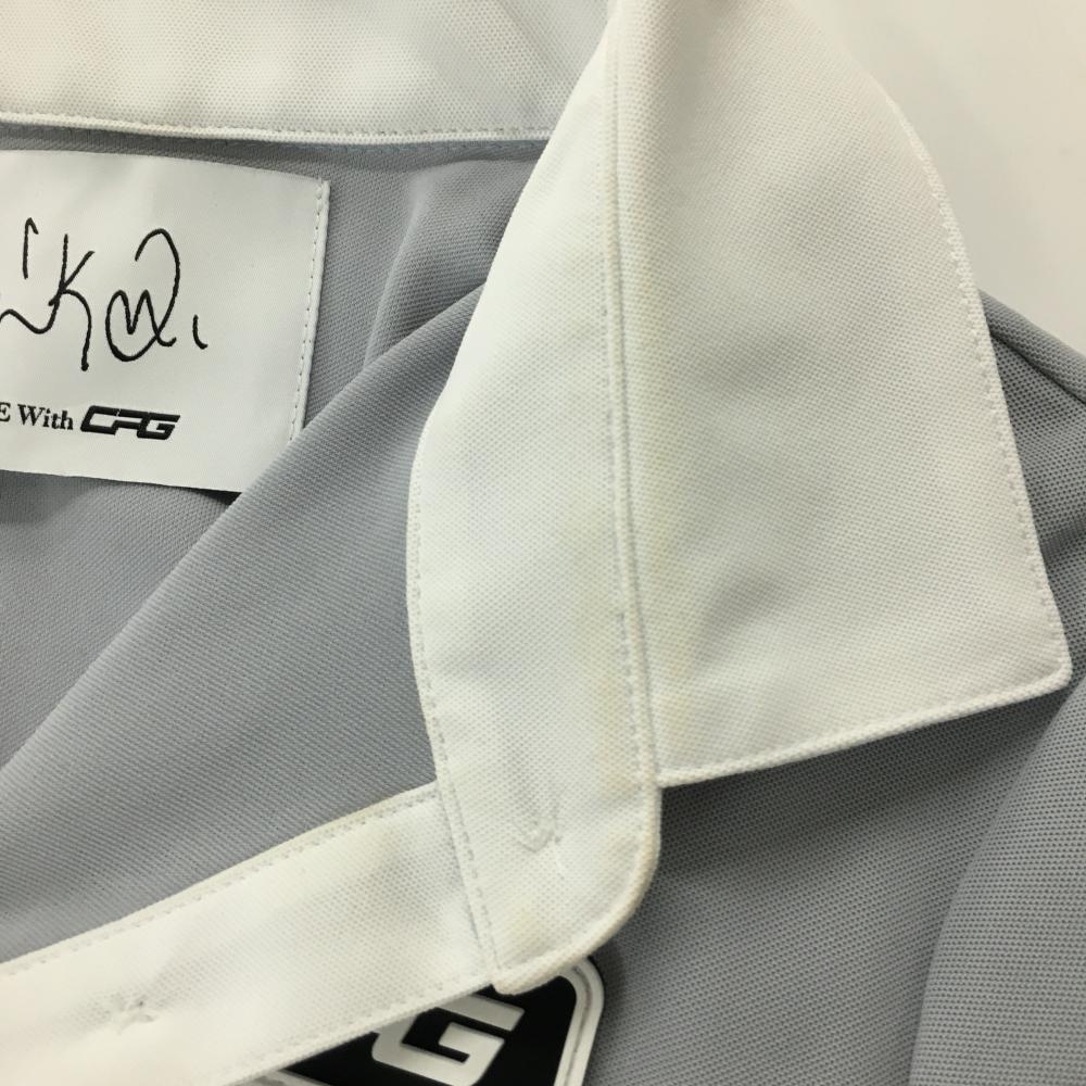 【美品】CPG 半袖ポロシャツ グレー×白 井上莉花コラボ商品 シリコンワッペン レディース 2(M) ゴルフウェア 2023年モデル CPG
