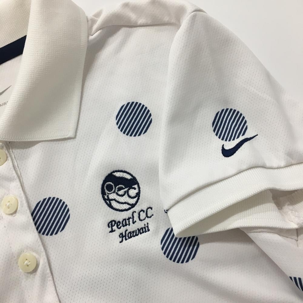 【美品】ナイキゴルフ 半袖ポロシャツ 白×ネイビー ドット パールカントリーゴルフ レディース XS ゴルフウェア NIKE