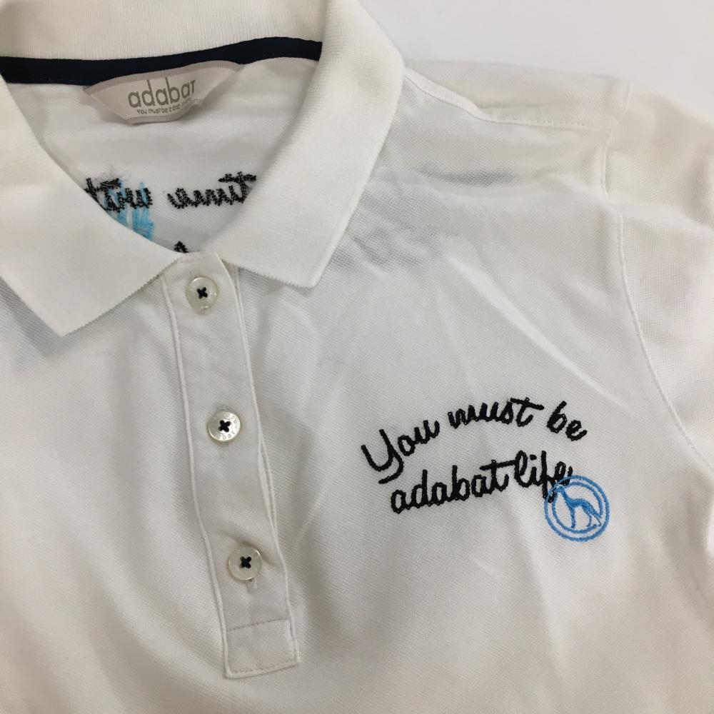 【超美品】アダバット 半袖ポロシャツ 白 ロゴ刺しゅう レディース 38(M) ゴルフウェア adabat