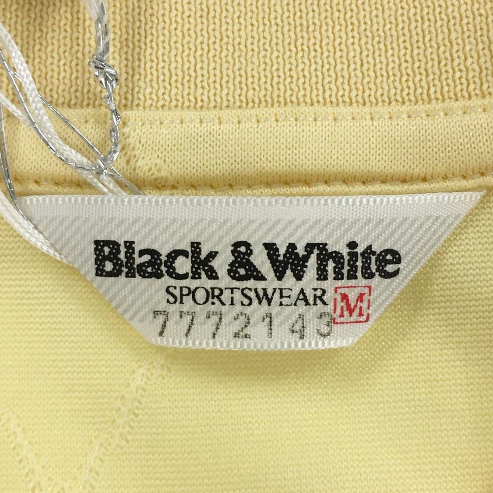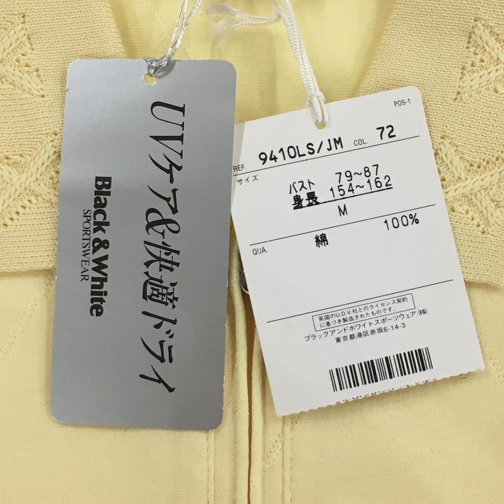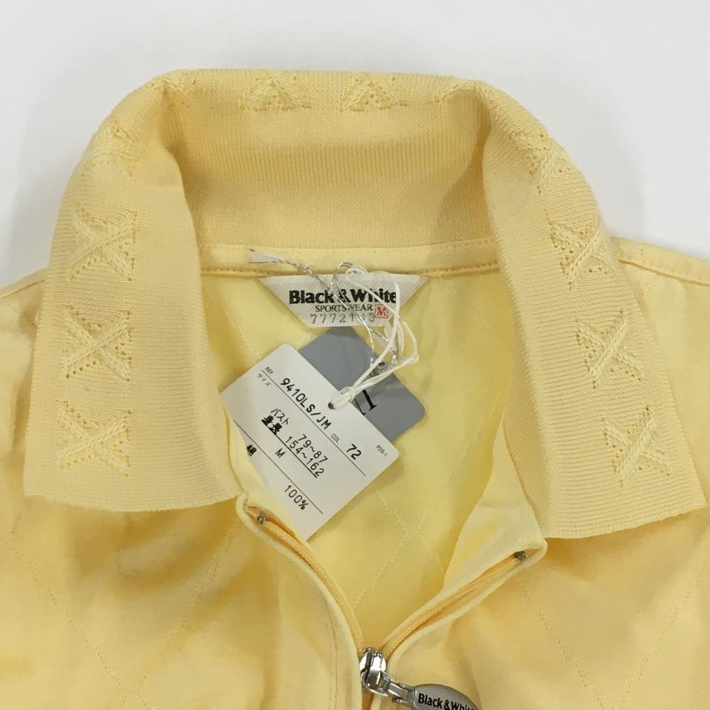 【新品】ブラックアンドホワイト 長袖ポロシャツ イエロー ダイヤ柄織生地 ハーフジップ レディース M ゴルフウェア Black&White