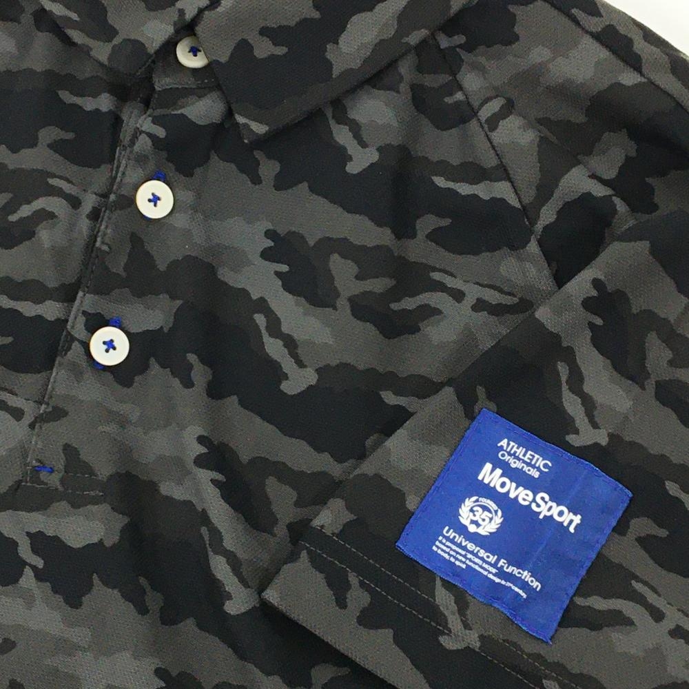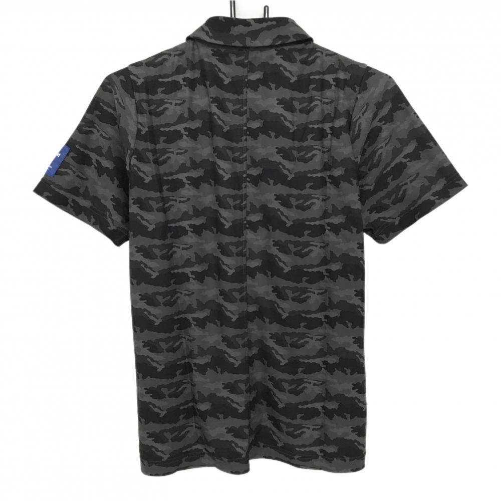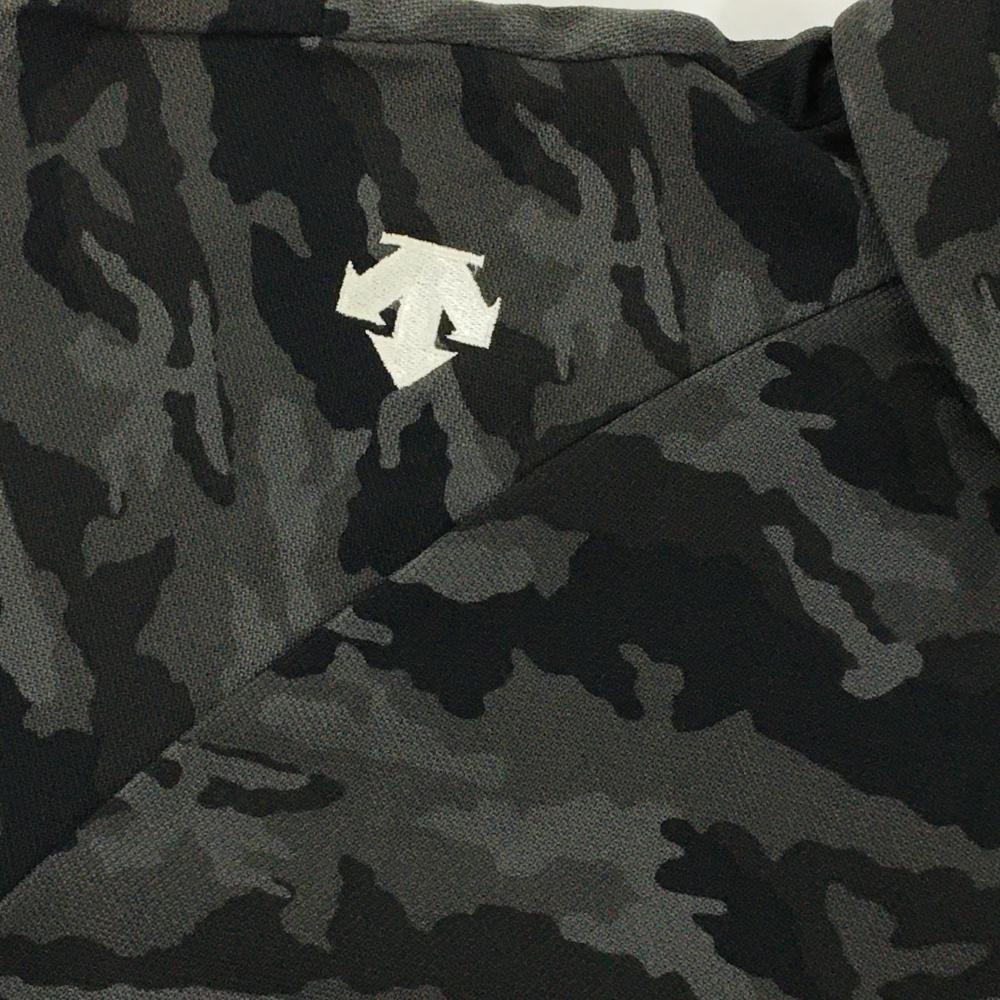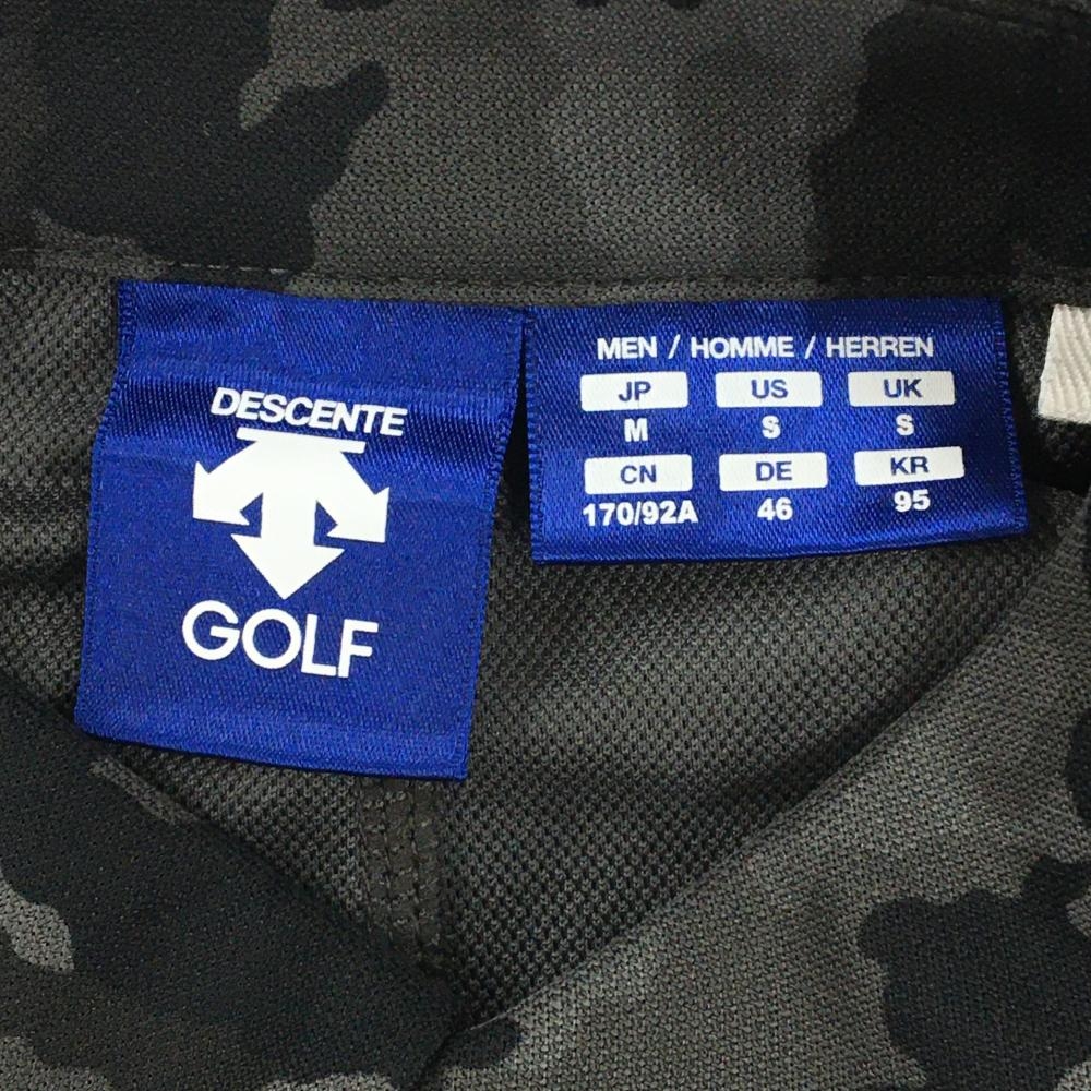 【超美品】デサントゴルフ 半袖ポロシャツ グレー×黒 カモフラ柄 迷彩 ロゴ刺しゅう メンズ M ゴルフウェア DESCENTE