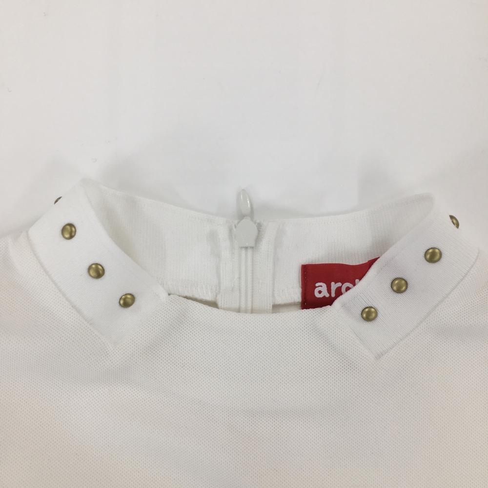 【美品】アルチビオ 半袖ハイネックシャツ 白 後ろハーフジップ ゴールドロゴ レディース 36(S) ゴルフウェア 2023年モデル archivio