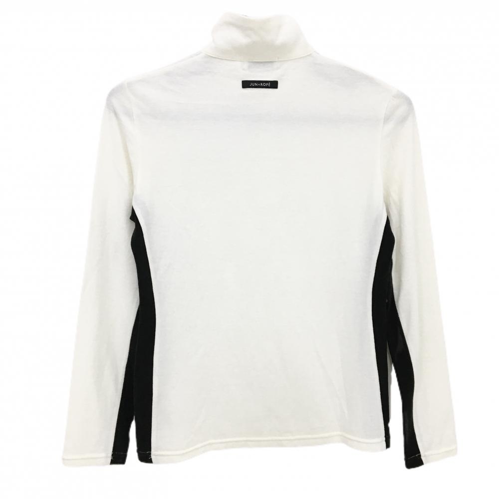 【美品】ジュンアンドロペ 長袖ハイネックシャツ 白×黒 表微起毛 ハーフジップ アクリル混 レディース S ゴルフウェア JUN&ROPE