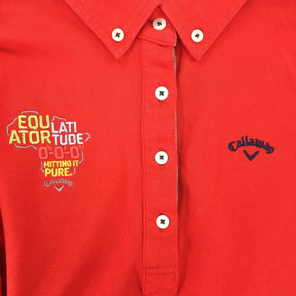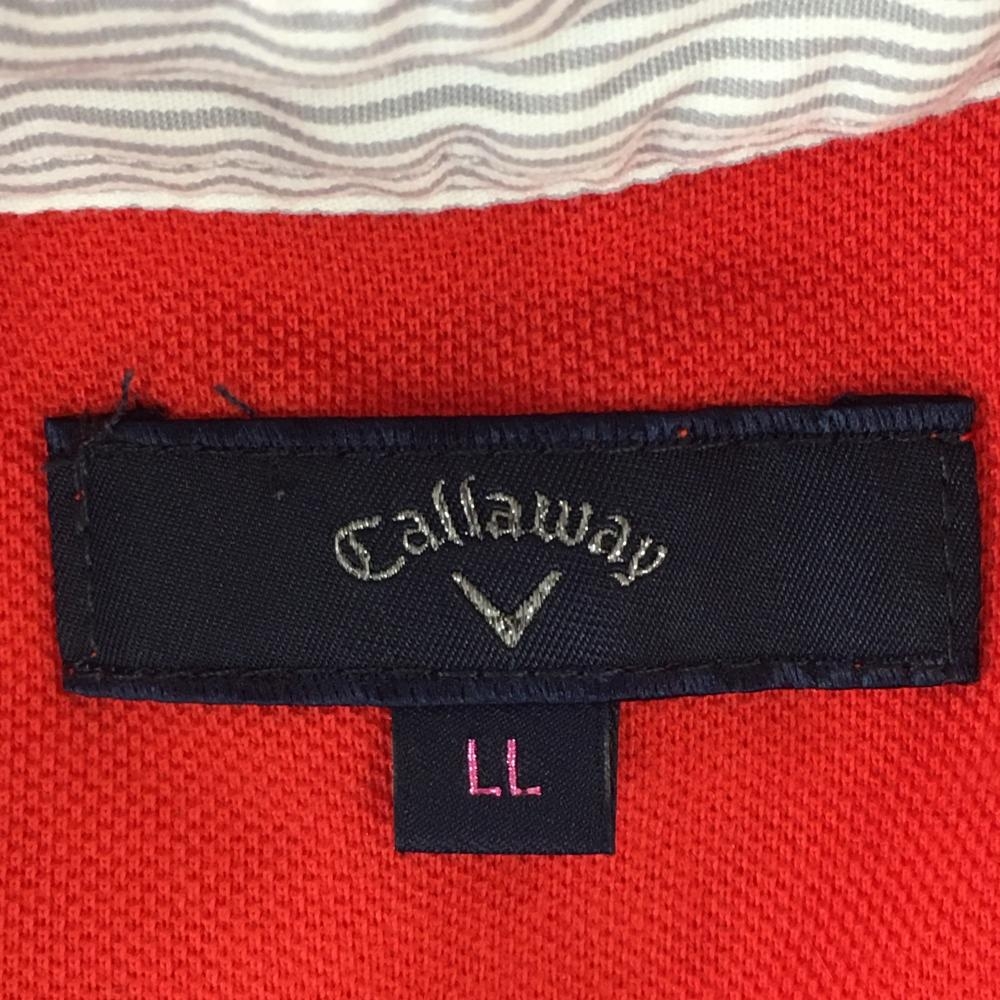 キャロウェイ 長袖ポロシャツ レッド ロゴネイビー 襟内側ボーダー レディース LL ゴルフウェア Callaway
