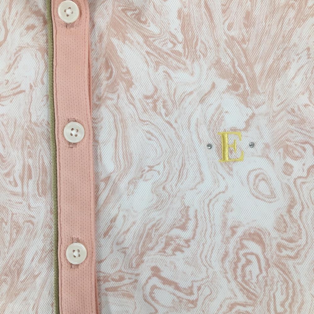 【美品】エピキュール 半袖ポロシャツ 白×ピンク 総柄 肩汚れ レディース ゴルフウェア EPICURE