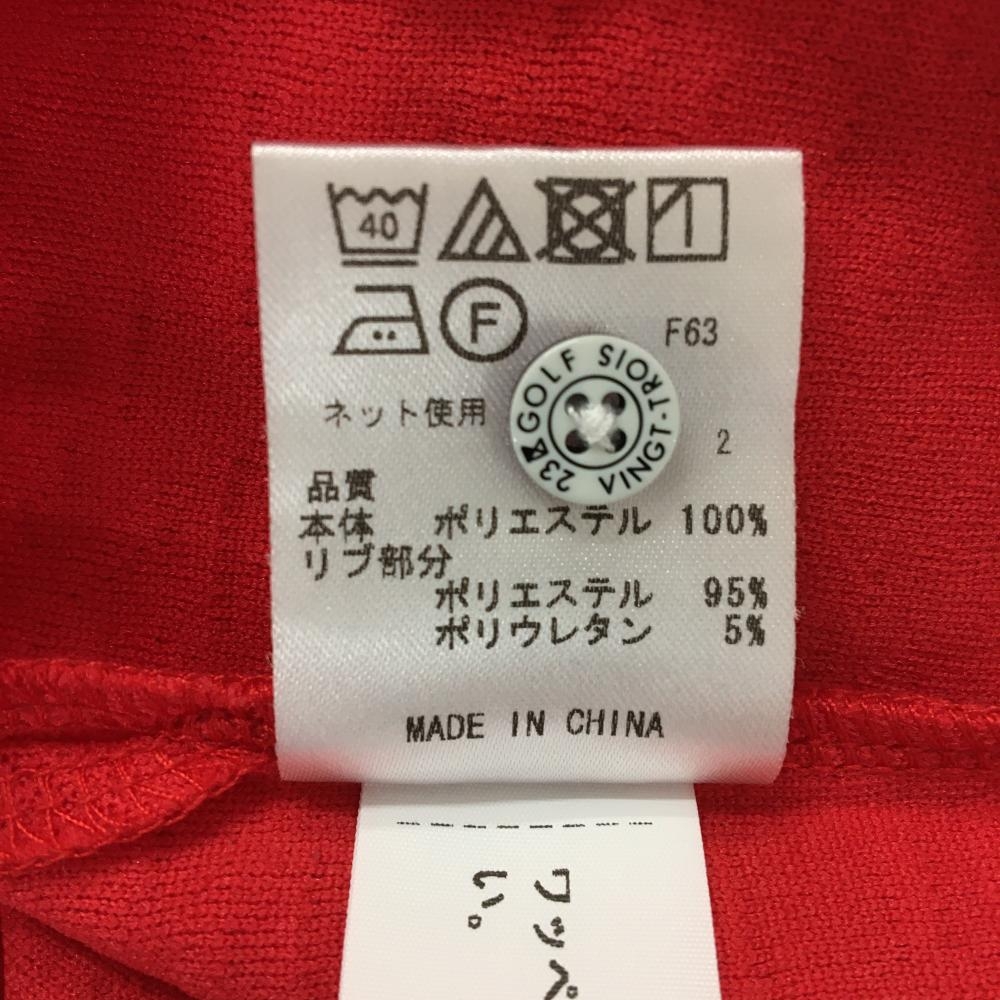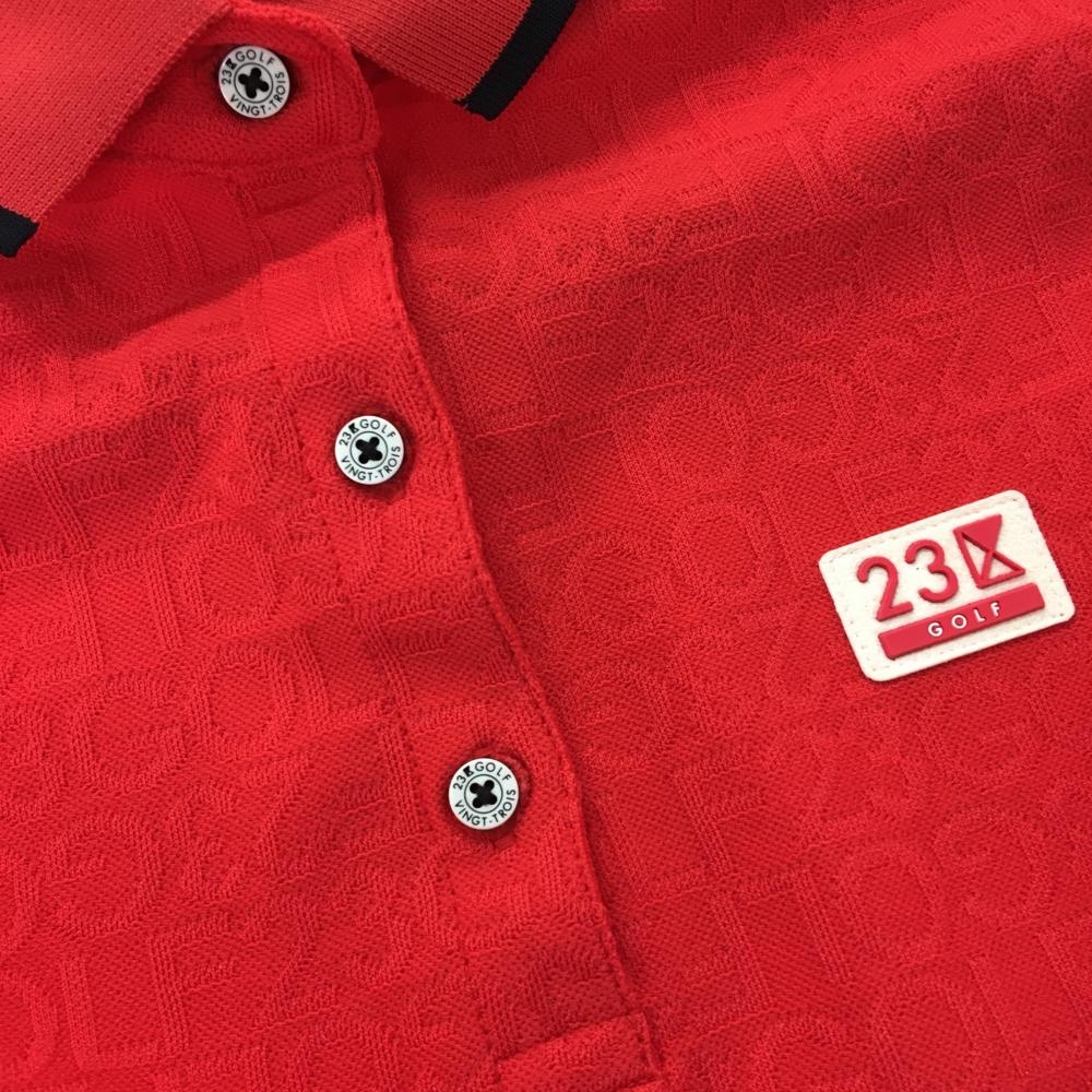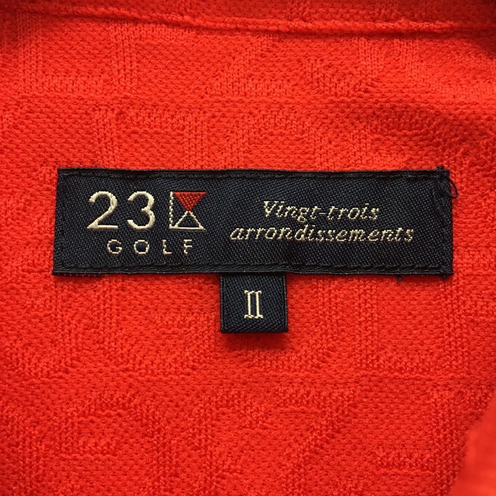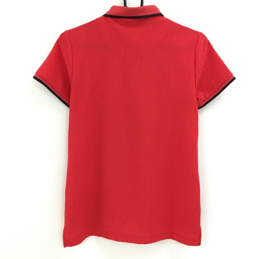 【美品】23区ゴルフ 半袖ポロシャツ レッド ロゴ総柄地模様 胸元ワッペン レディース II(L) ゴルフウェア 23区