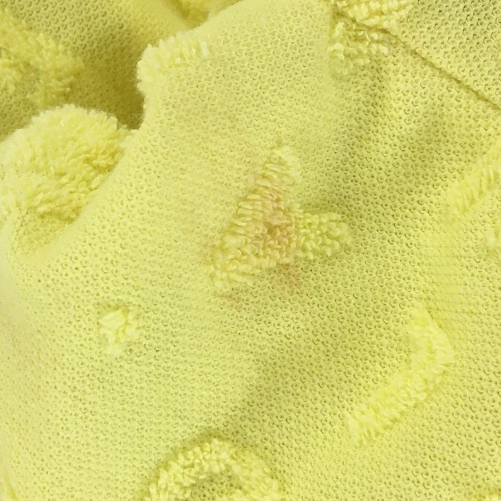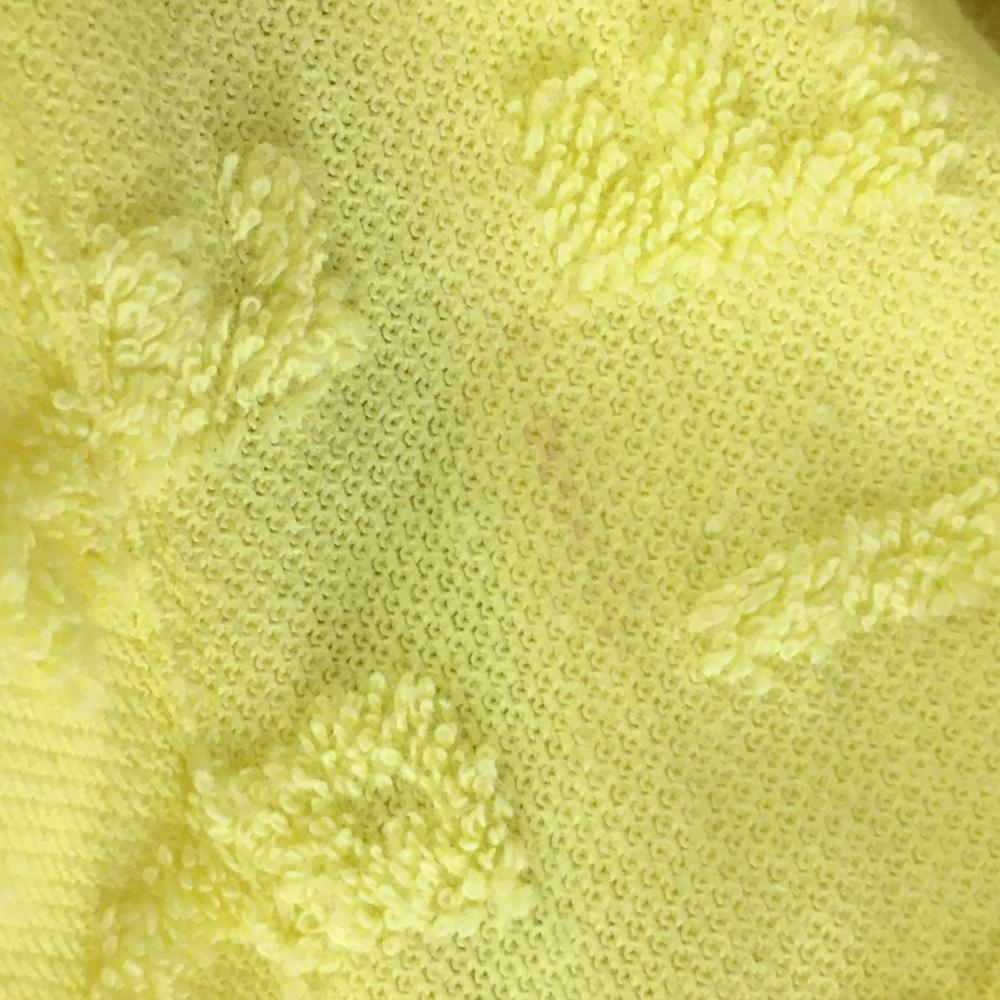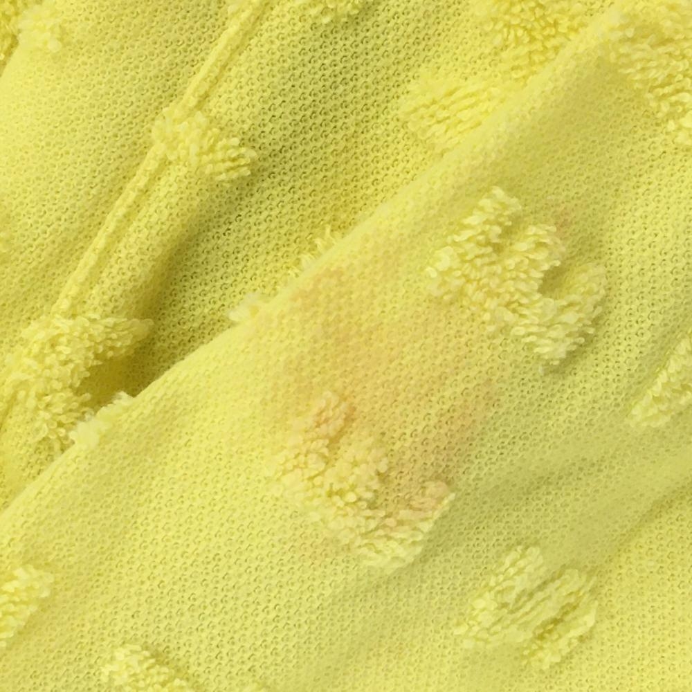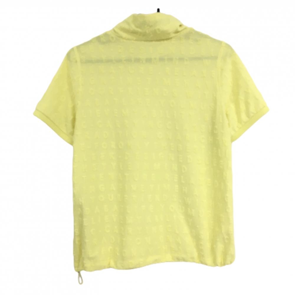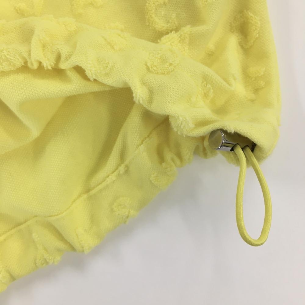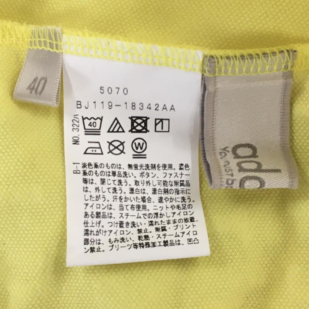 【美品】アダバット 半袖ハイネックシャツ イエロー 立体英字総柄 ロゴワッペン ドローコード レディース 40(L) ゴルフウェア adabat