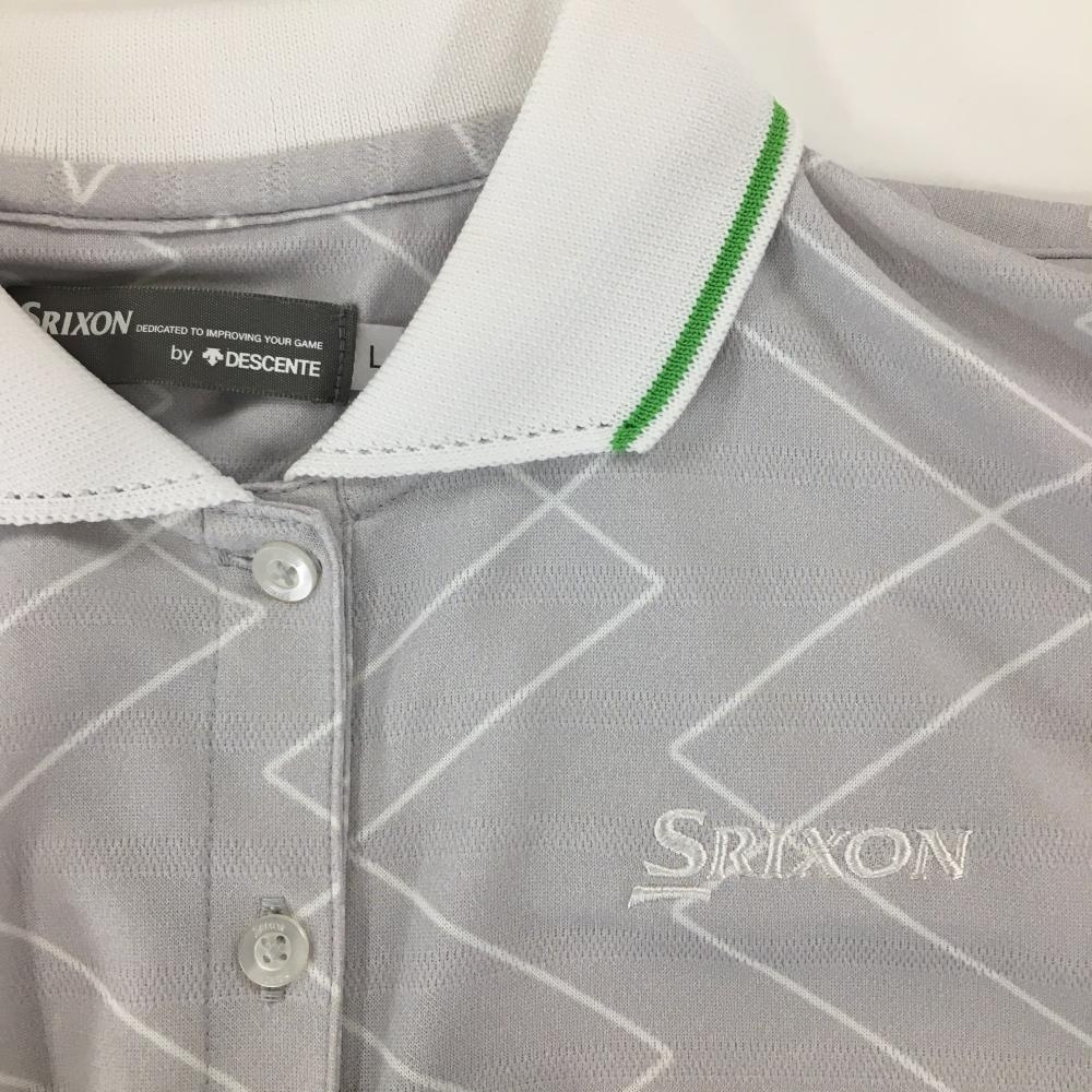スリクソンbyデサント 半袖ポロシャツ ライトグレー×白 総柄 ロゴ刺しゅう レディース L ゴルフウェア SRIXON