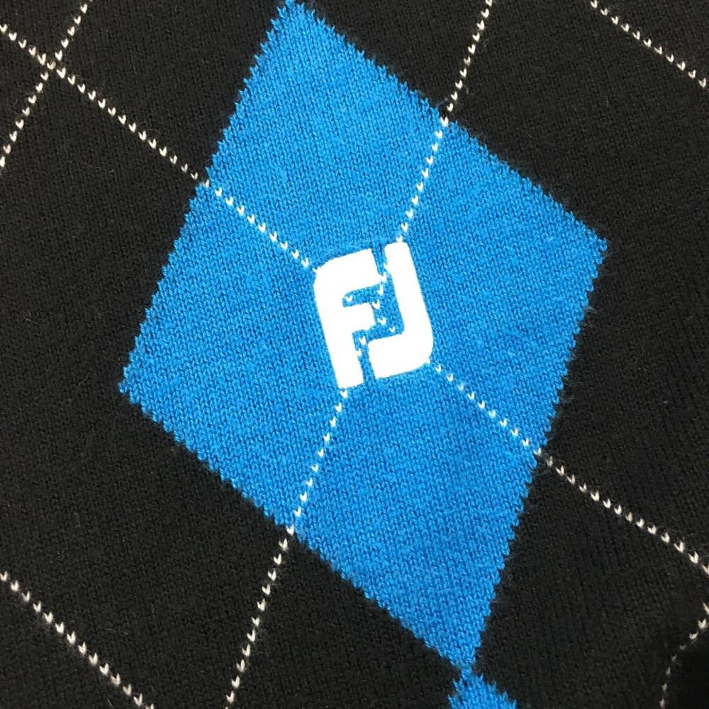 フットジョイ セーター 黒×ライトブルー ダイヤ柄 ウール混 ニット メンズ L ゴルフウェア FootJoy