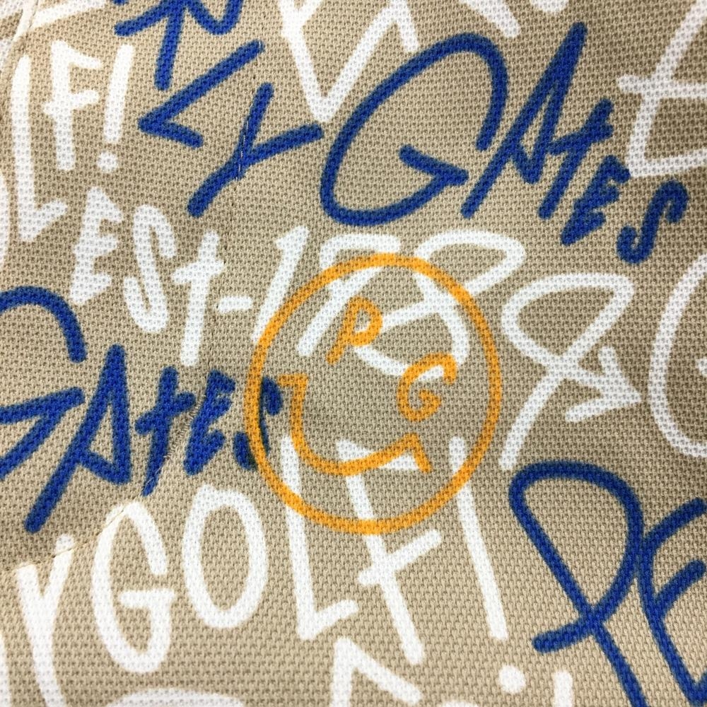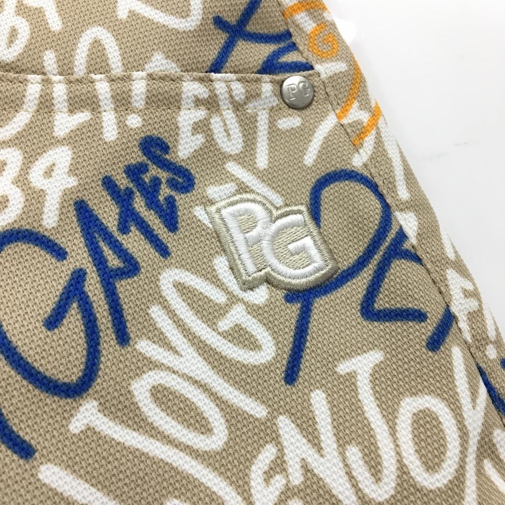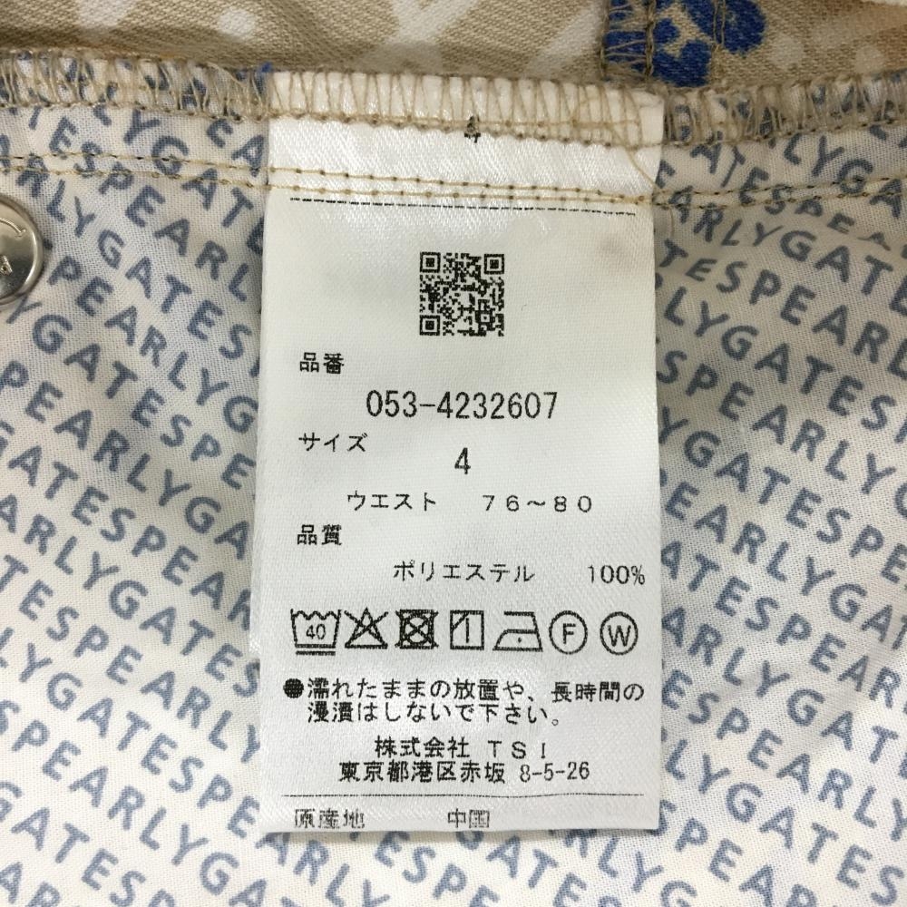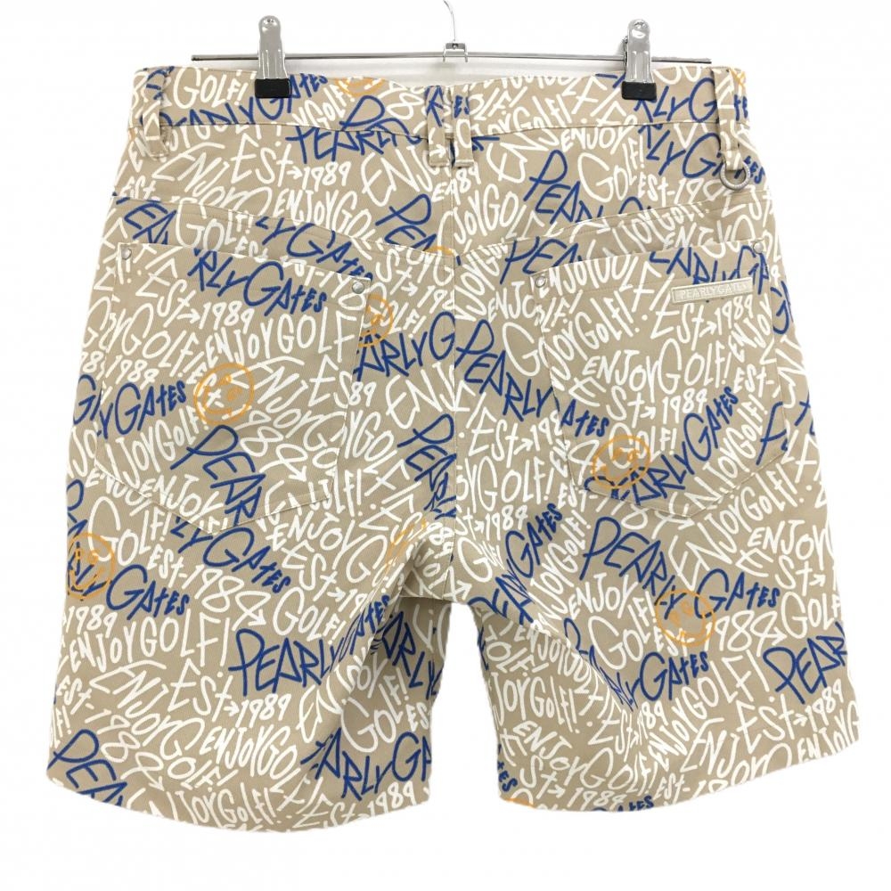 【超美品】パーリーゲイツ ハーフパンツ ベージュ×白×ブルー 英字総柄 メンズ 4(M) ゴルフウェア 2024年モデル PEARLY GATES