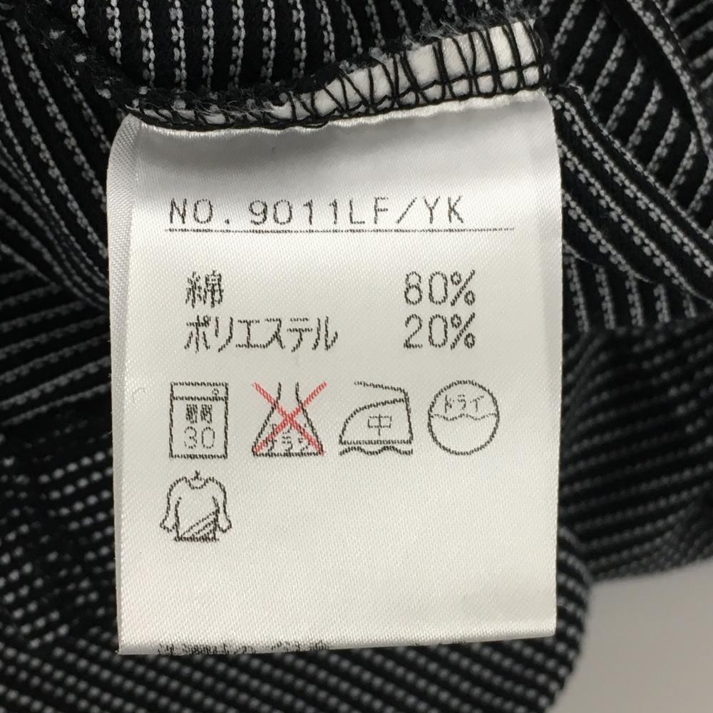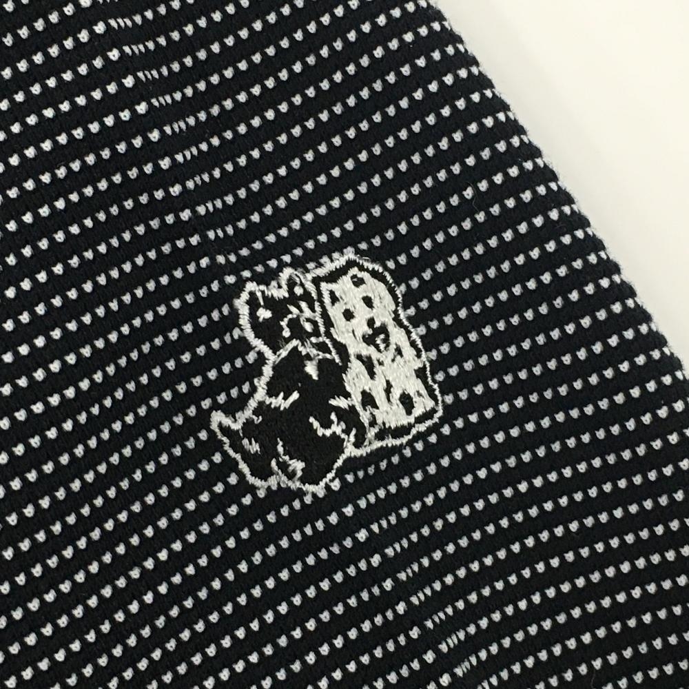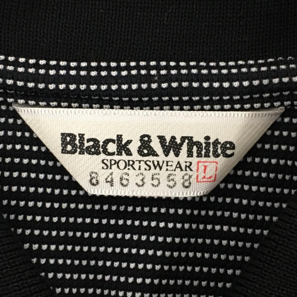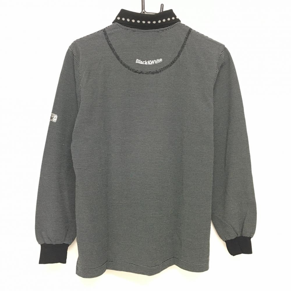 【超美品】ブラックアンドホワイト 長袖ポロシャツ 黒×白 ボーダー風織生地 レディース L ゴルフウェア Black&White