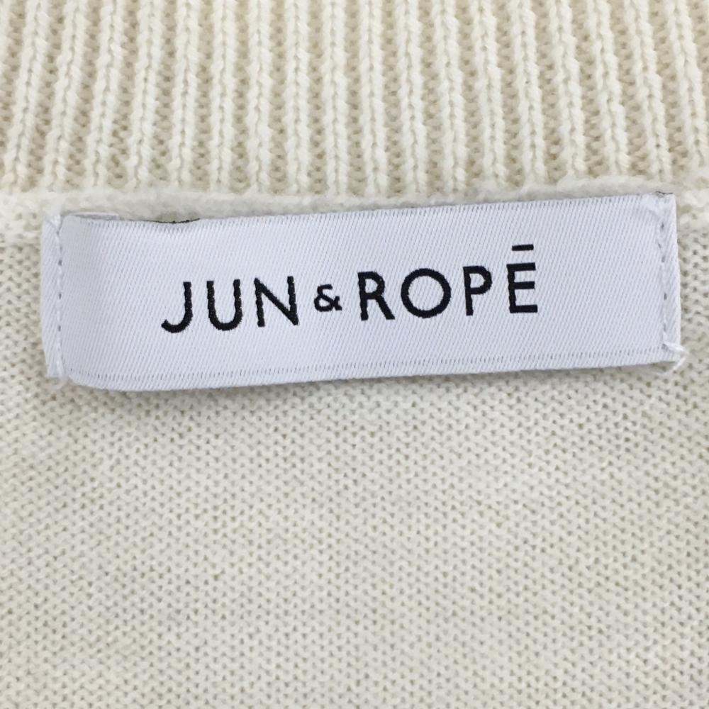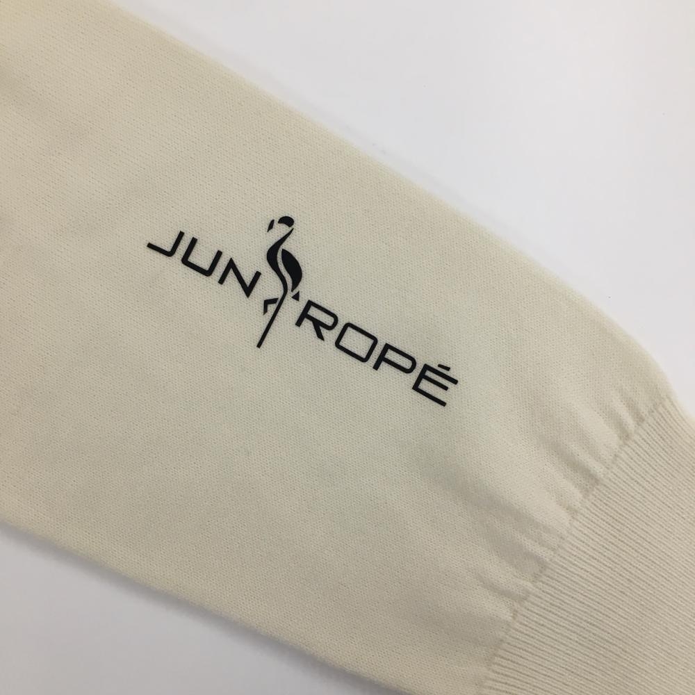 【美品】ジュンアンドロペ セーター アイボリー ニット ウール100% Vネック ロゴ黒 メンズ M ゴルフウェア JUN&ROPE