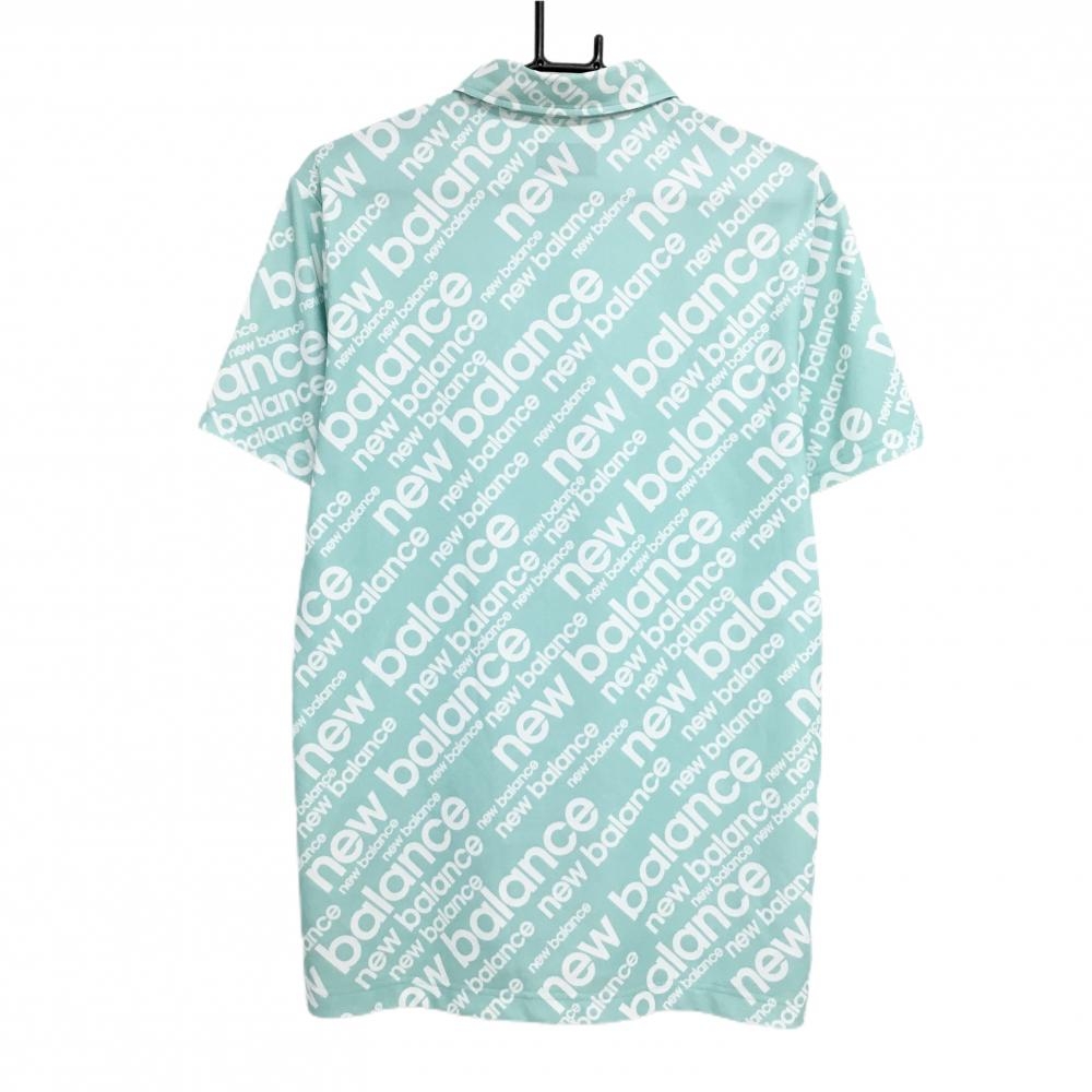 【美品】ニューバランスゴルフ 半袖ポロシャツ ライトグリーン×白 ロゴ総柄 メンズ 5(L) ゴルフウェア 2023年モデル New Balance