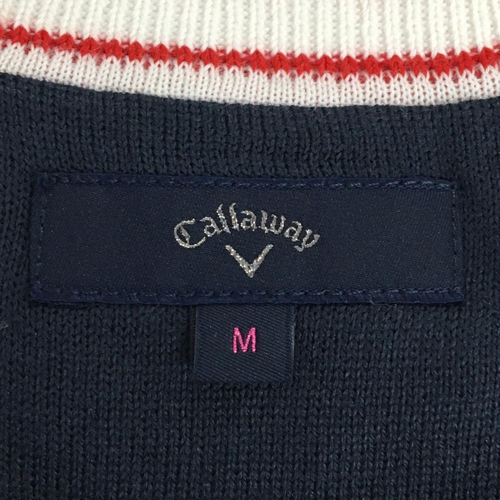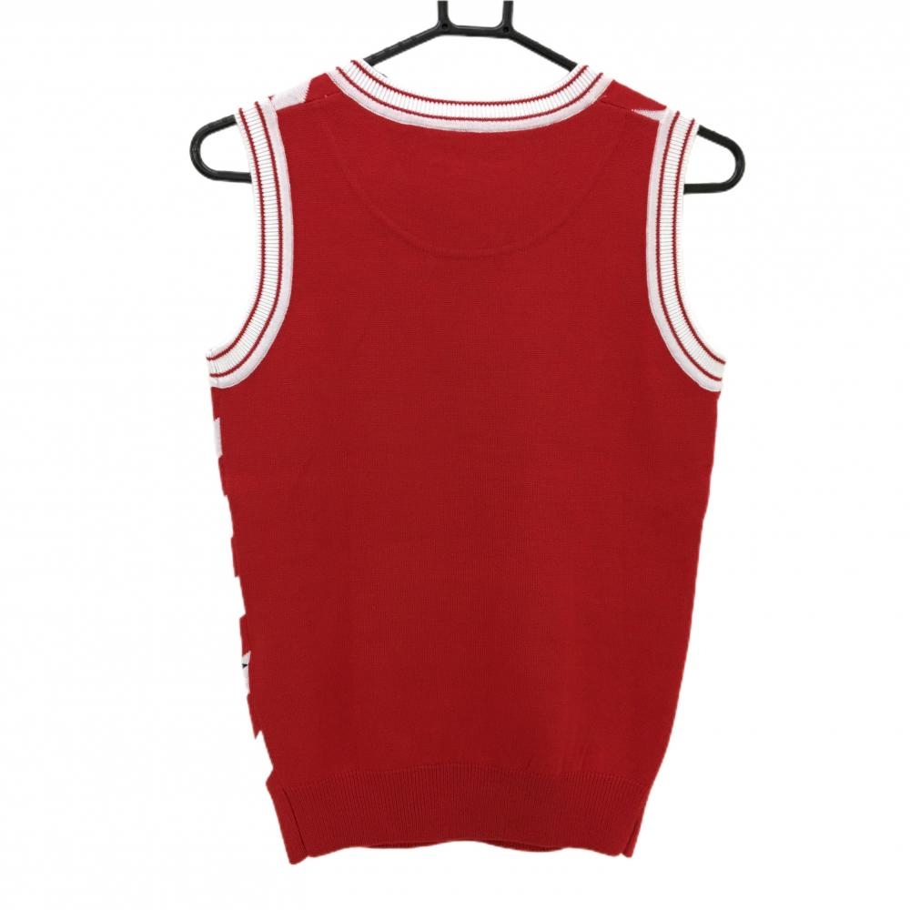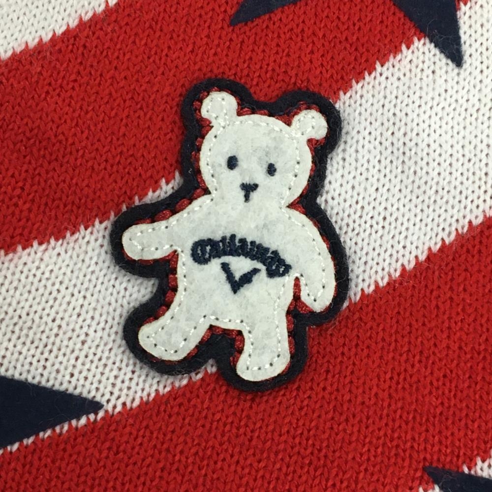【超美品】キャロウェイ ニットベスト レッド×白 星柄 斜めストライプ ベアワッペン ウール混 レディース M ゴルフウェア Callaway