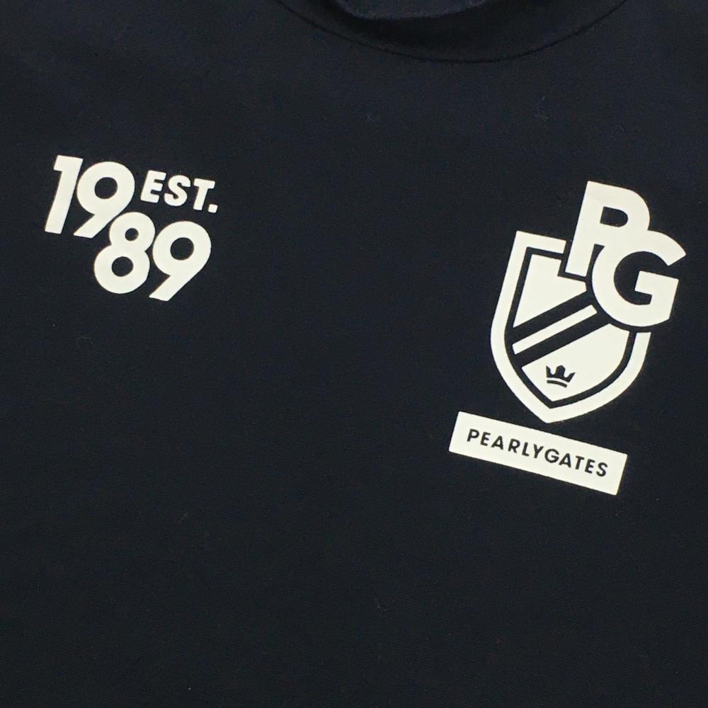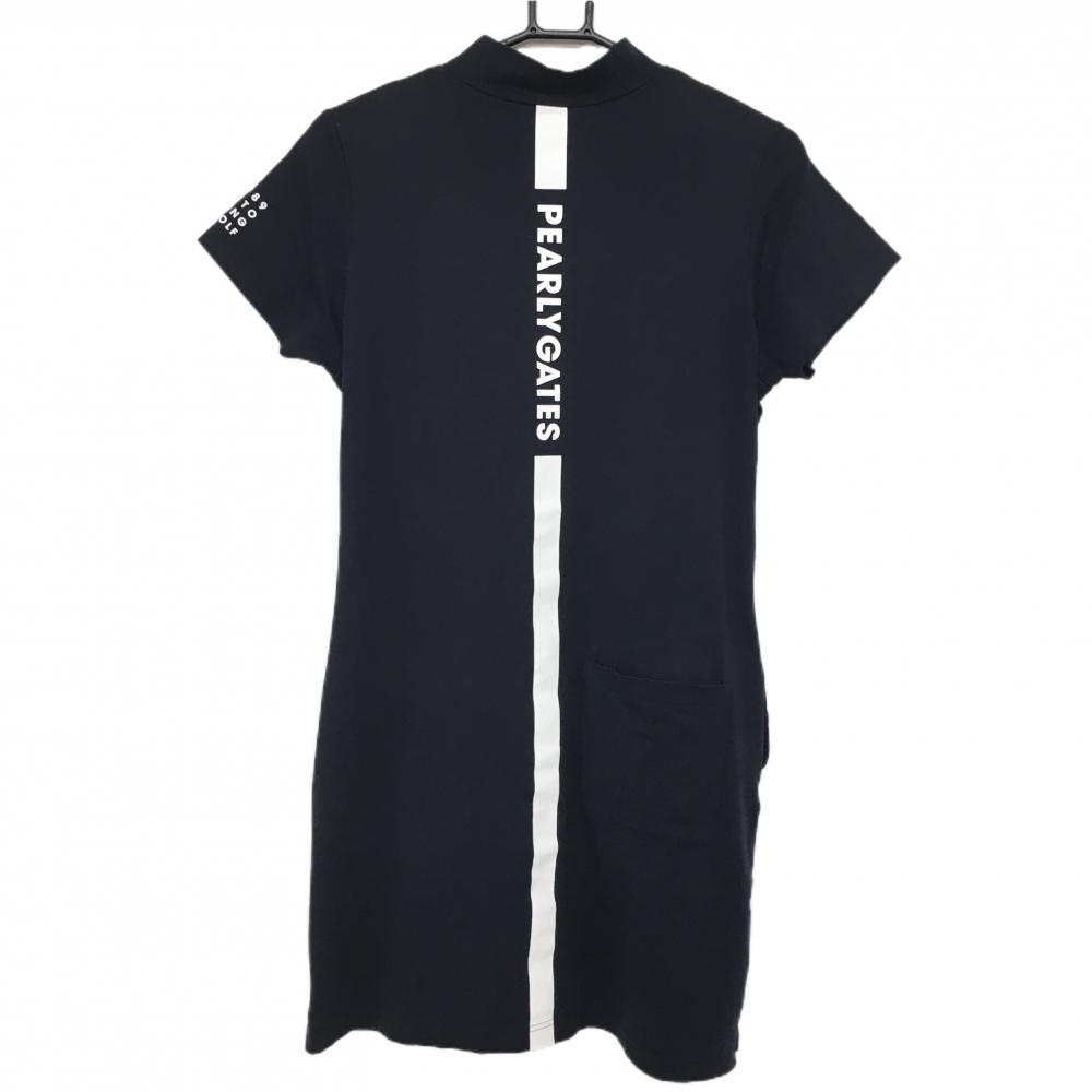 【美品】パーリーゲイツ 半袖ハイネックワンピース ネイビー×白 ロゴプリント レディース 0(S) ゴルフウェア PEARLY GATES