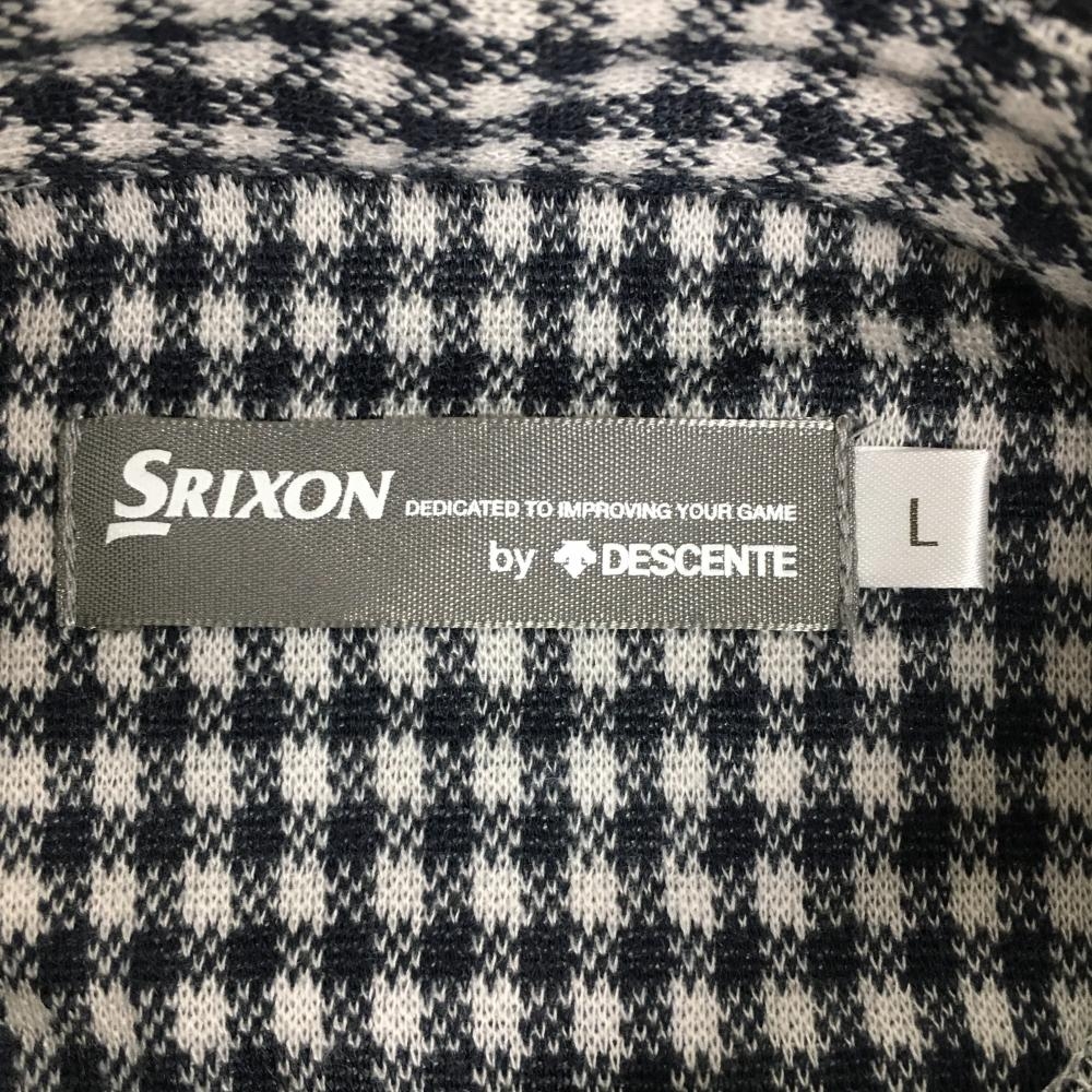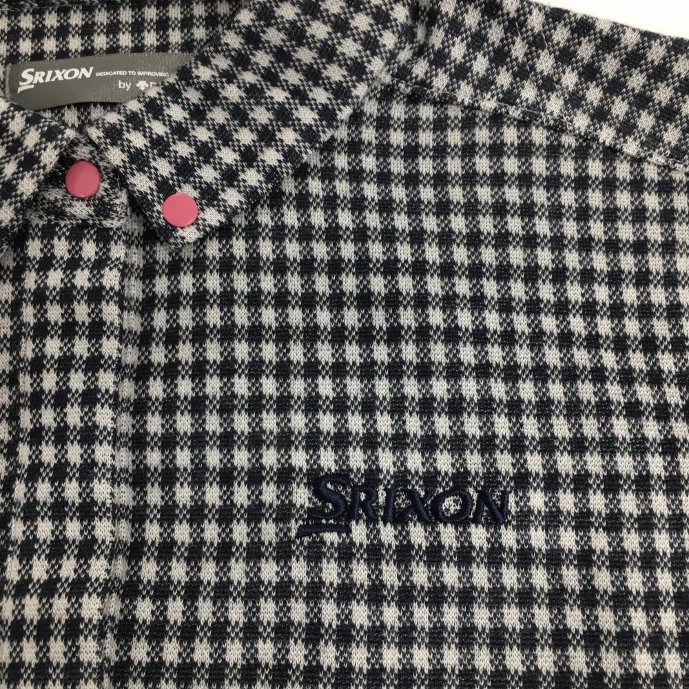 【超美品】スリクソンバイデサント 長袖ポロシャツ ネイビー×白 チェック ボタンダウン レディース L ゴルフウェア SRIXON
