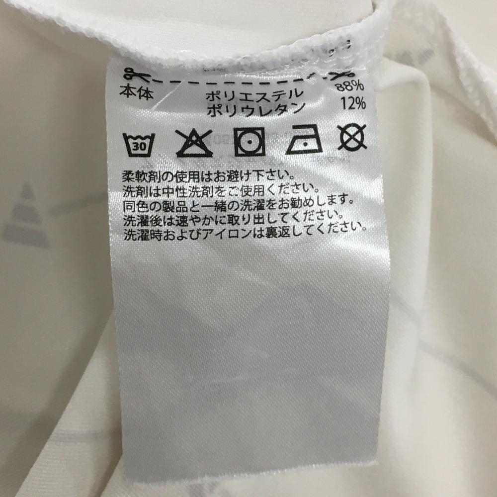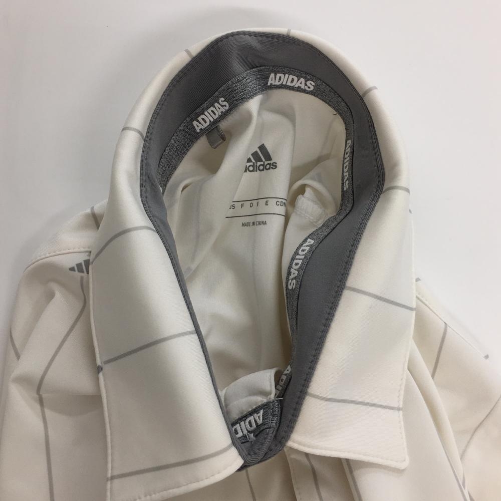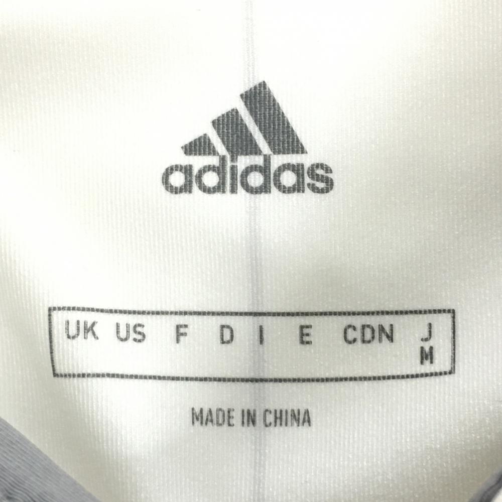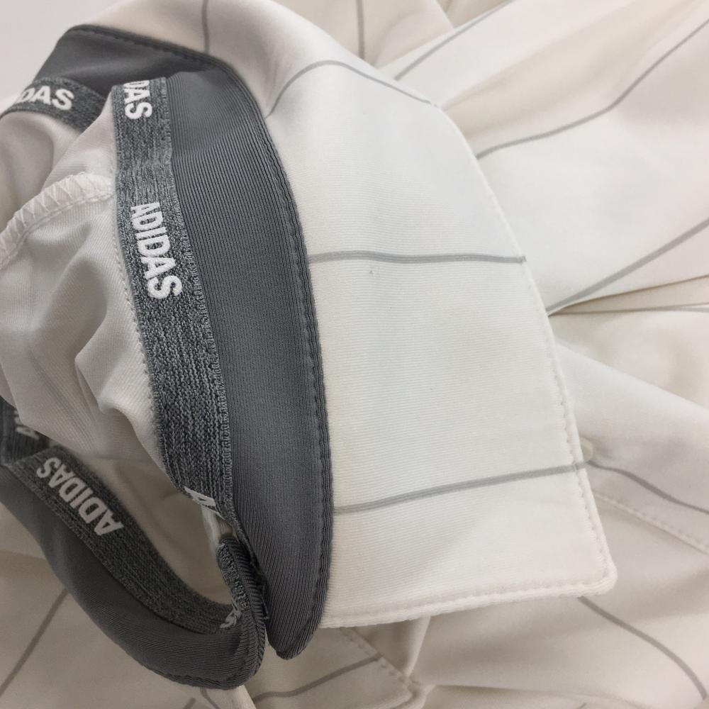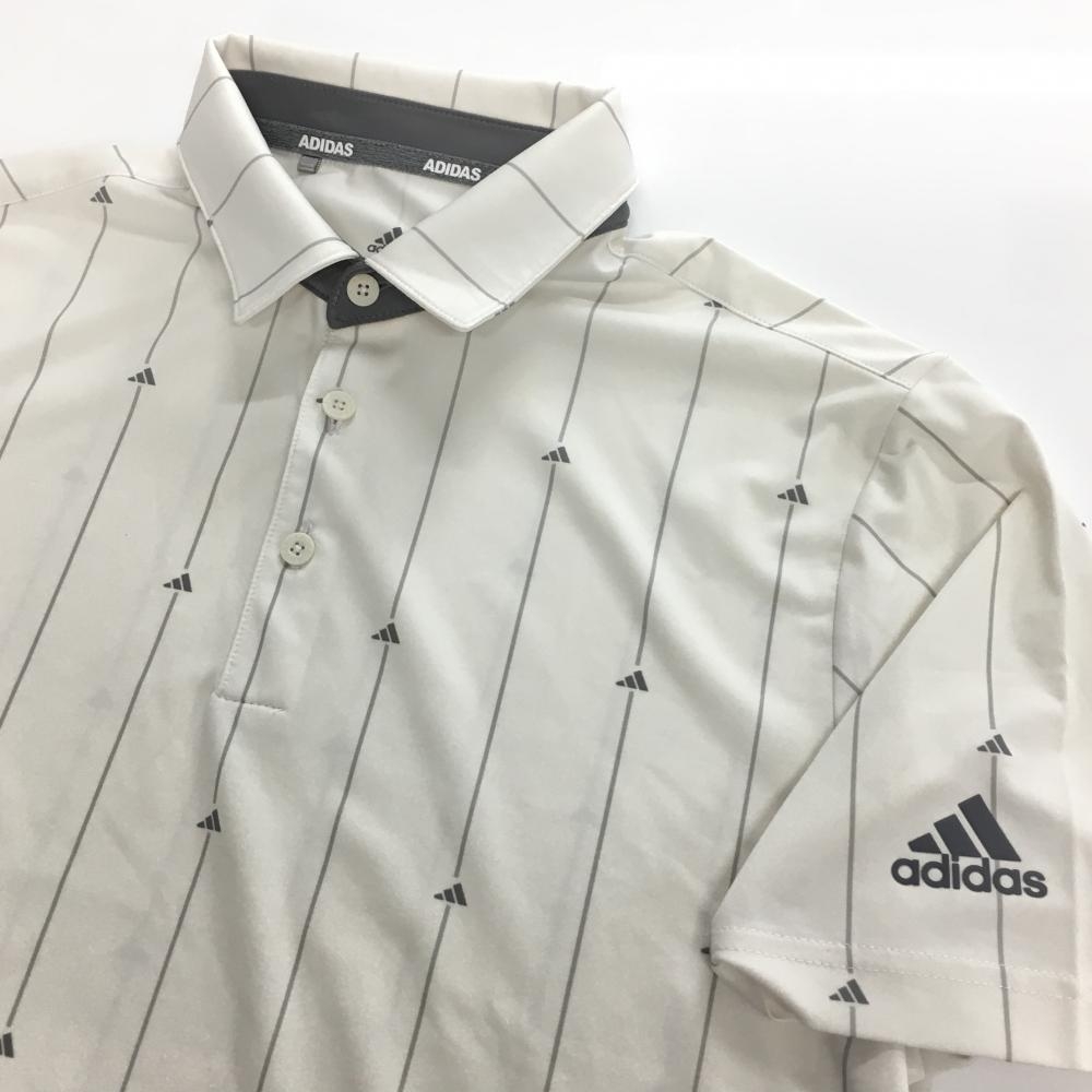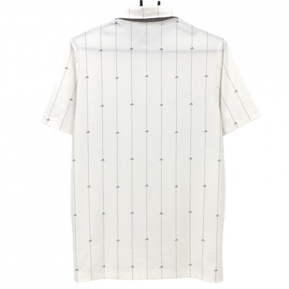 アディダス 半袖ポロシャツ 白×グレー ストライプ ロゴ柄 メンズ M ゴルフウェア adidas