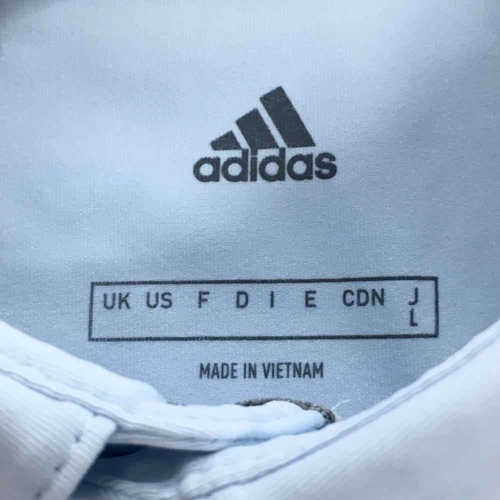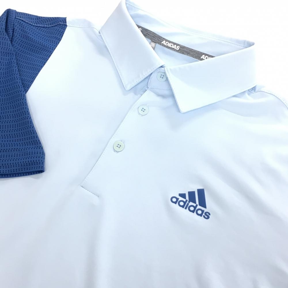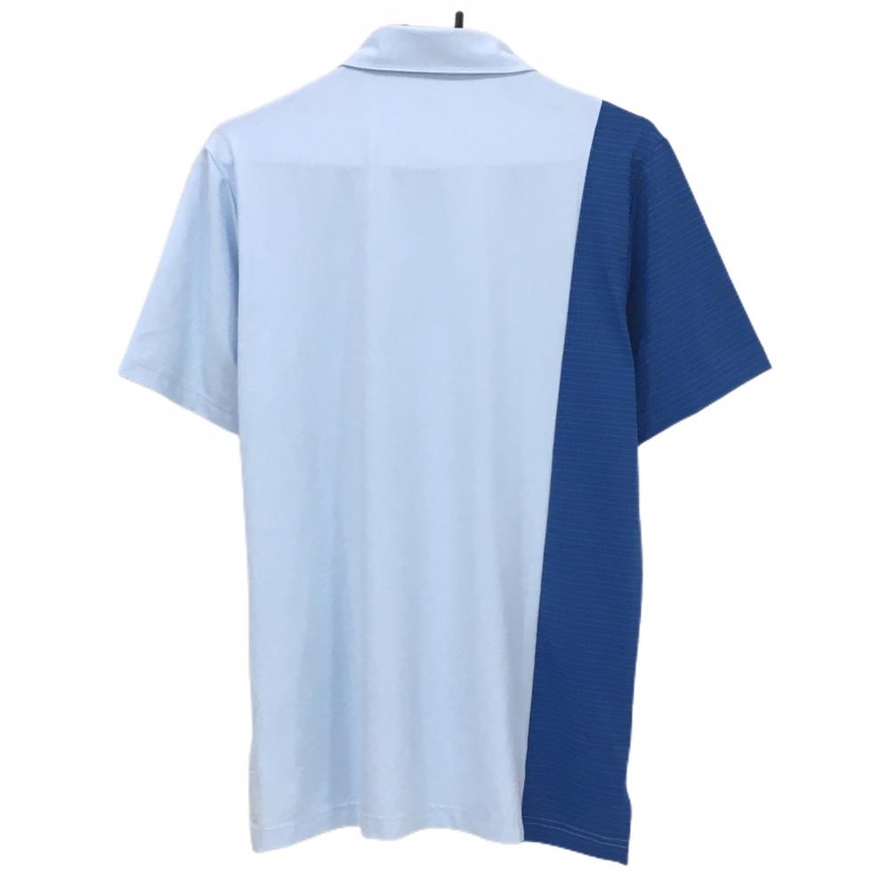 【美品】アディダス 半袖ポロシャツ ライトブルー×ブルー バイカラー 一部総柄 メンズ L ゴルフウェア adidas