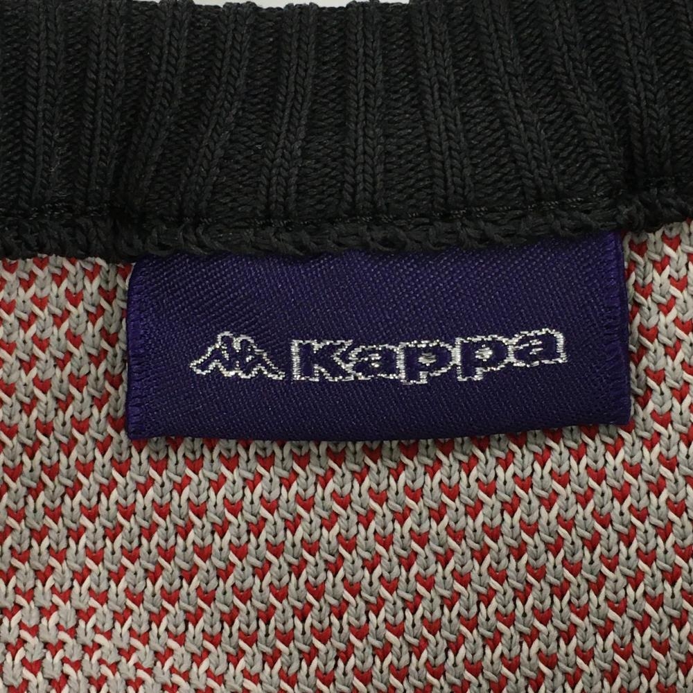 カッパ セーター グレー×レッド×黒 袖ライン ニット レディース L ゴルフウェア Kappa