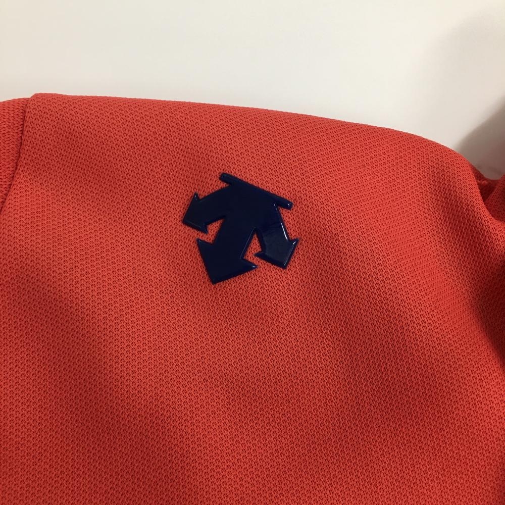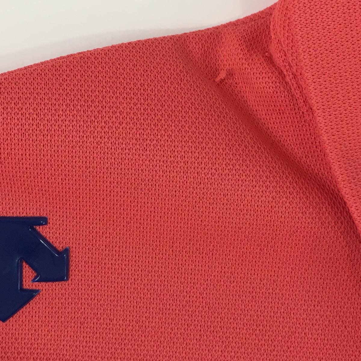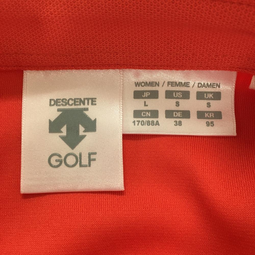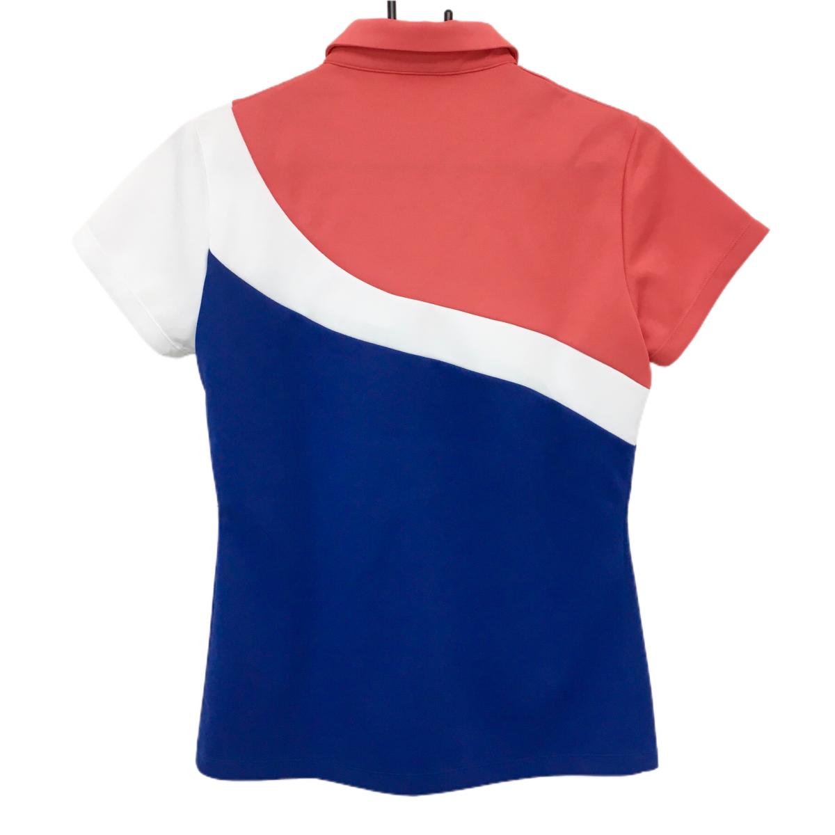 デサントゴルフ 半袖ポロシャツ ネイビー×レッドピンク系 ハーフジップ 3トーンカラー 中田英寿 レディース L ゴルフウェア DESCENTE
