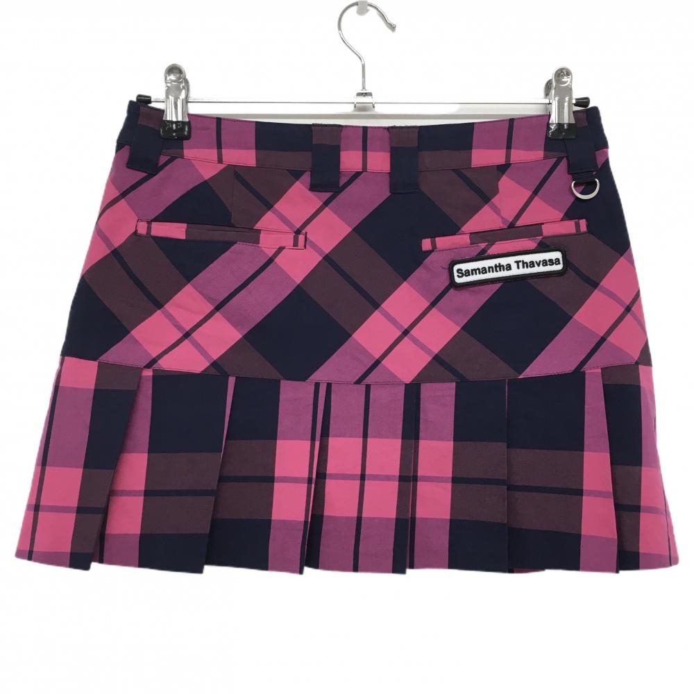 【美品】サマンサタバサUNDER25 プリーツスカート ピンク×ネイビー チェック柄 レディース PRO2 ゴルフウェア Samantha Thavasa