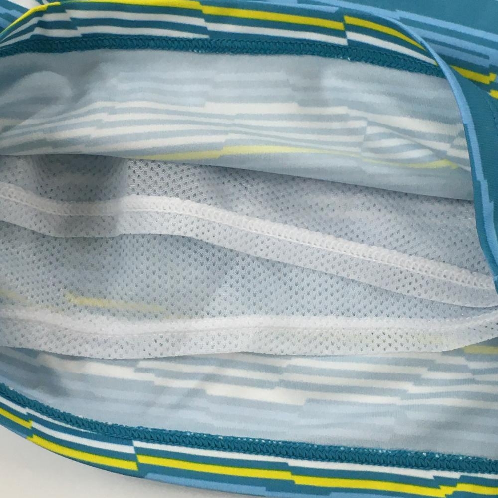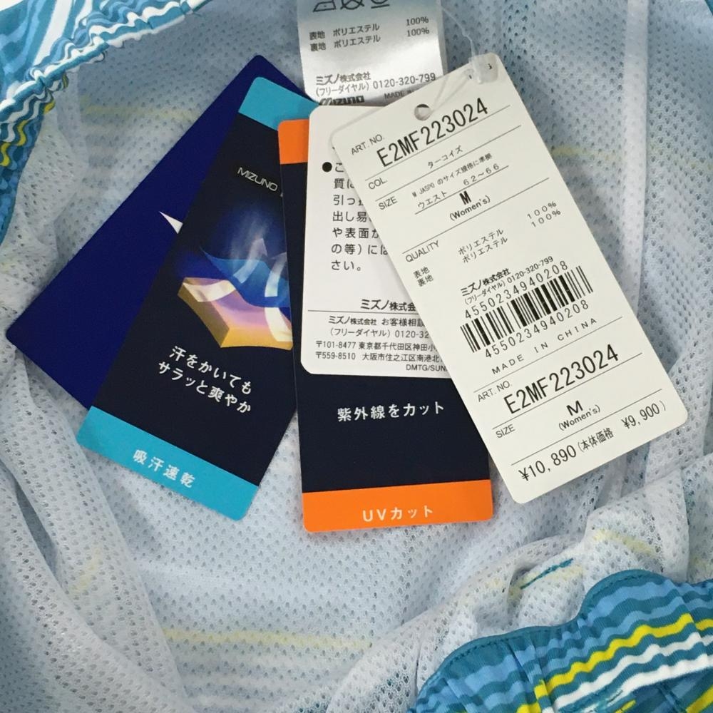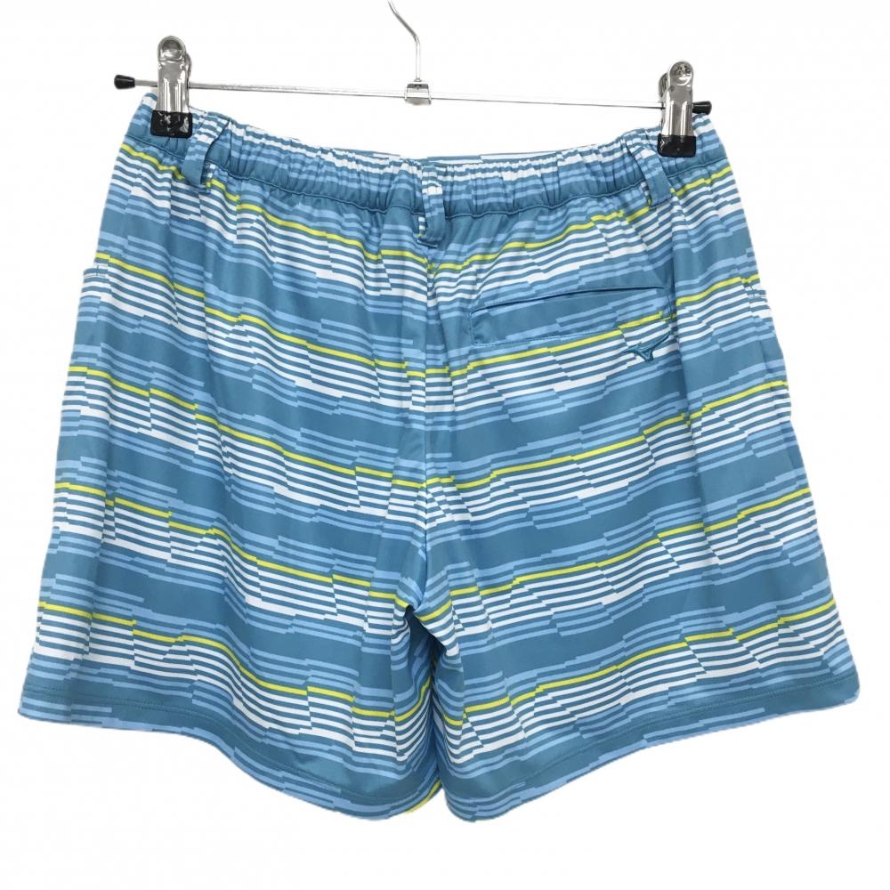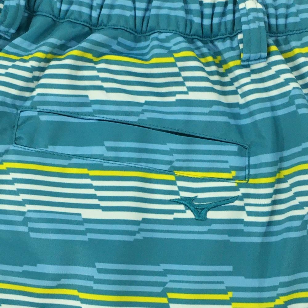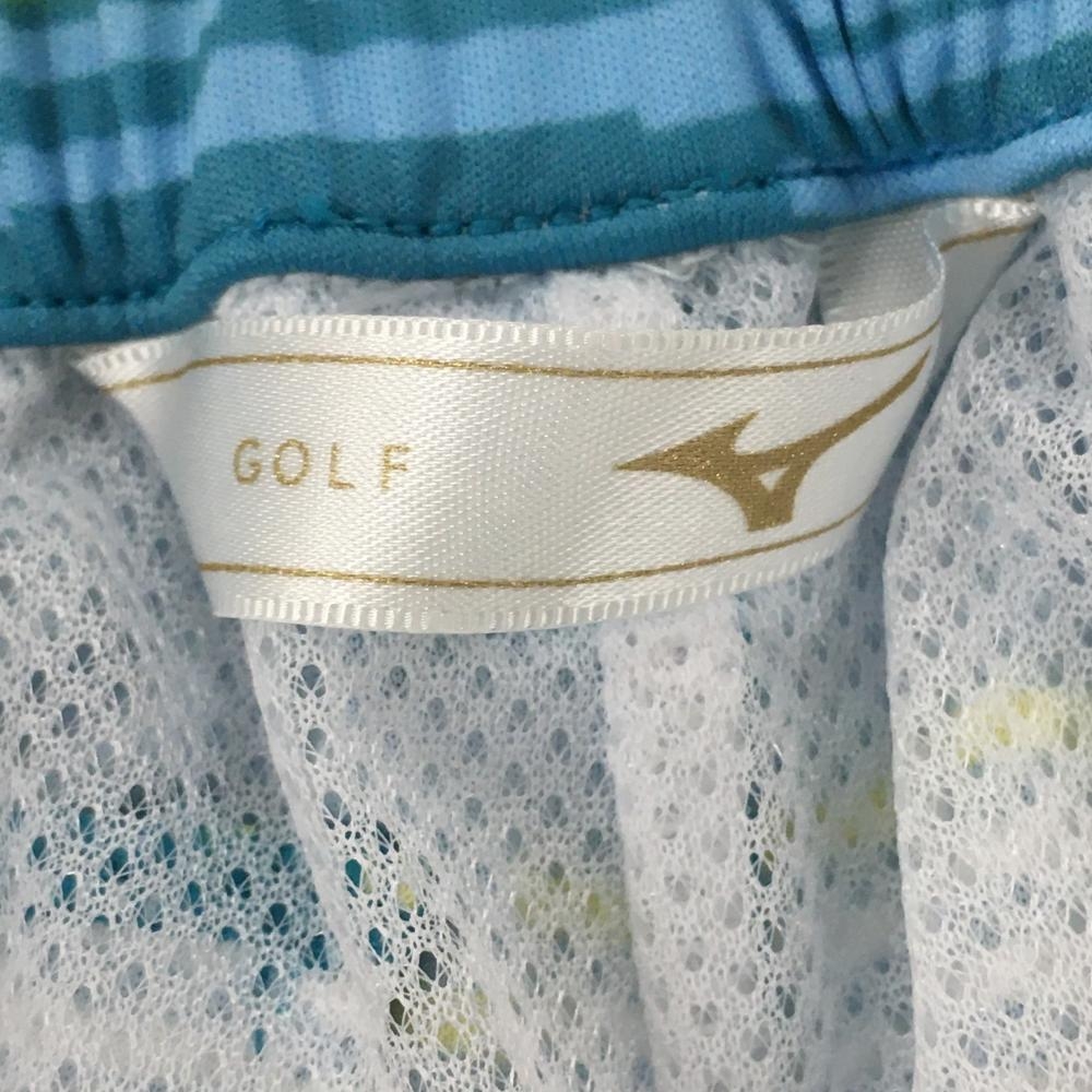 【新品】ミズノゴルフ ショートパンツ ライトブルー×白×イエロー ボーダー風 UVカット 吸汗速乾 レディース M ゴルフウェア MIZUNO