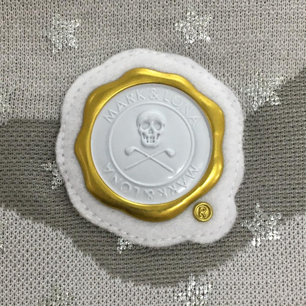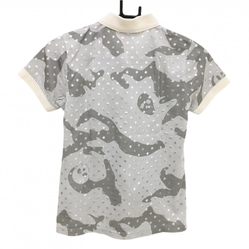 【超美品】マークアンドロナ 半袖ポロシャツ グレー×シルバー 星柄 迷彩 スカル レディース S ゴルフウェア MARK&LONA