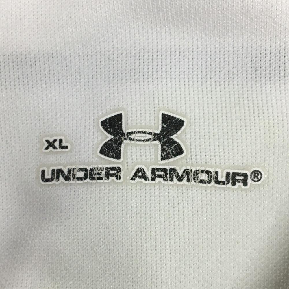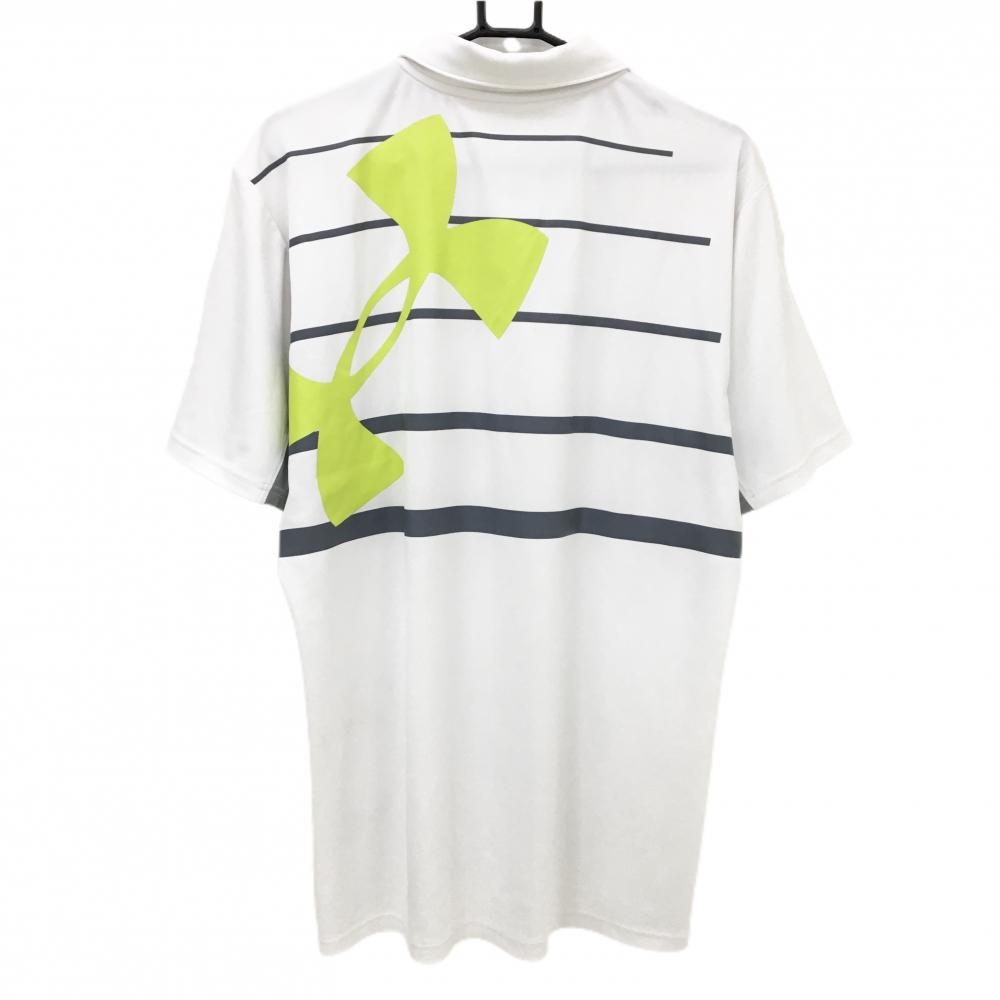 アンダーアーマー 半袖ポロシャツ 白×グレー バックプリント ロゴ刺しゅう メンズ XL ゴルフウェア UNDER ARMOUR