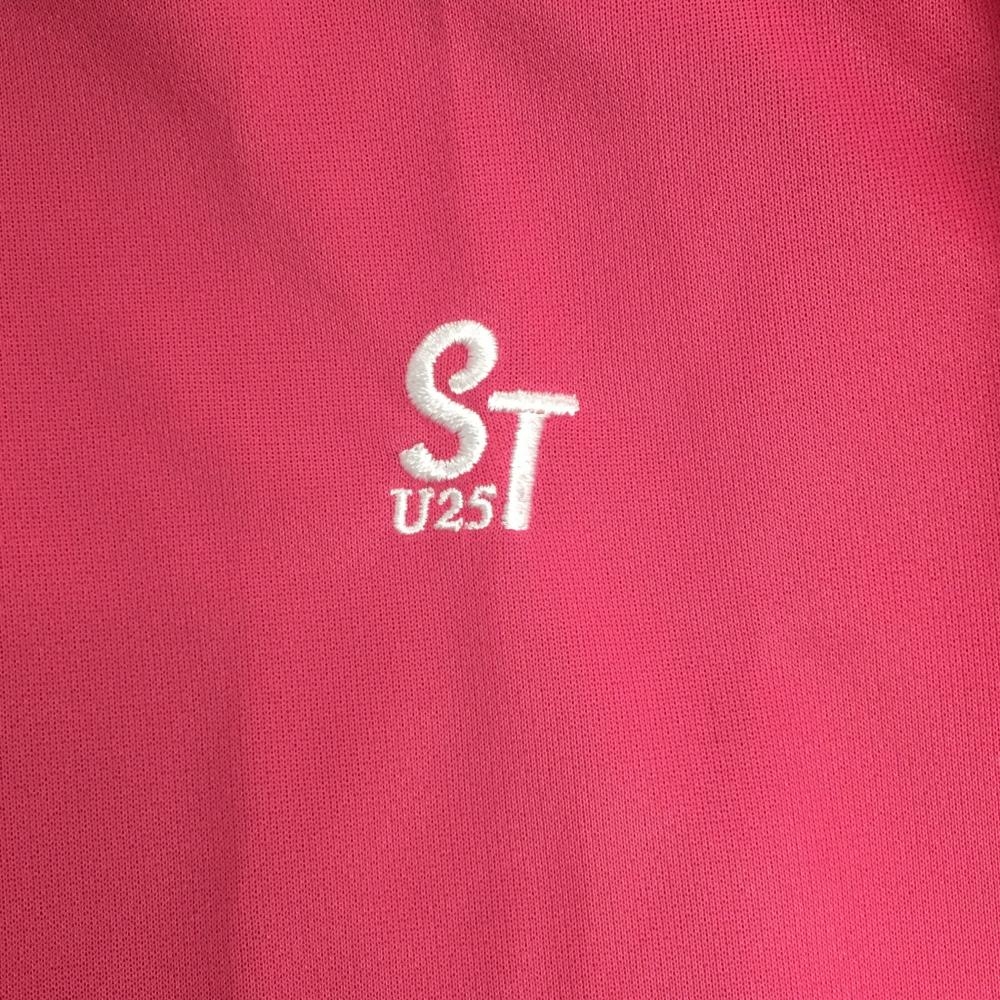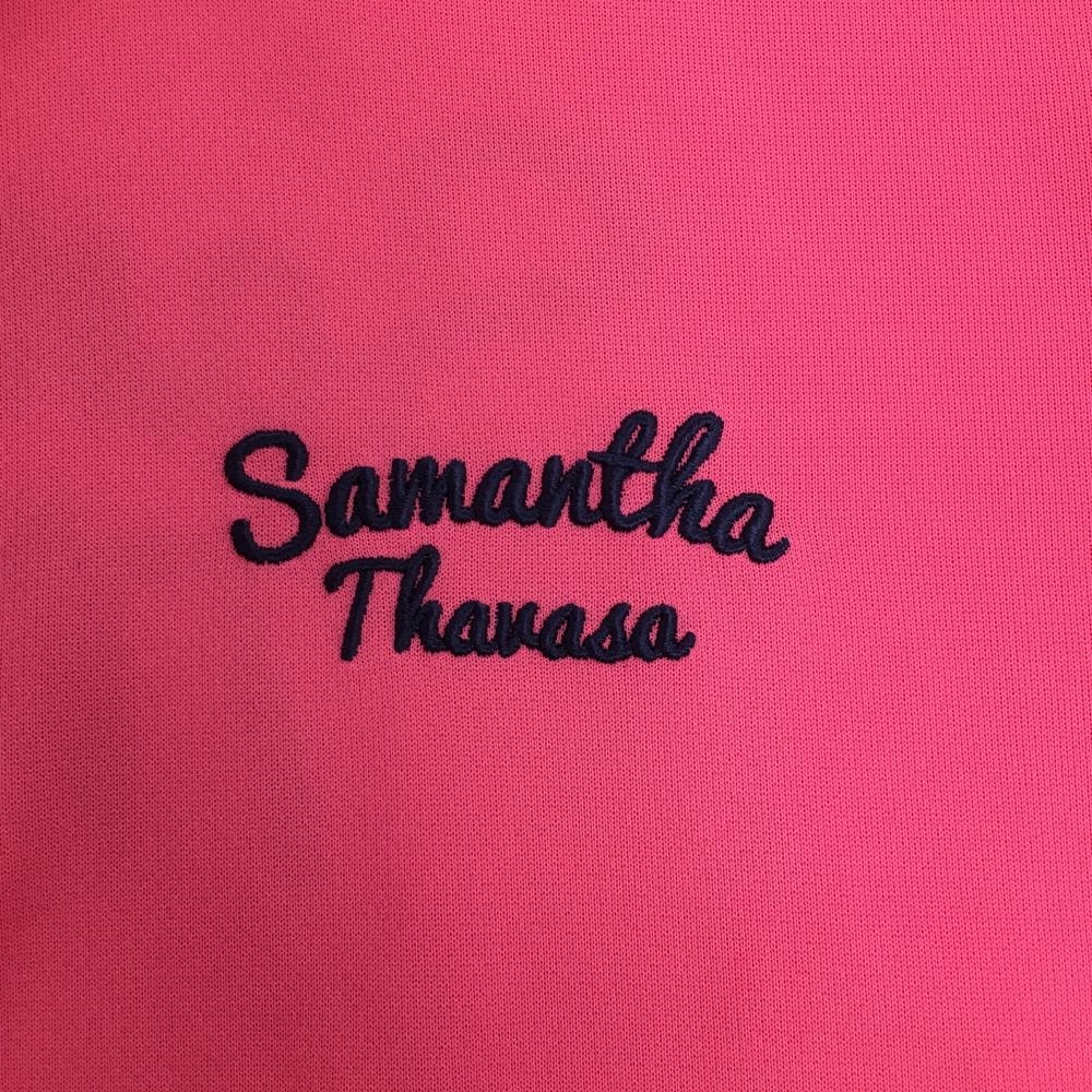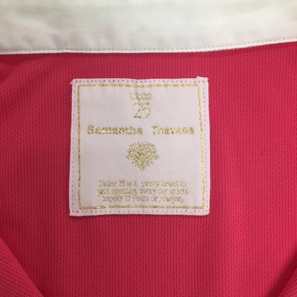 サマンサタバサUNDER25 長袖ポロシャツ ピンク×白 ロゴネイビー レディース M ゴルフウェア Samantha Thavasa