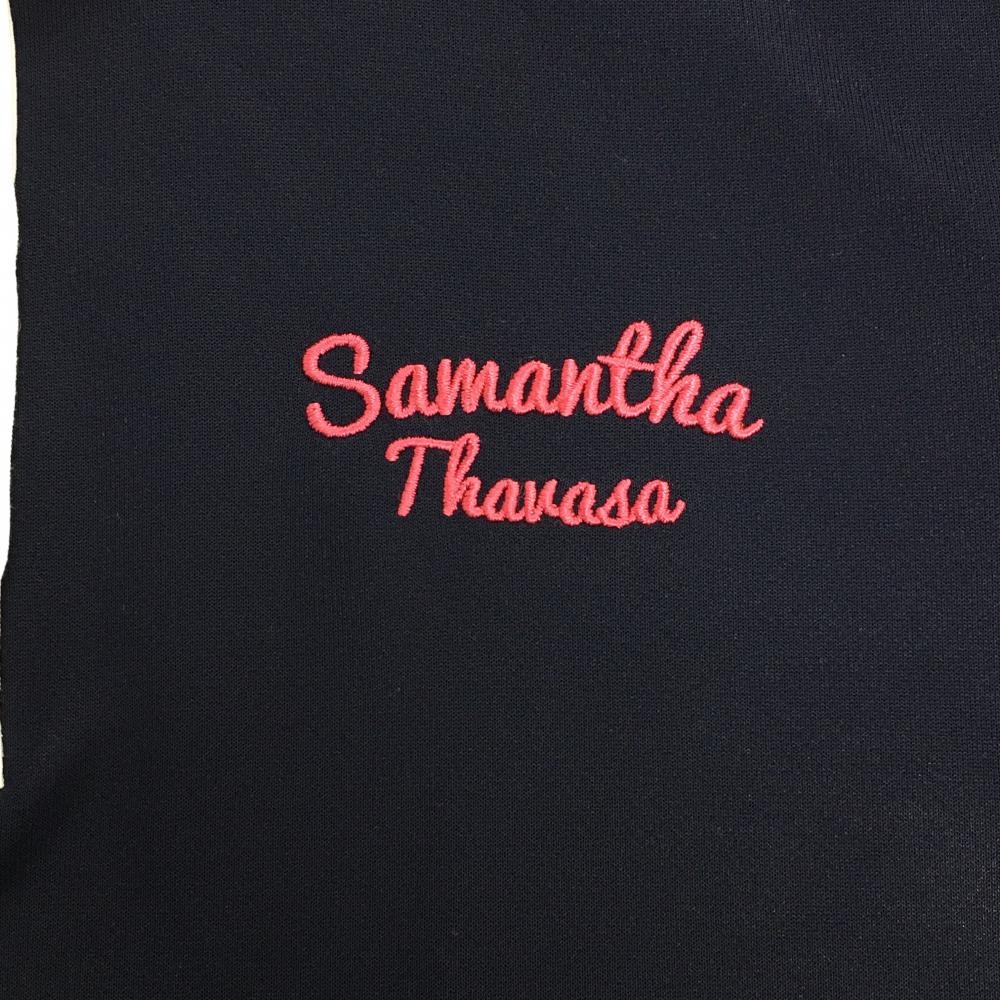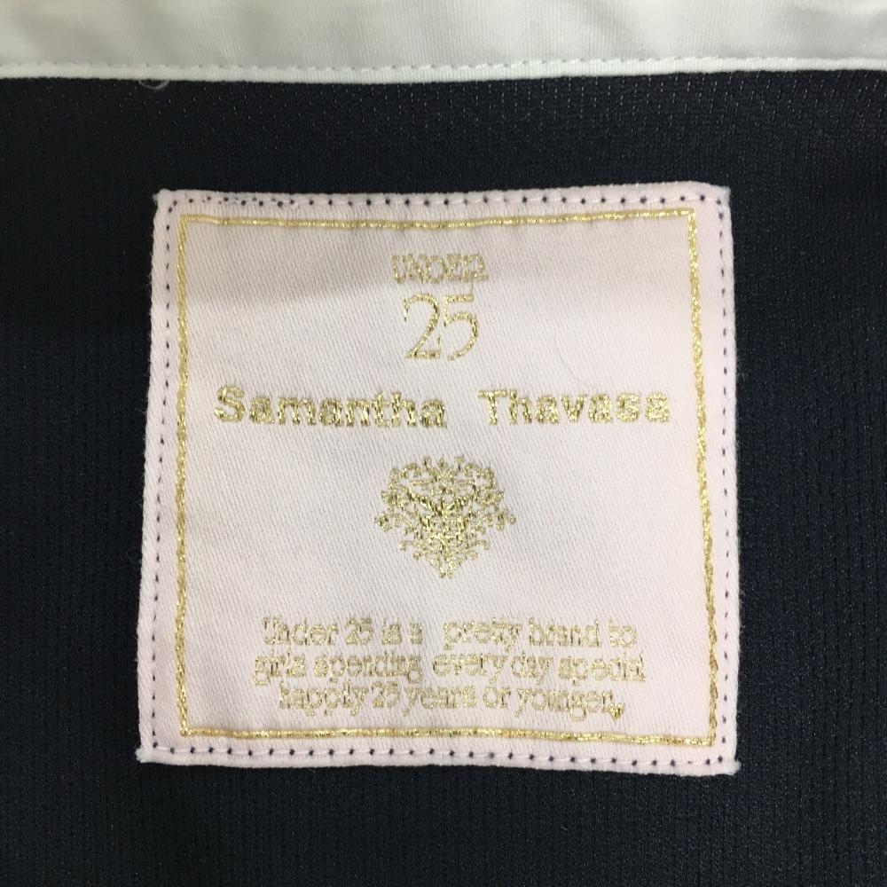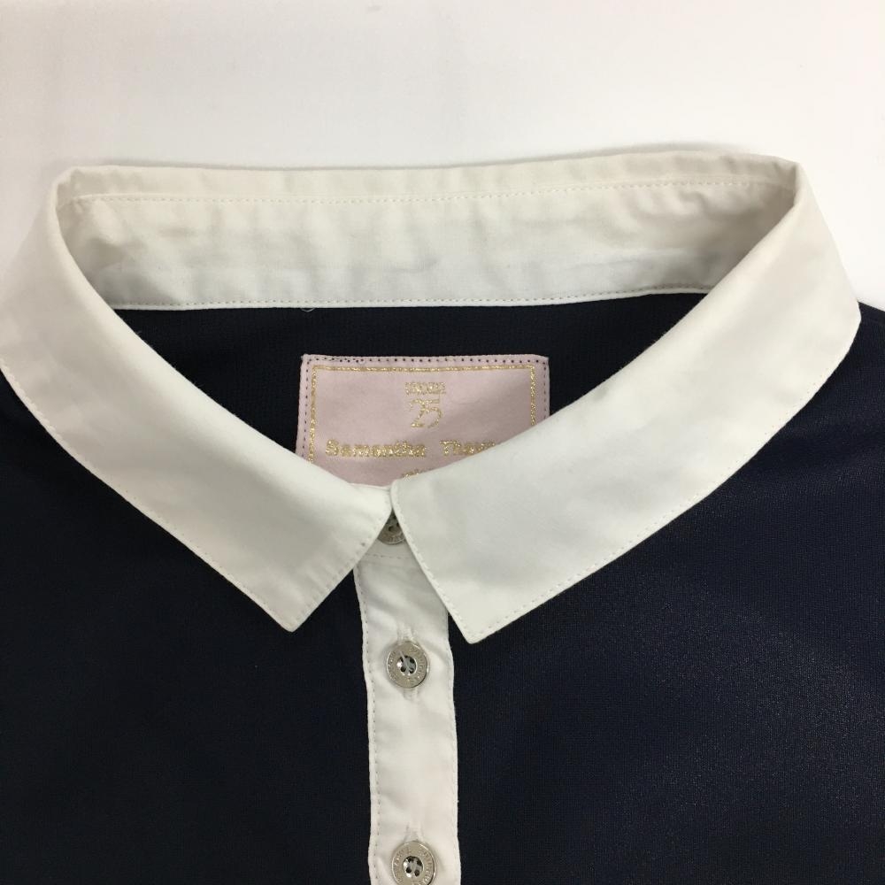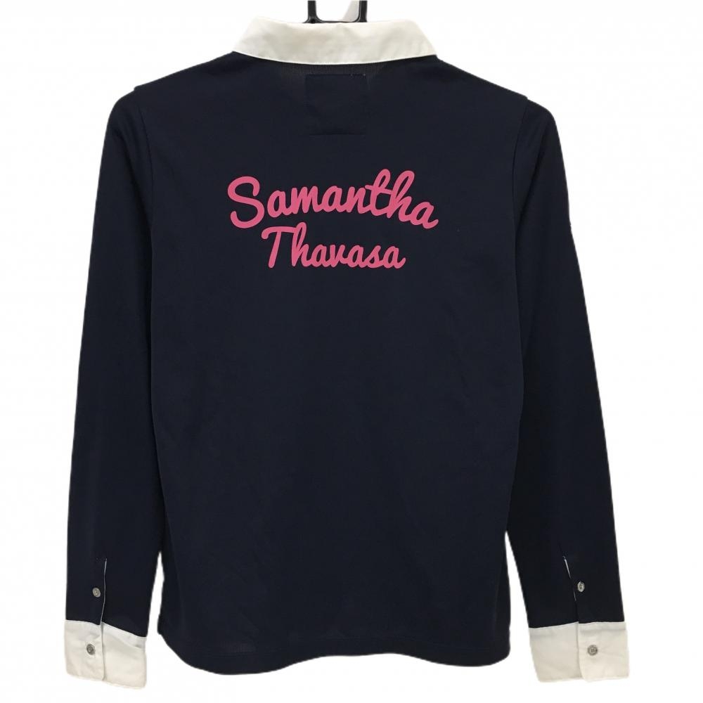サマンサタバサUNDER25 長袖ポロシャツ ネイビー×白 ロゴピンク レディース M ゴルフウェア Samantha Thavasa