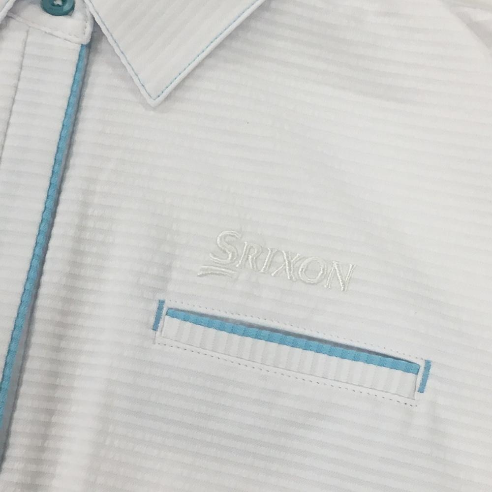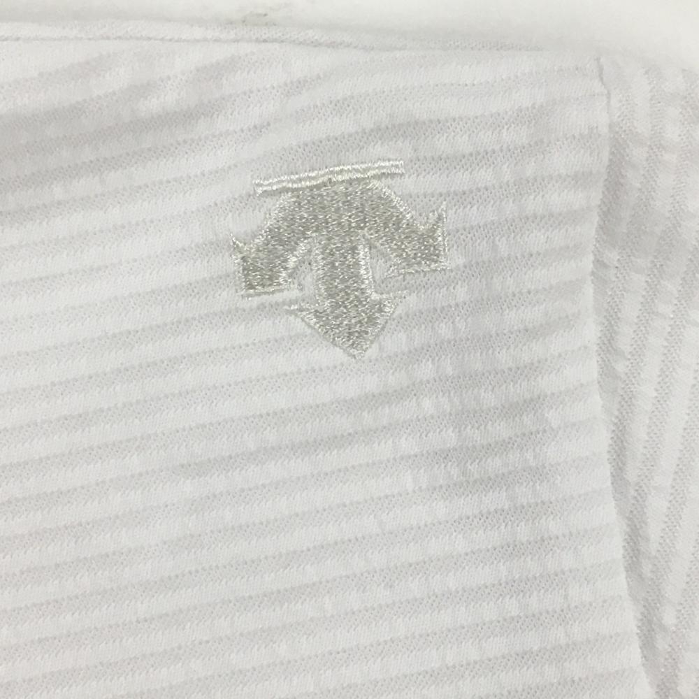 【超美品】スリクソンバイデサント 半袖ポロシャツ 白 ボーダー織生地 チュニック レディース L ゴルフウェア SRIXON