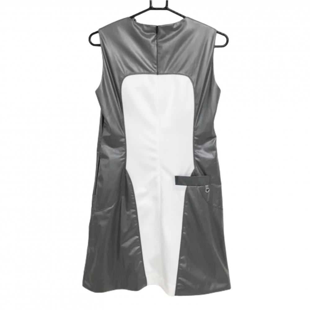 【新品】ヒールクリーク ノースリーブワンピース グレー×白 切替素材 後ろハーフジップ レディース 40(M) ゴルフウェア Heal Creek