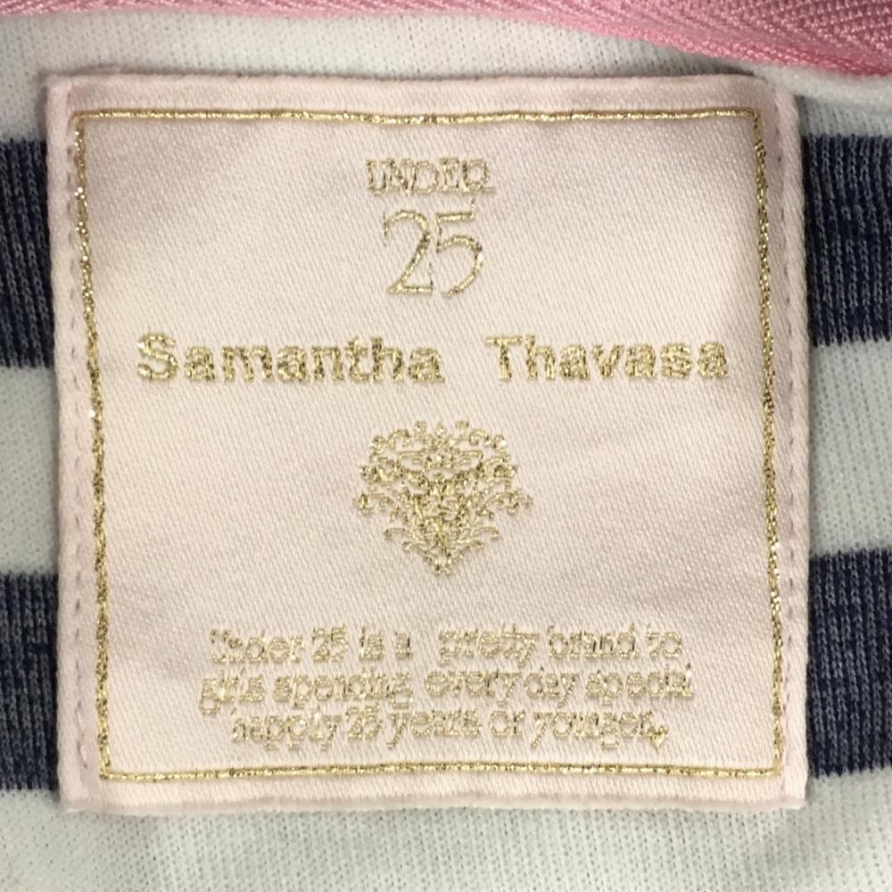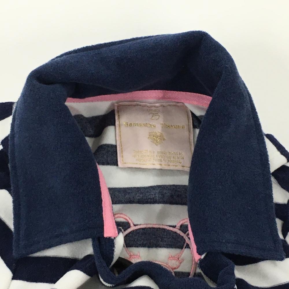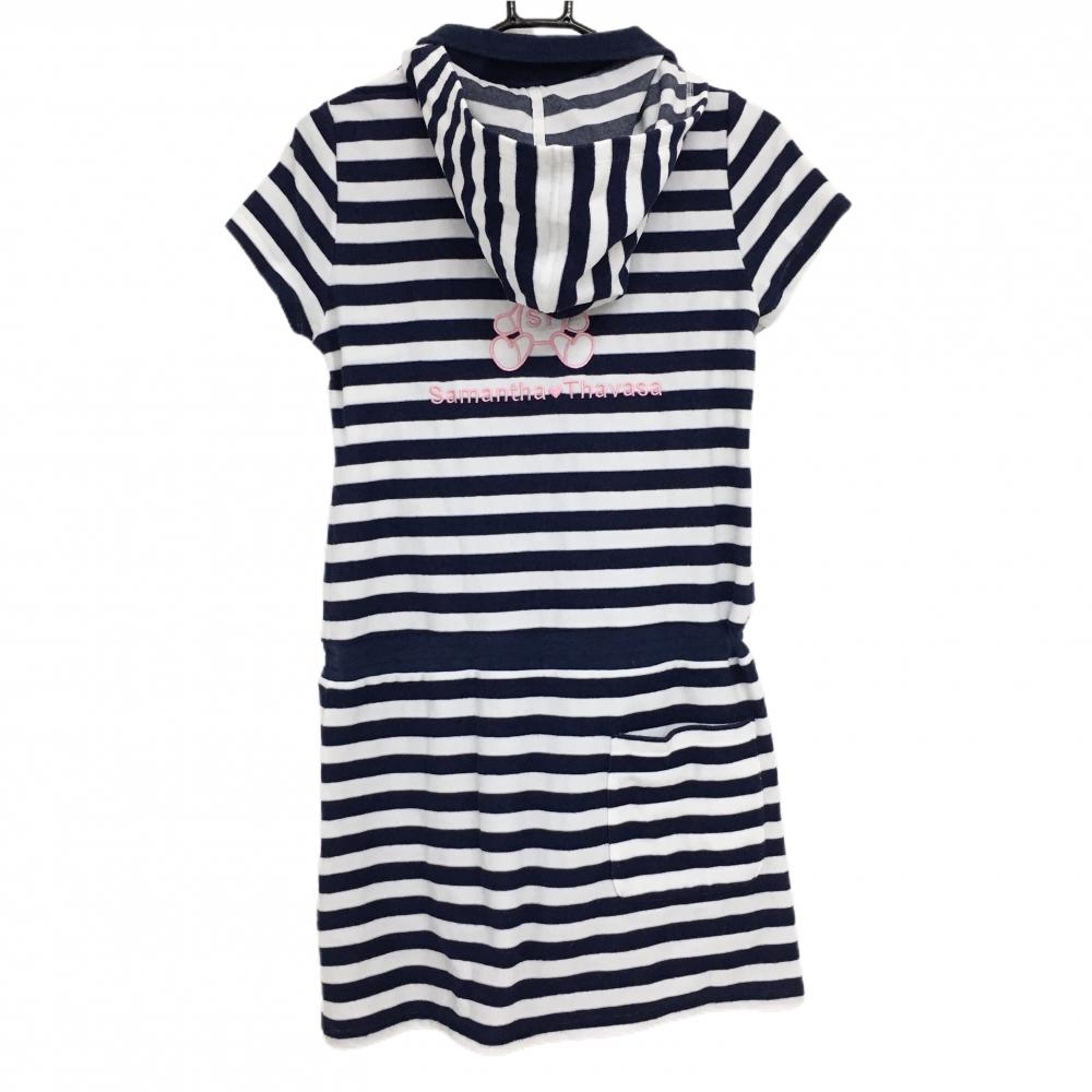 【美品】サマンサタバサUNDER25 フード付き半袖ワンピース ネイビー×白 ボーダー柄 パイル地 レディース M ゴルフウェア Samantha Thavasa