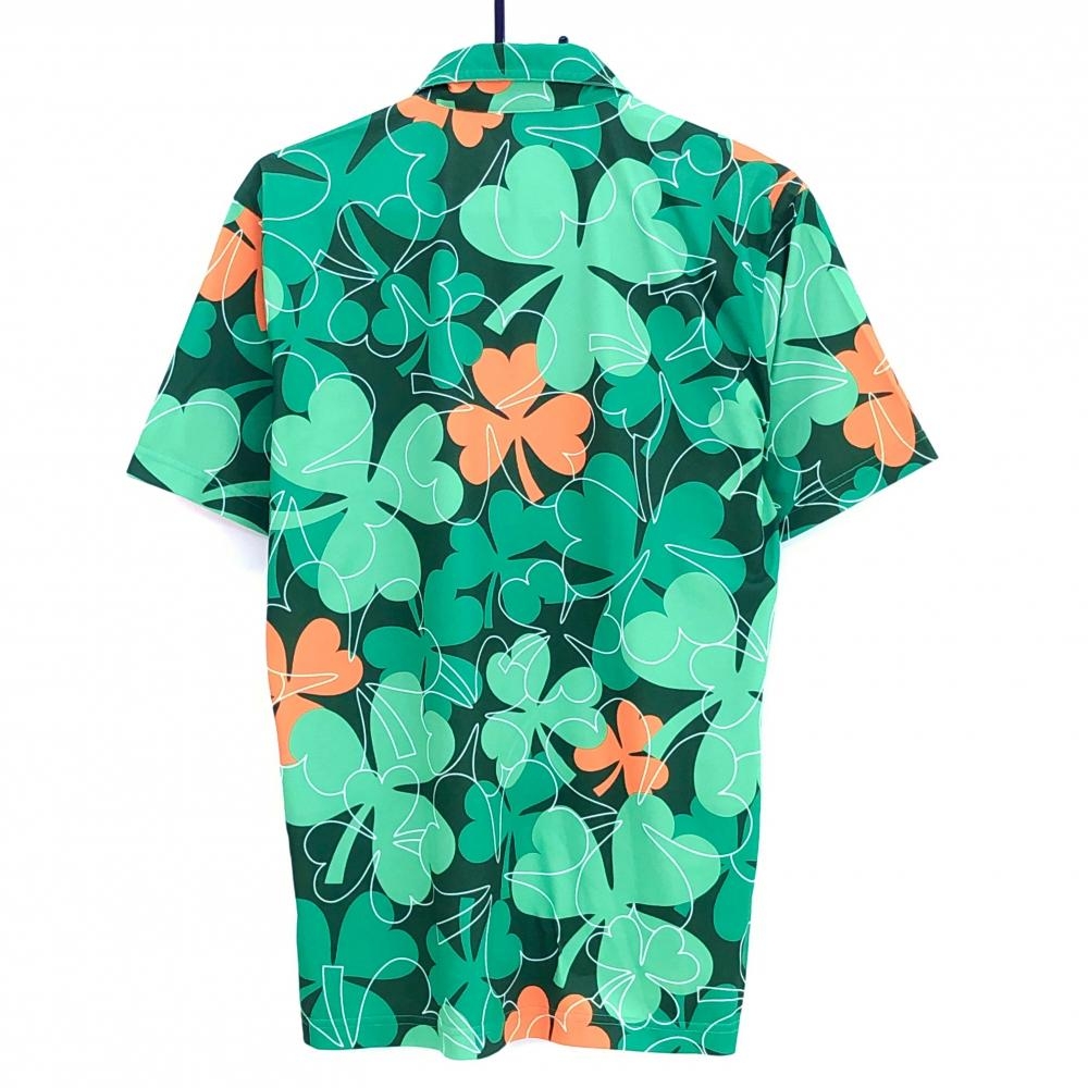 【美品】ラウドマウス 半袖ポロシャツ グリーン×オレンジ クローバー総柄 ラッキーオレンジ メンズ L ゴルフウェア LOUDMOUTH