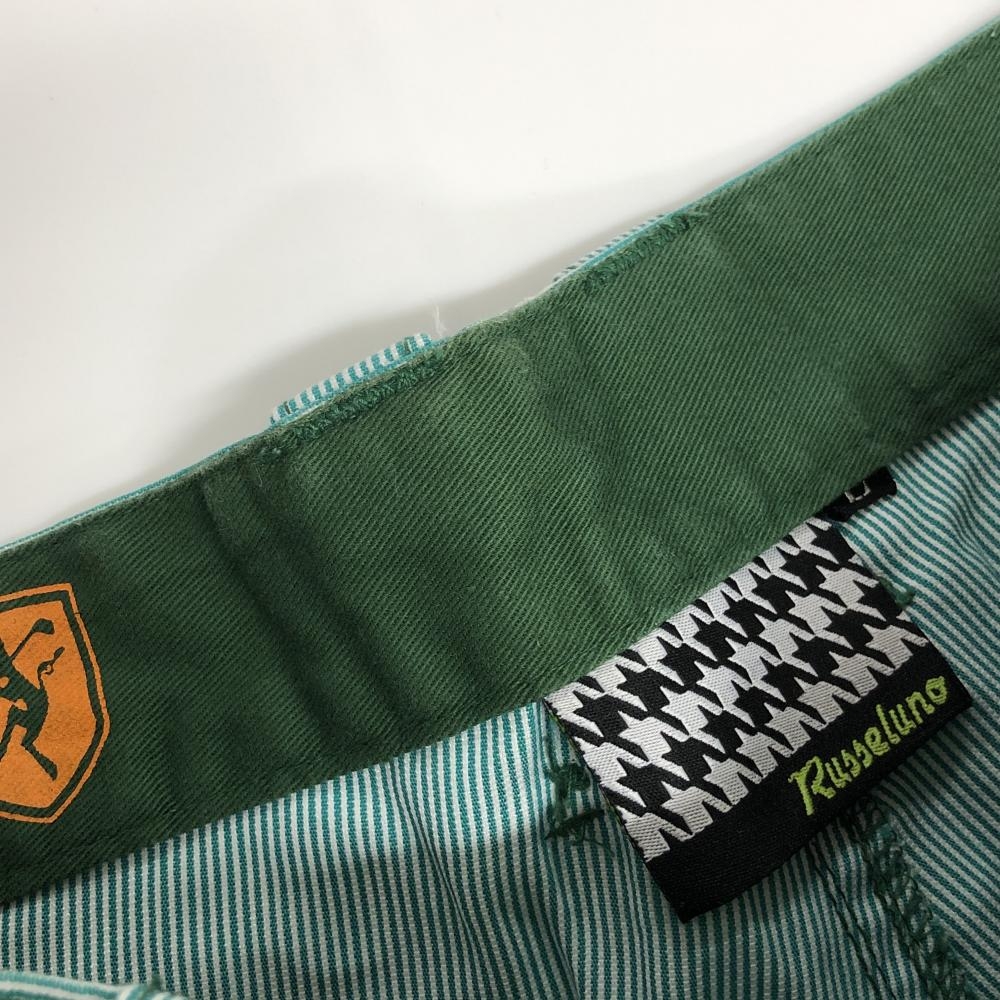 ラッセルノ ハーフパンツ グリーン×白 細ストライプ メンズ L ゴルフウェア RUSSELUNO