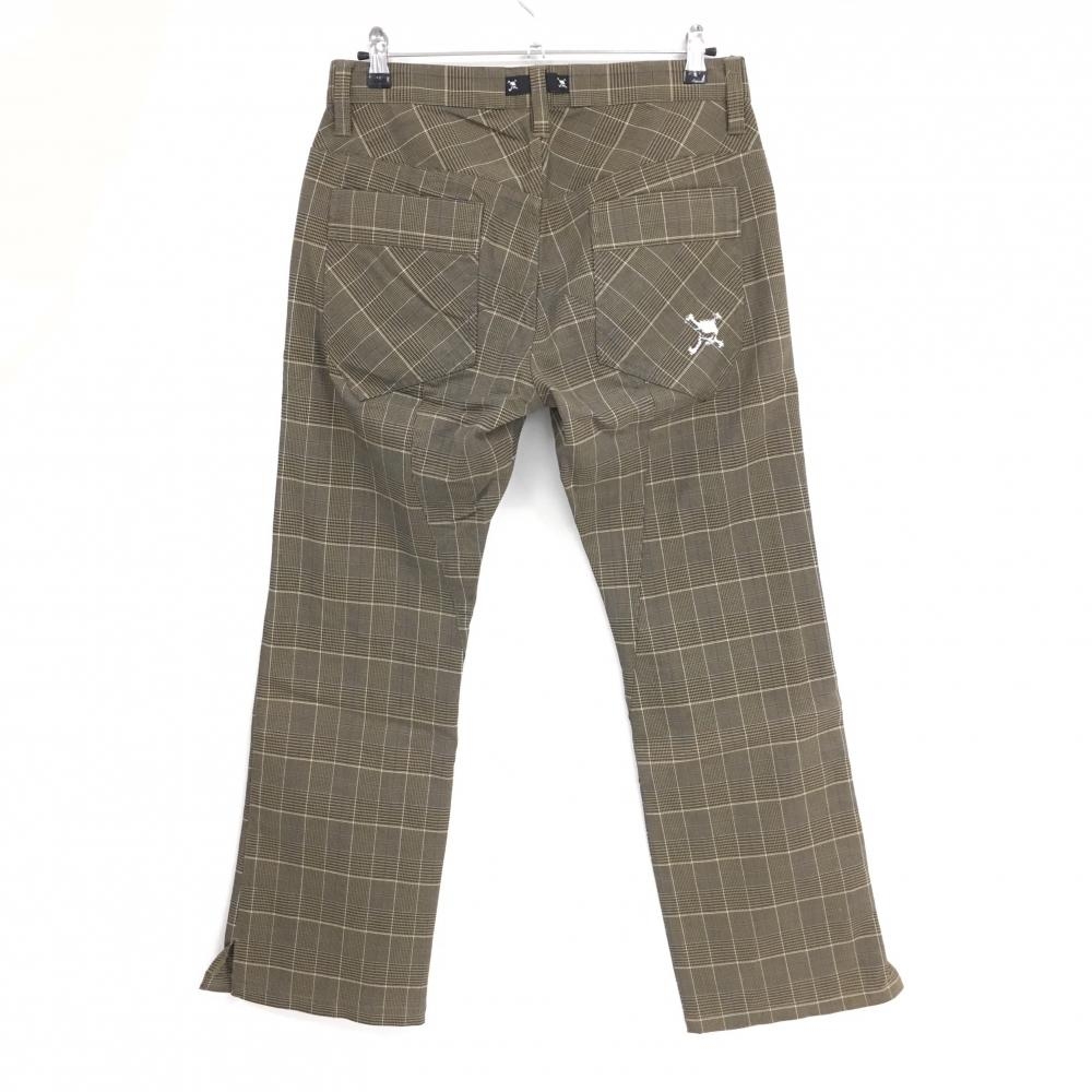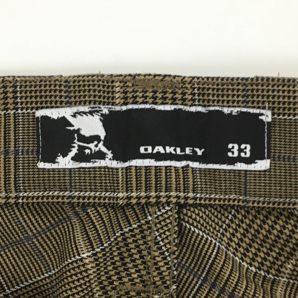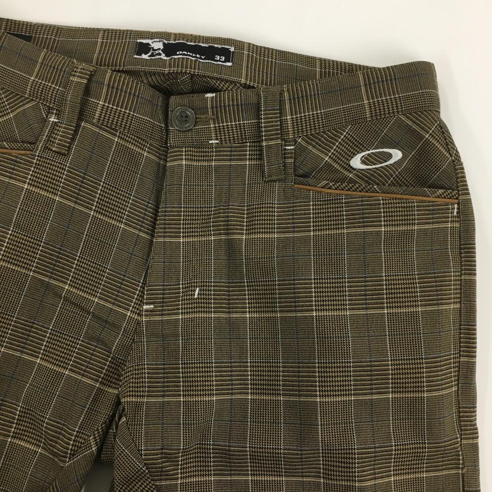 【美品】オークリー パンツ ブラウン×黒 チェック柄 ロゴ白 メンズ 33 ゴルフウェア Oakley
