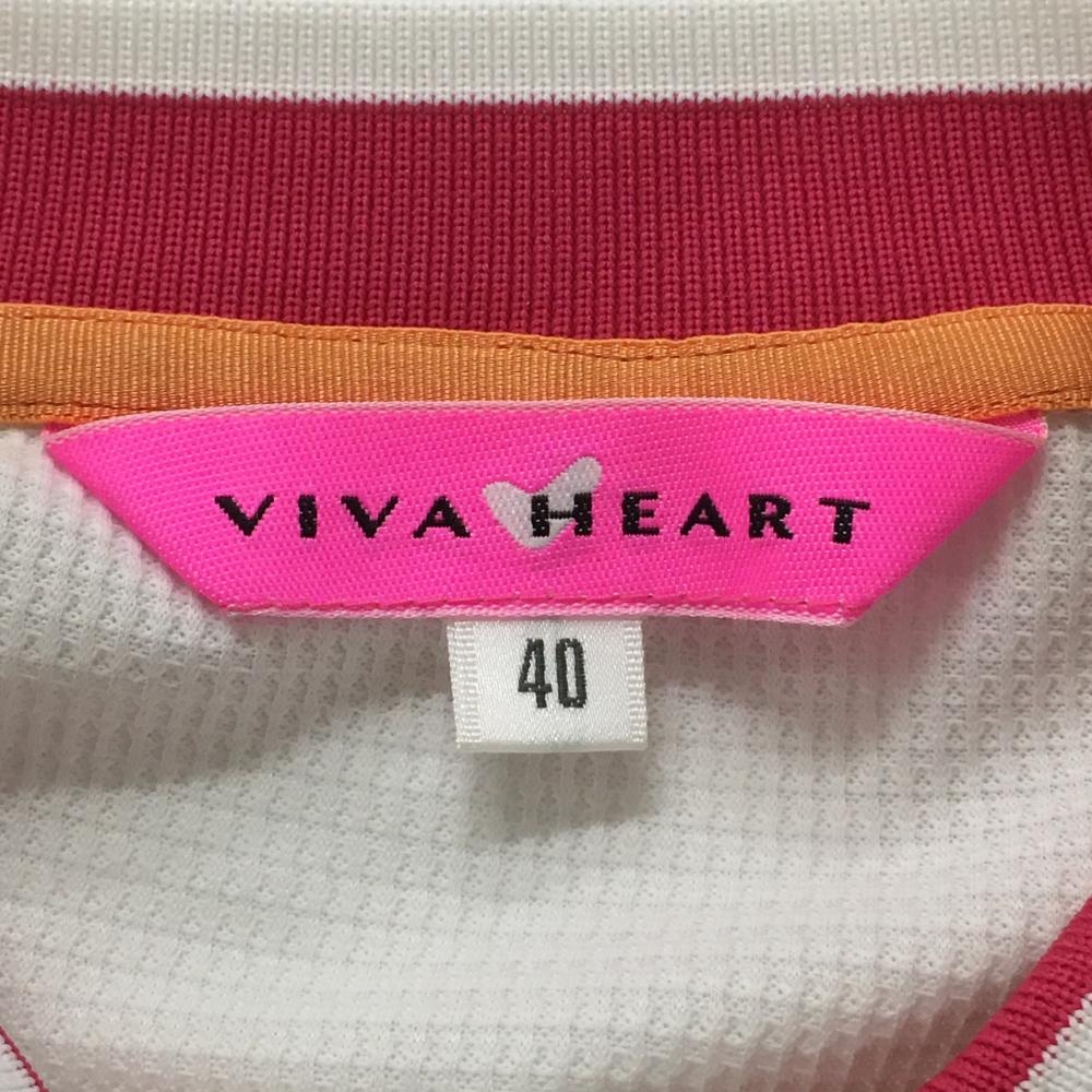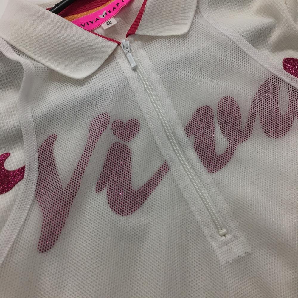 ビバハート 半袖ポロシャツ 白×ピンク 身頃メッシュ ラメロゴ ハーフジップ レディース 40(M) ゴルフウェア VIVA HEART