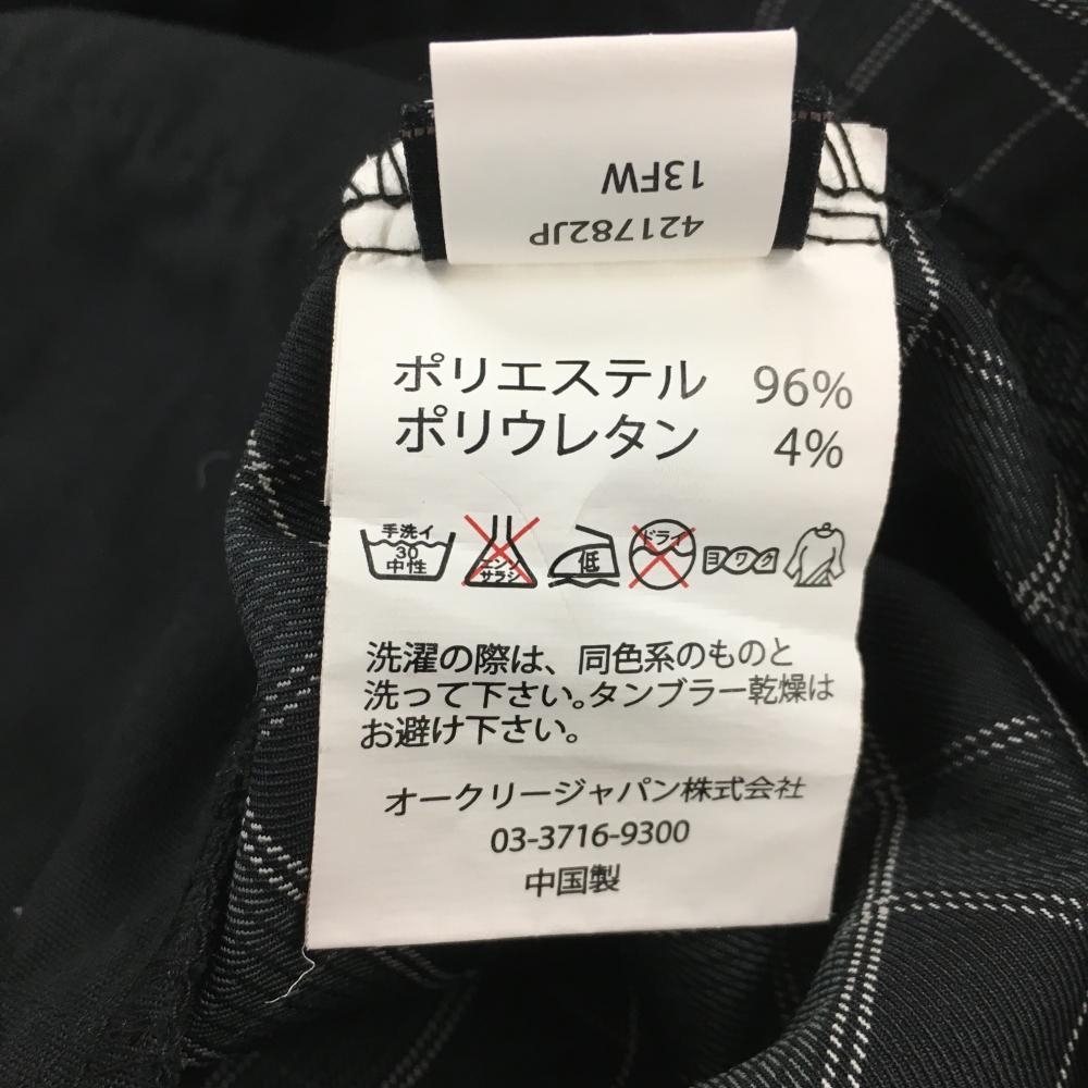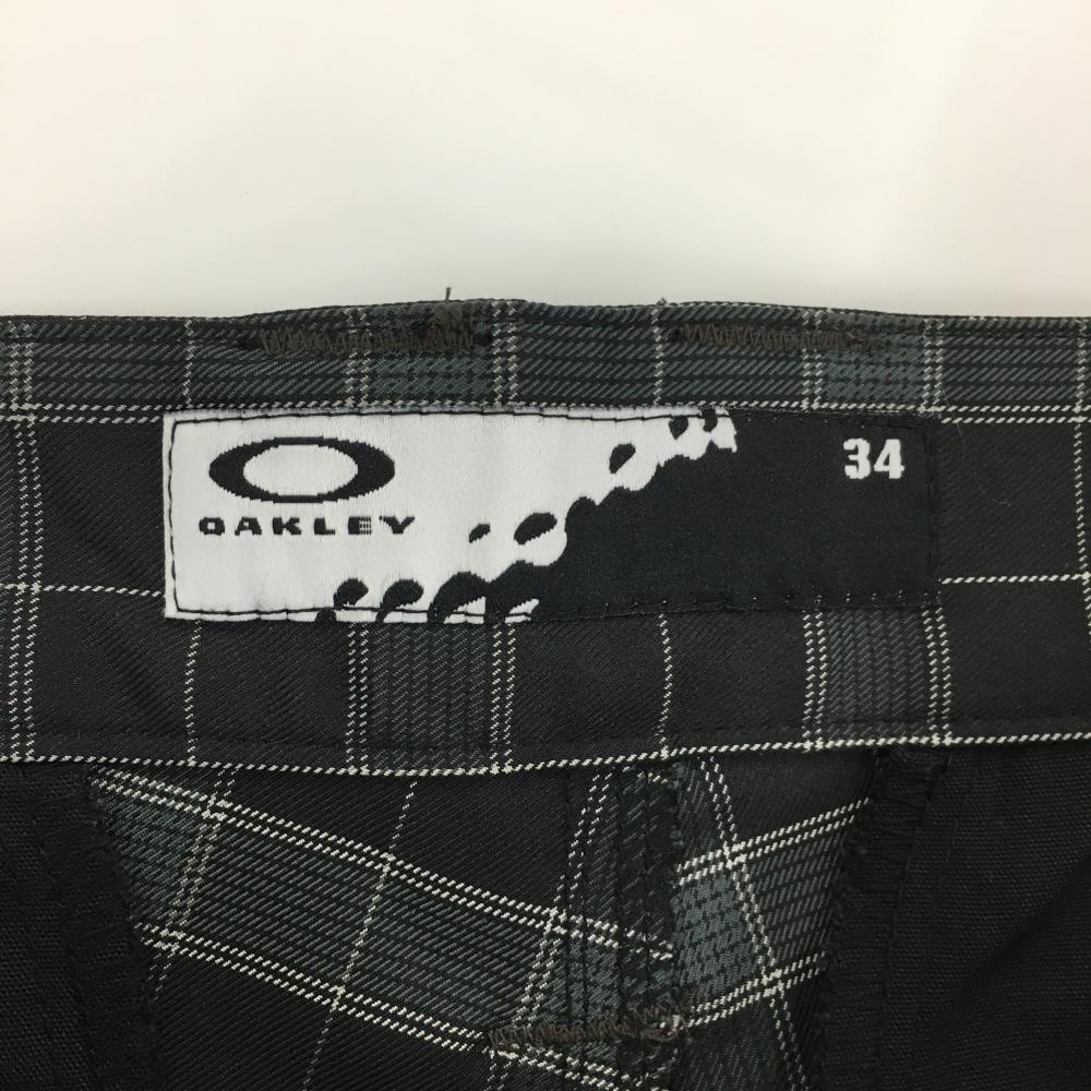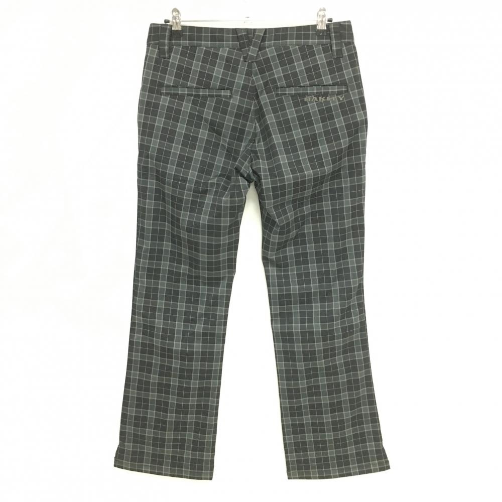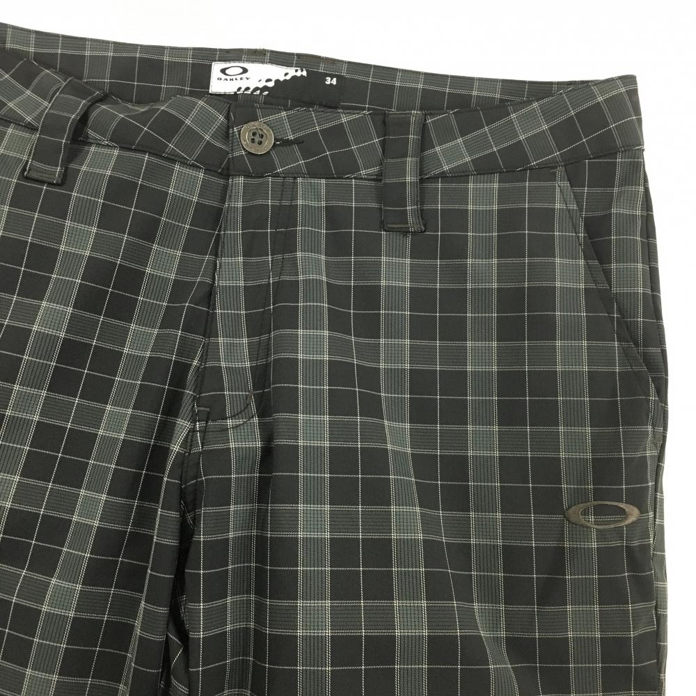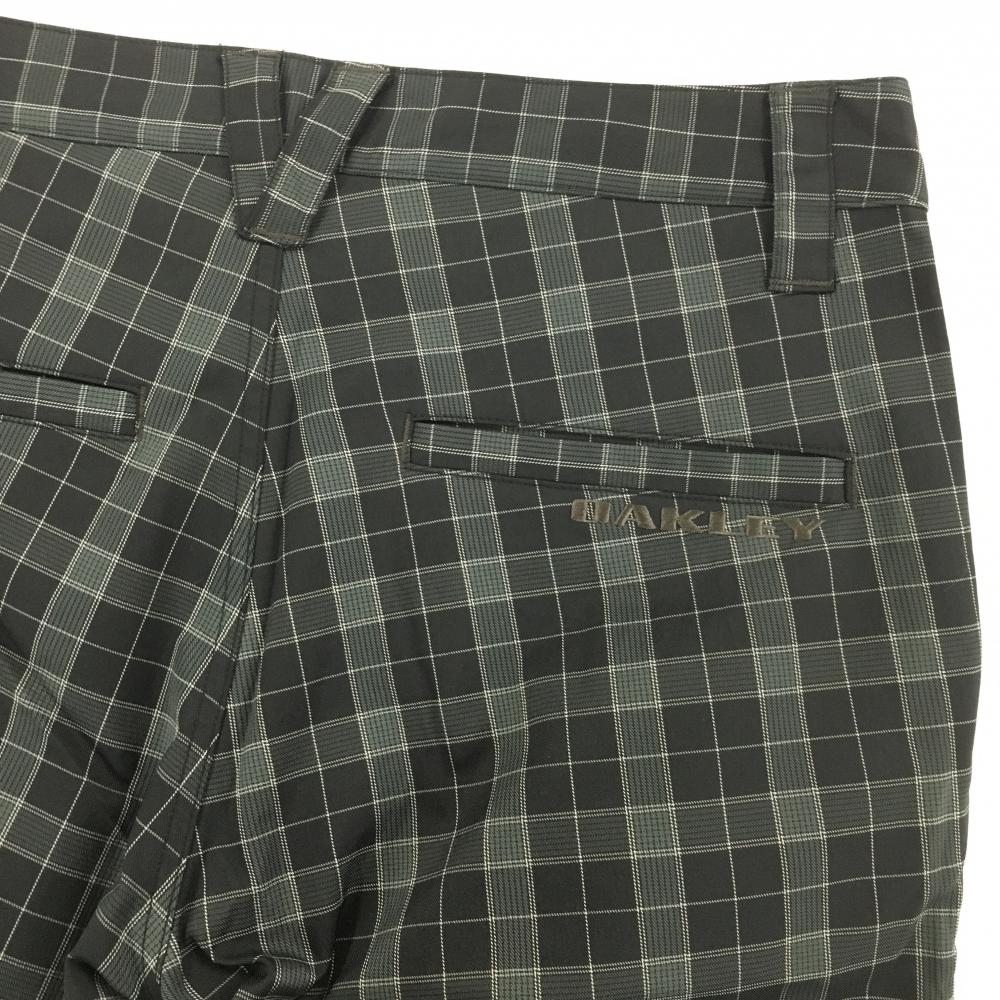 【美品】オークリー パンツ 黒×ダークグリーン チェック柄 ロゴ刺しゅう メンズ 34 ゴルフウェア Oakley
