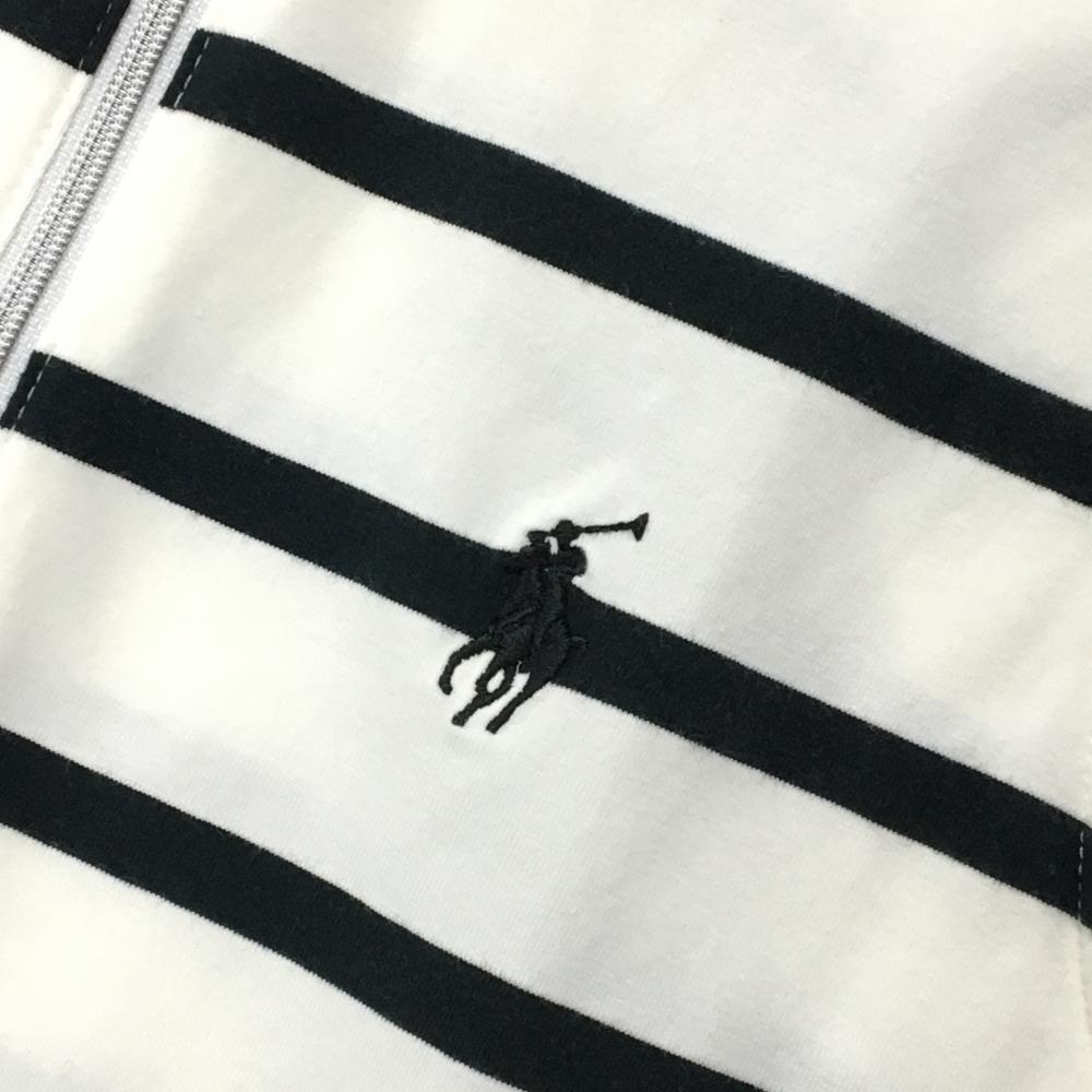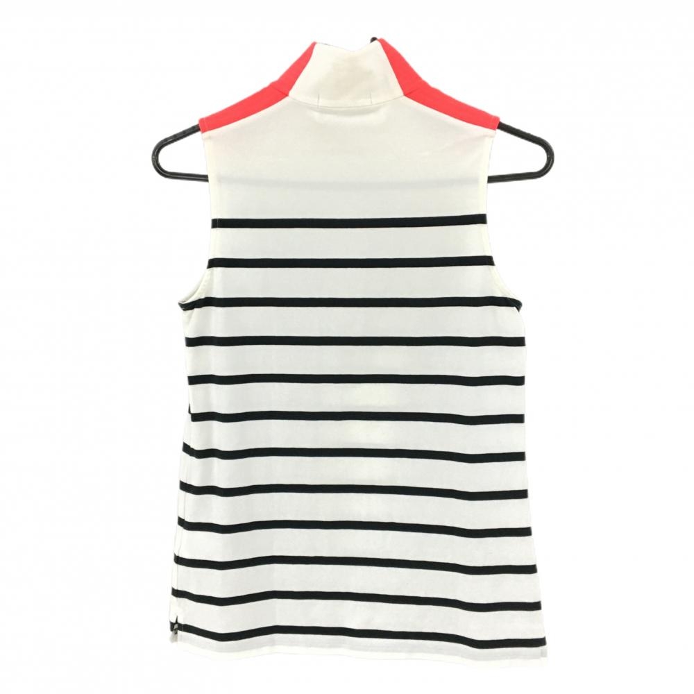 ラルフローレン ノースリーブシャツ 白×黒 ボーダー ポニー刺しゅう ハーフジップ レディース XS ゴルフウェア Ralph Lauren