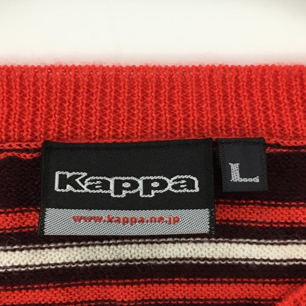 【超美品】カッパ セーター レッド×ボルドー ボーダー Vネック ウール混 ニット メンズ L ゴルフウェア Kappa
