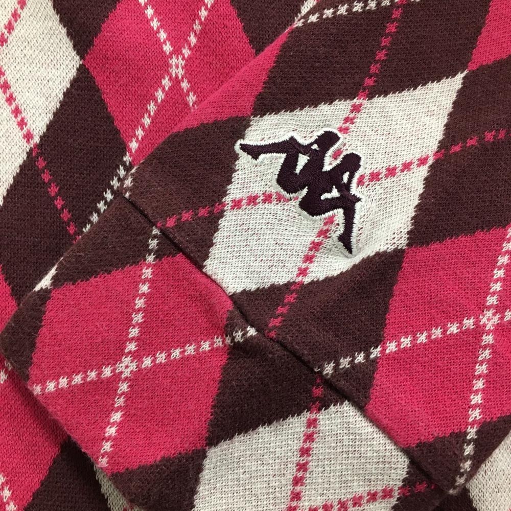 カッパ 長袖ハイネックシャツ ピンク×ボルドー アーガイル柄 ハーフジップ メンズ L ゴルフウェア Kappa